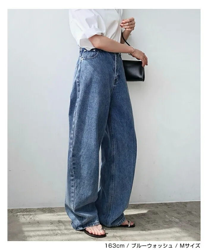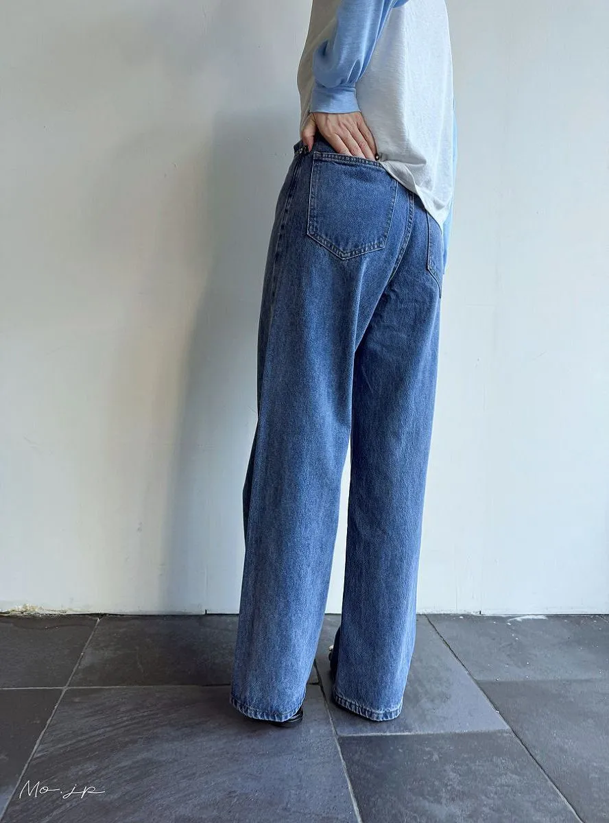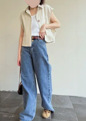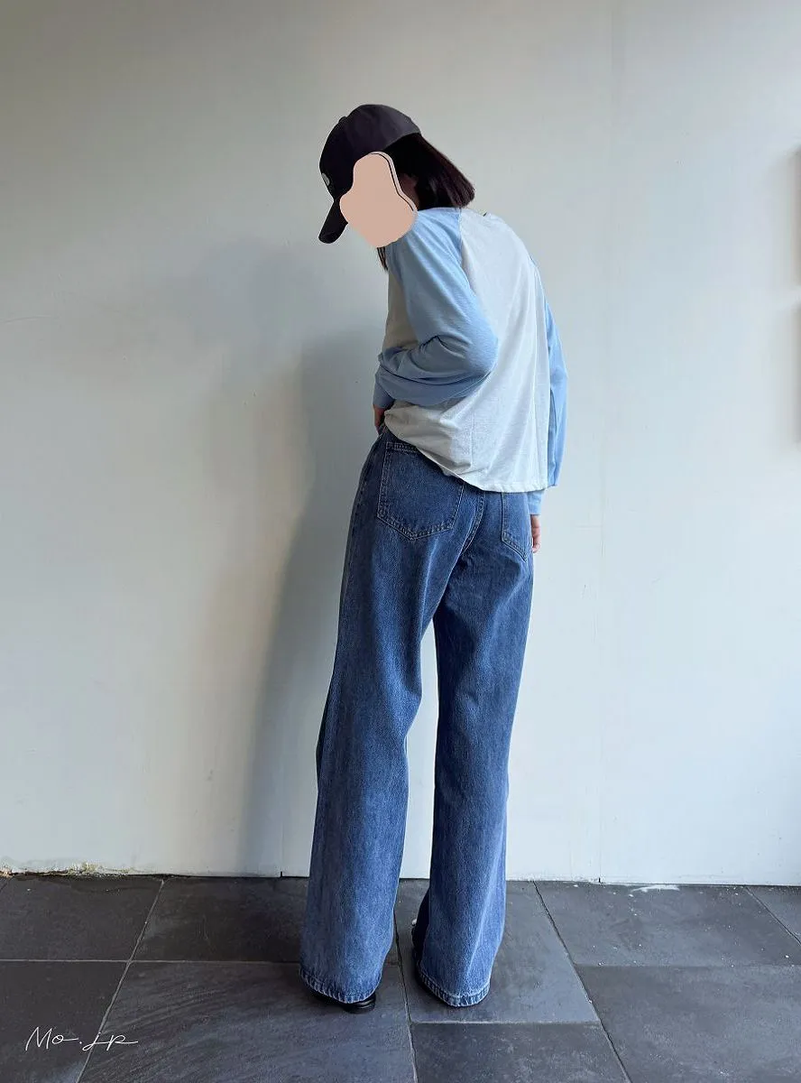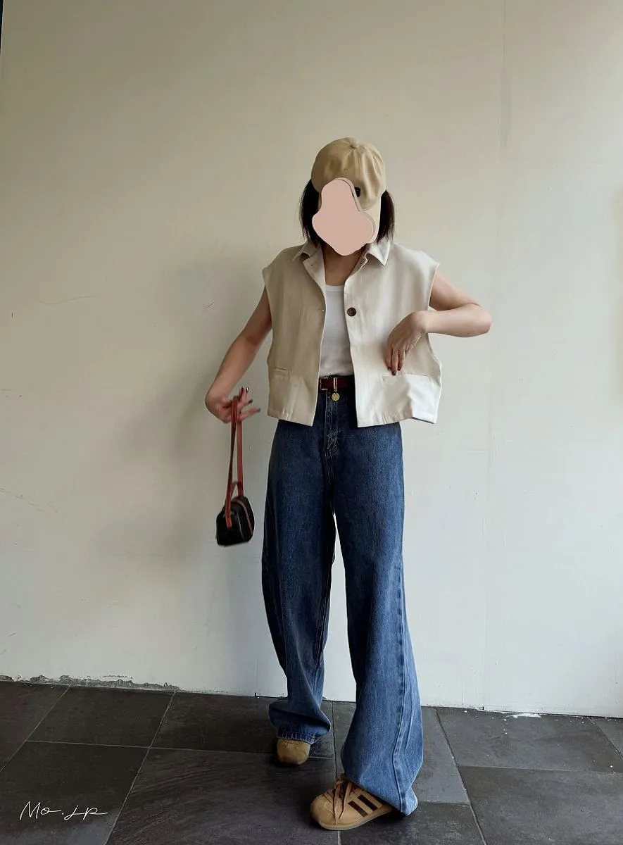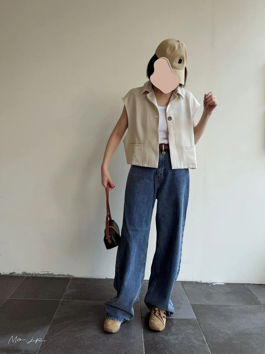 褲腳處寬鬆收腰,打造寬鬆不顯胖的牛仔褲!