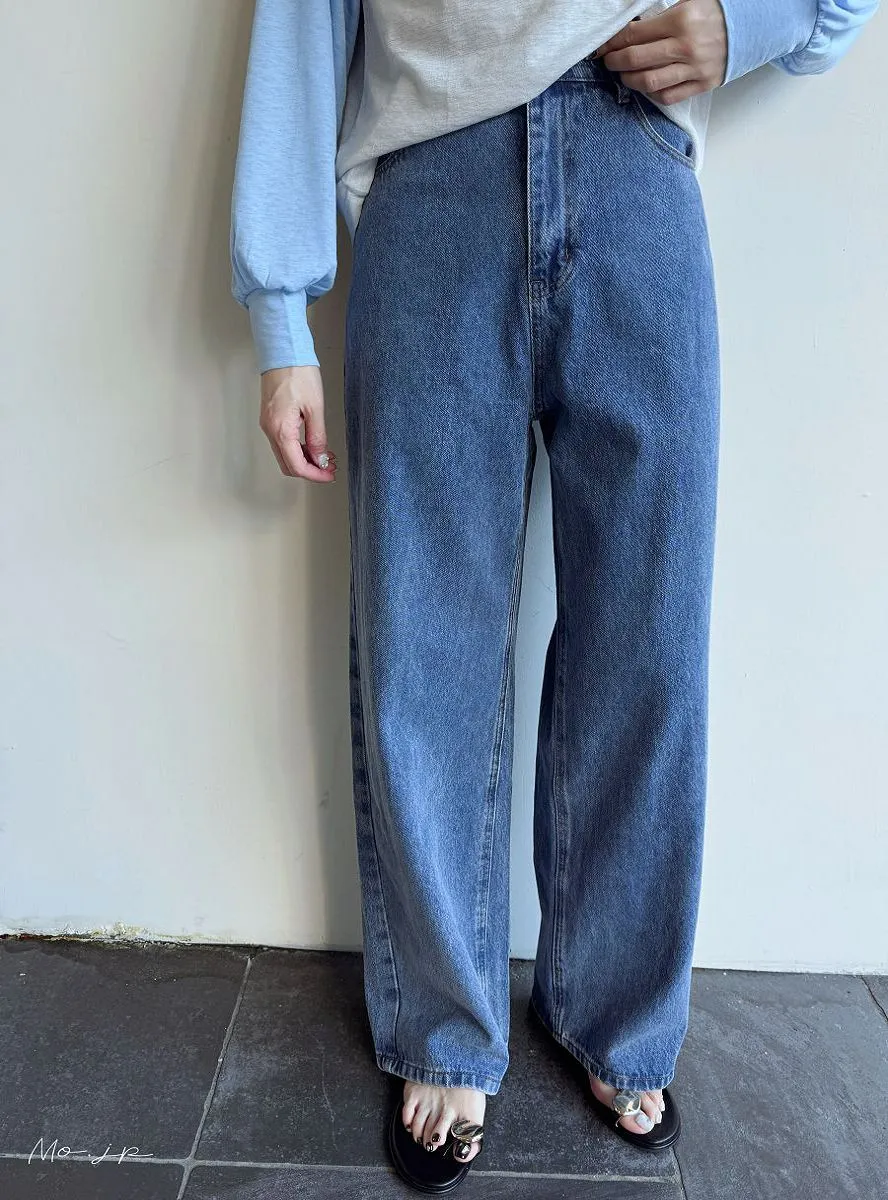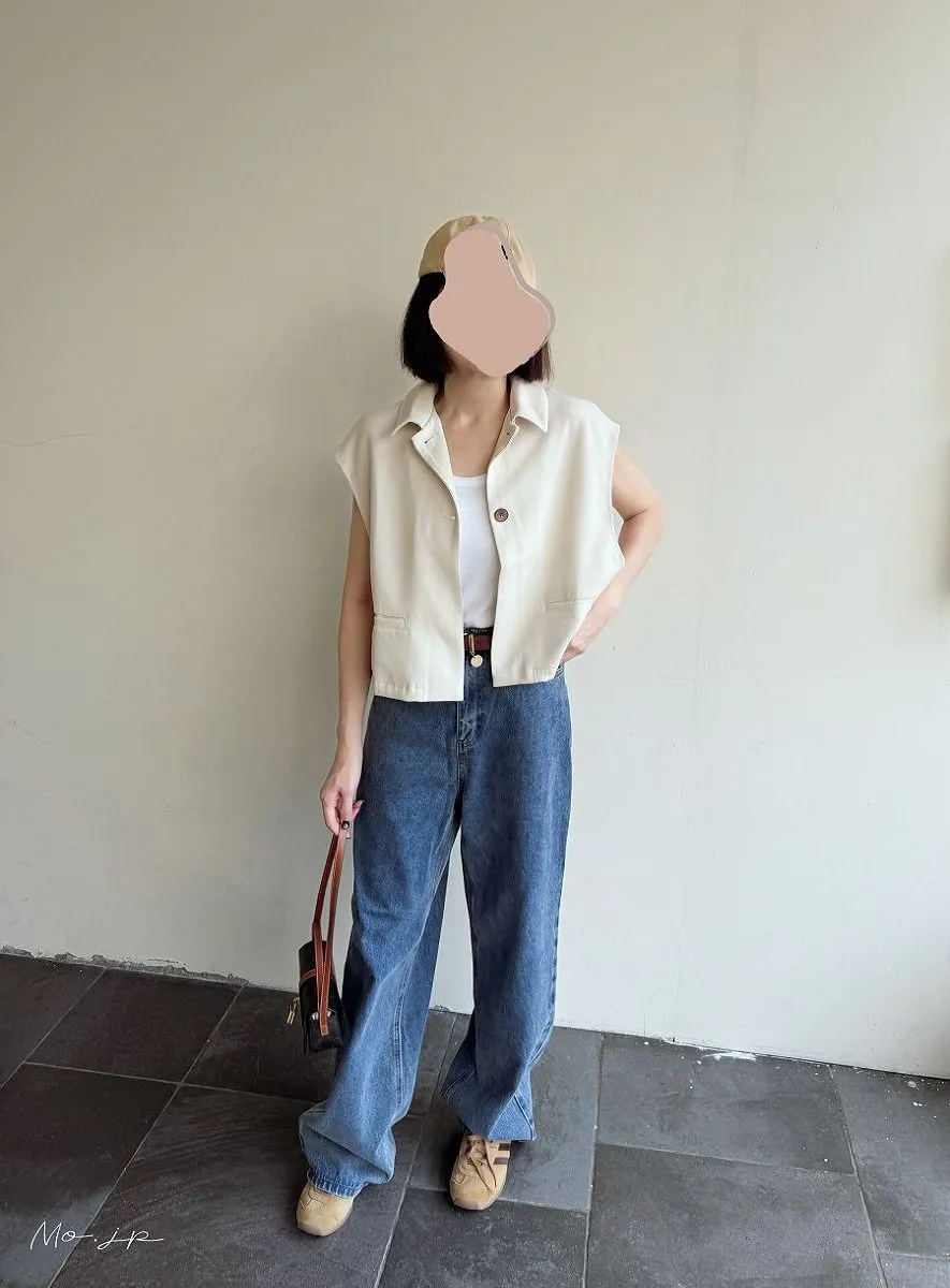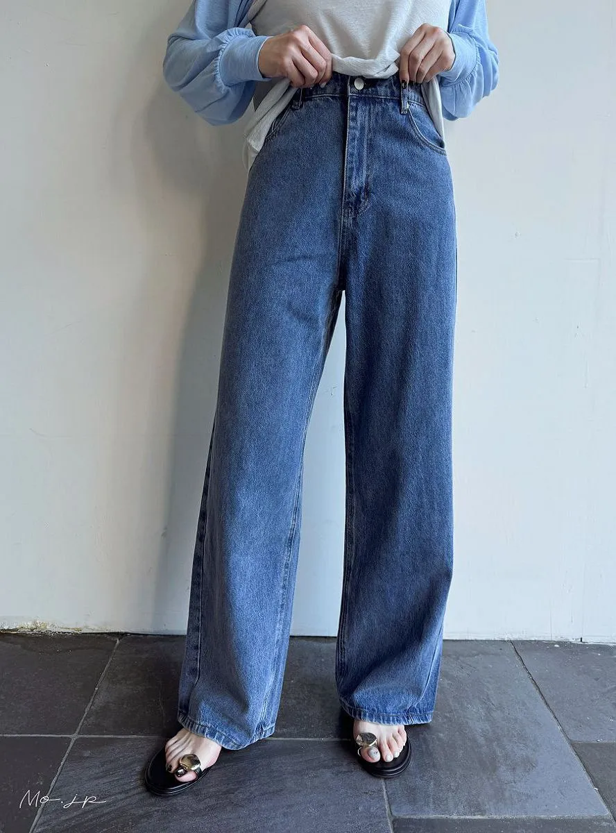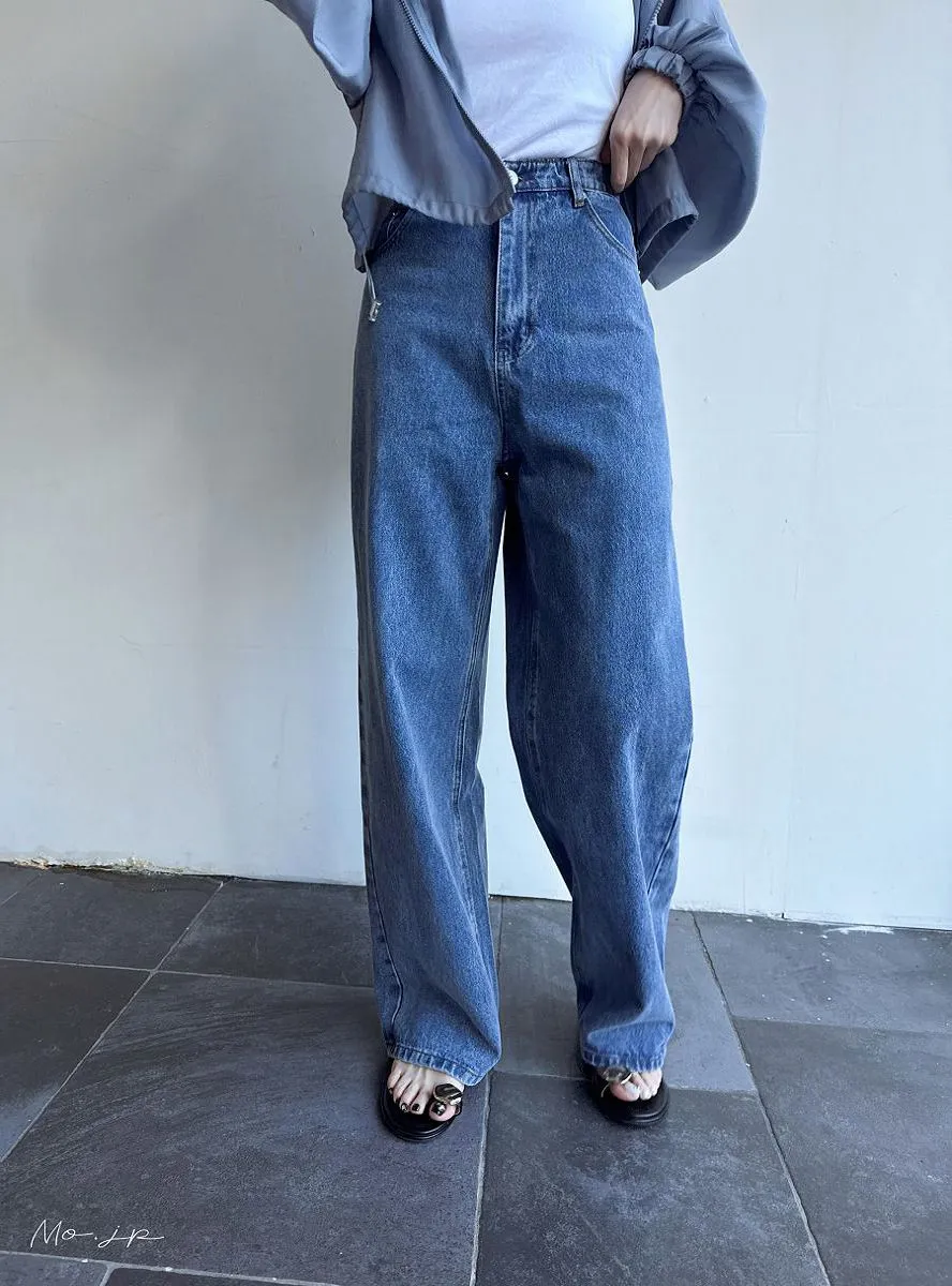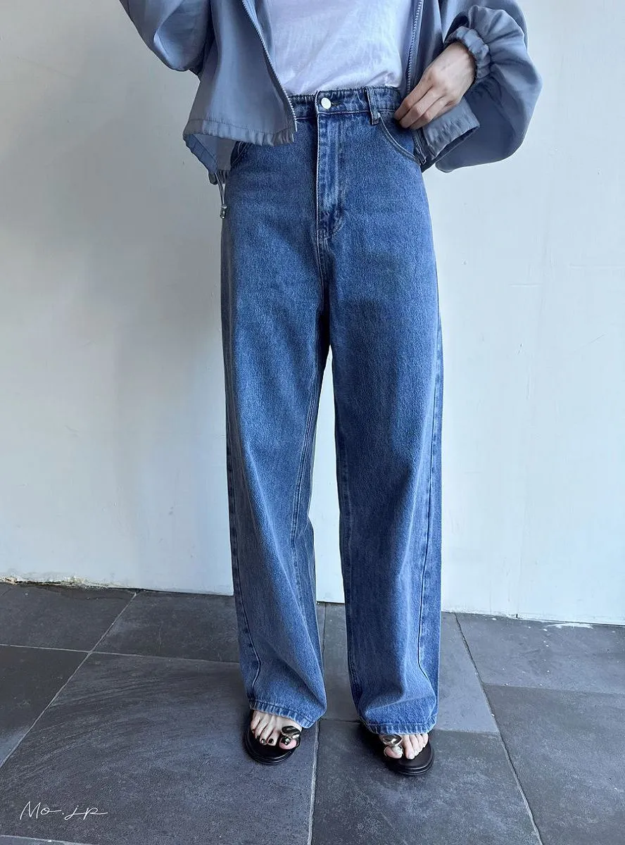 褲腳處寬鬆收腰,打造寬鬆不顯胖的牛仔褲!