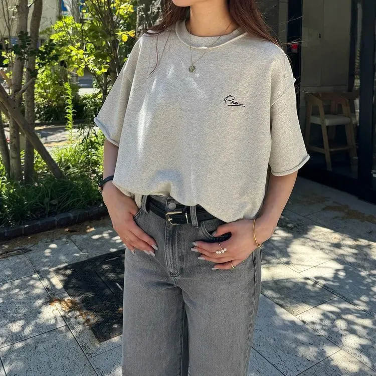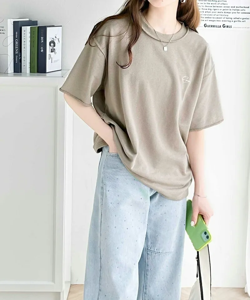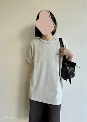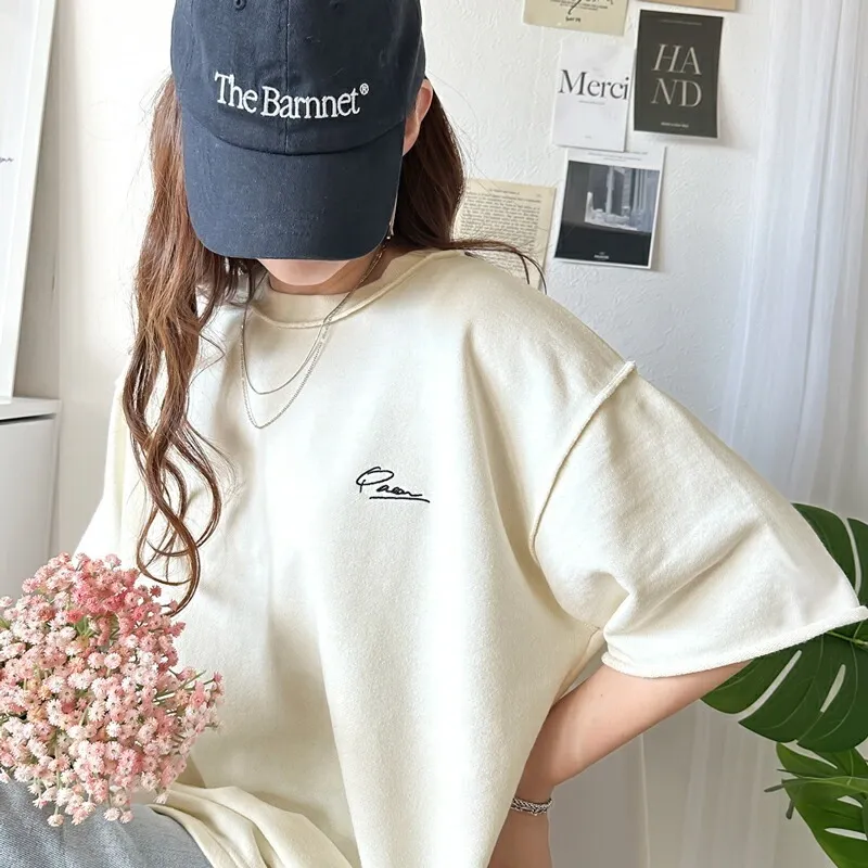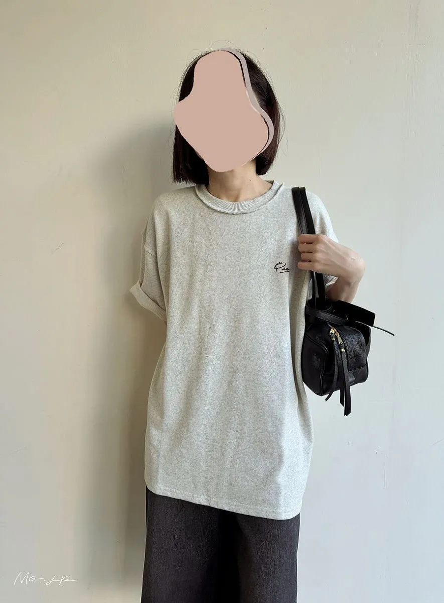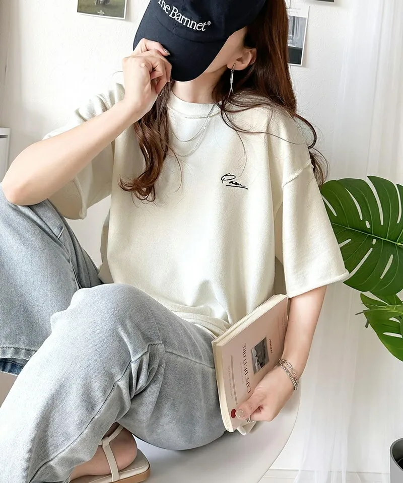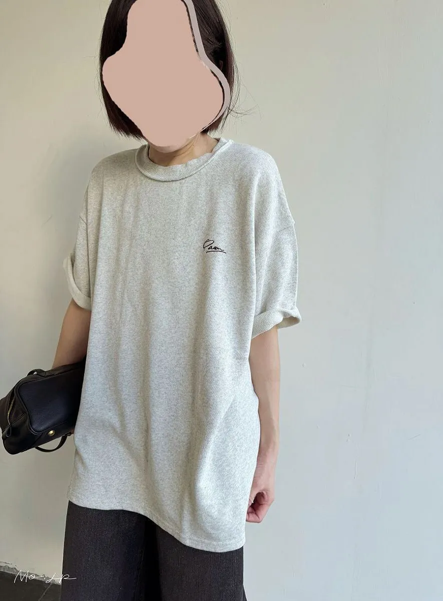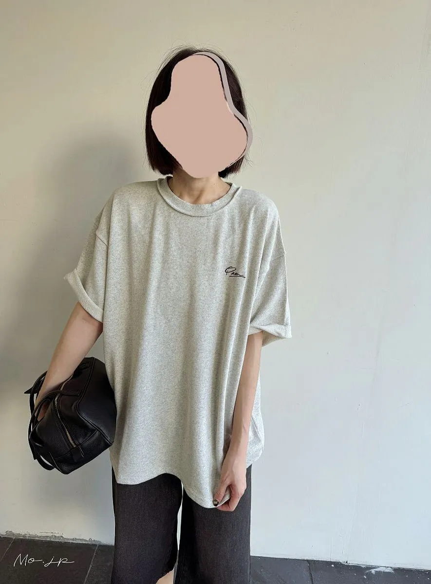 混色感休閒捲邊小刺繡休閒TEE