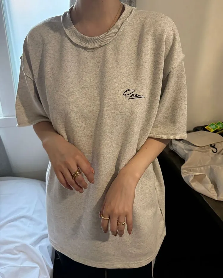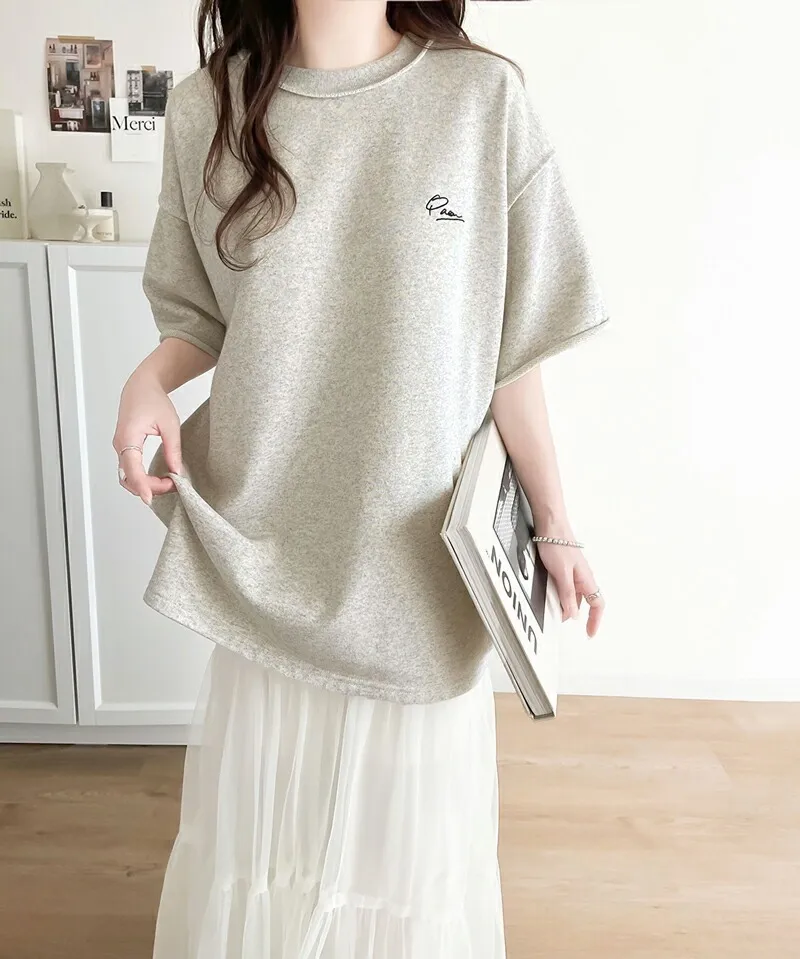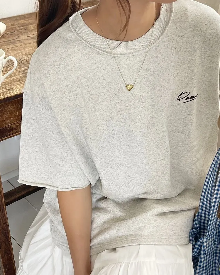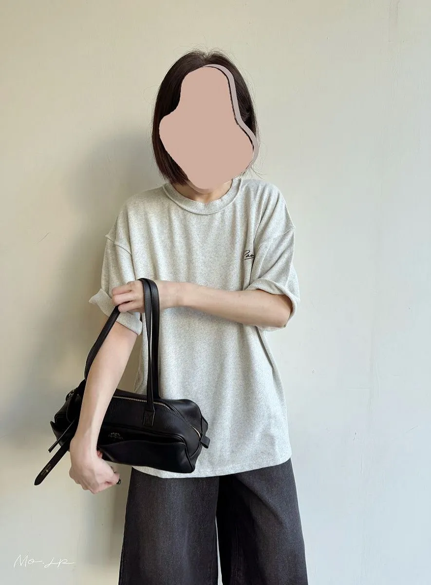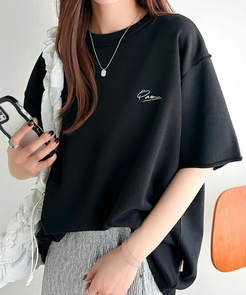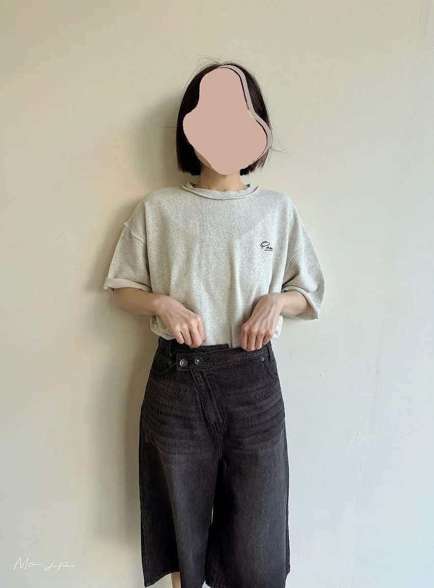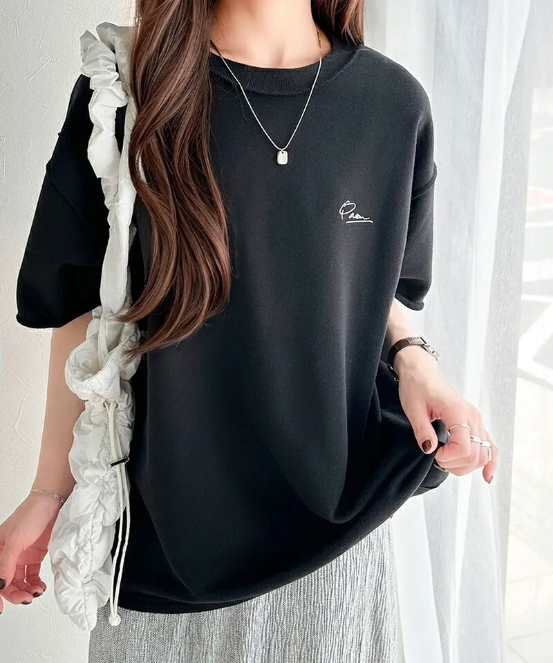 混色感休閒捲邊小刺繡休閒TEE