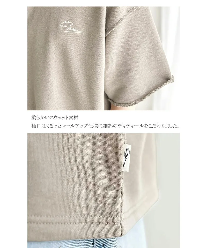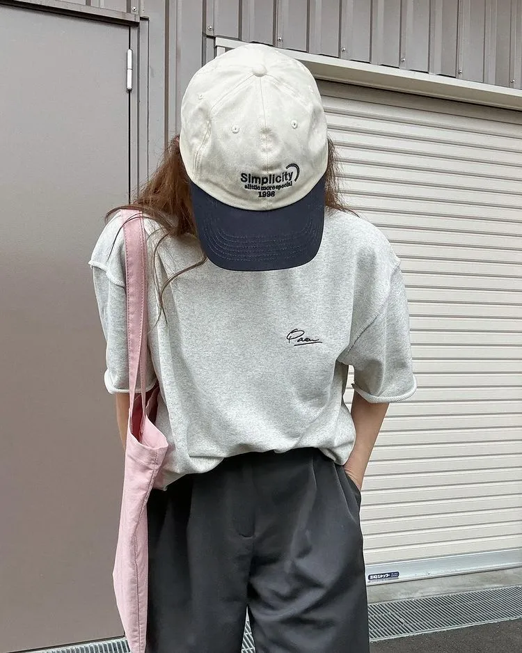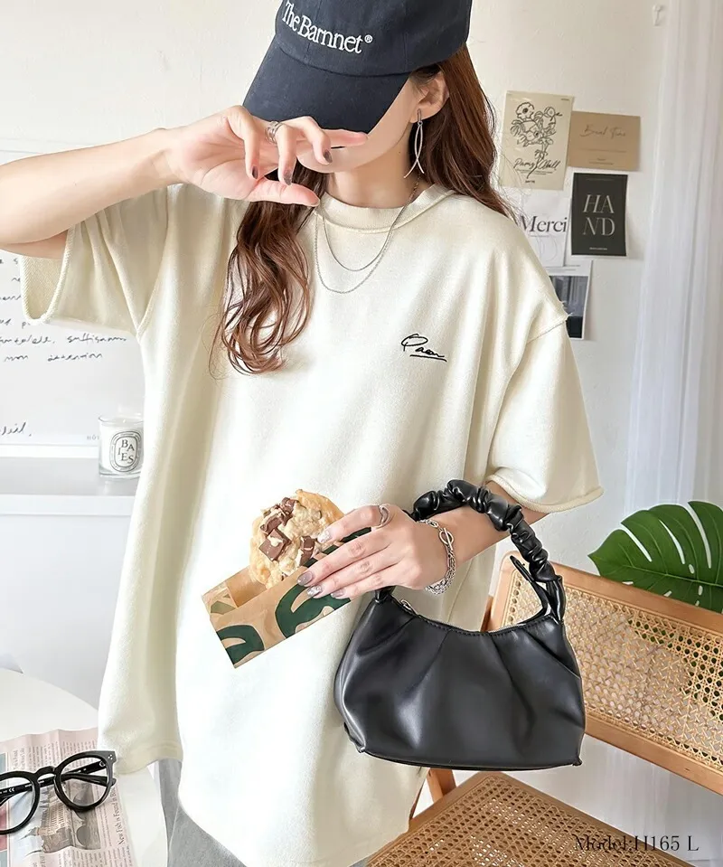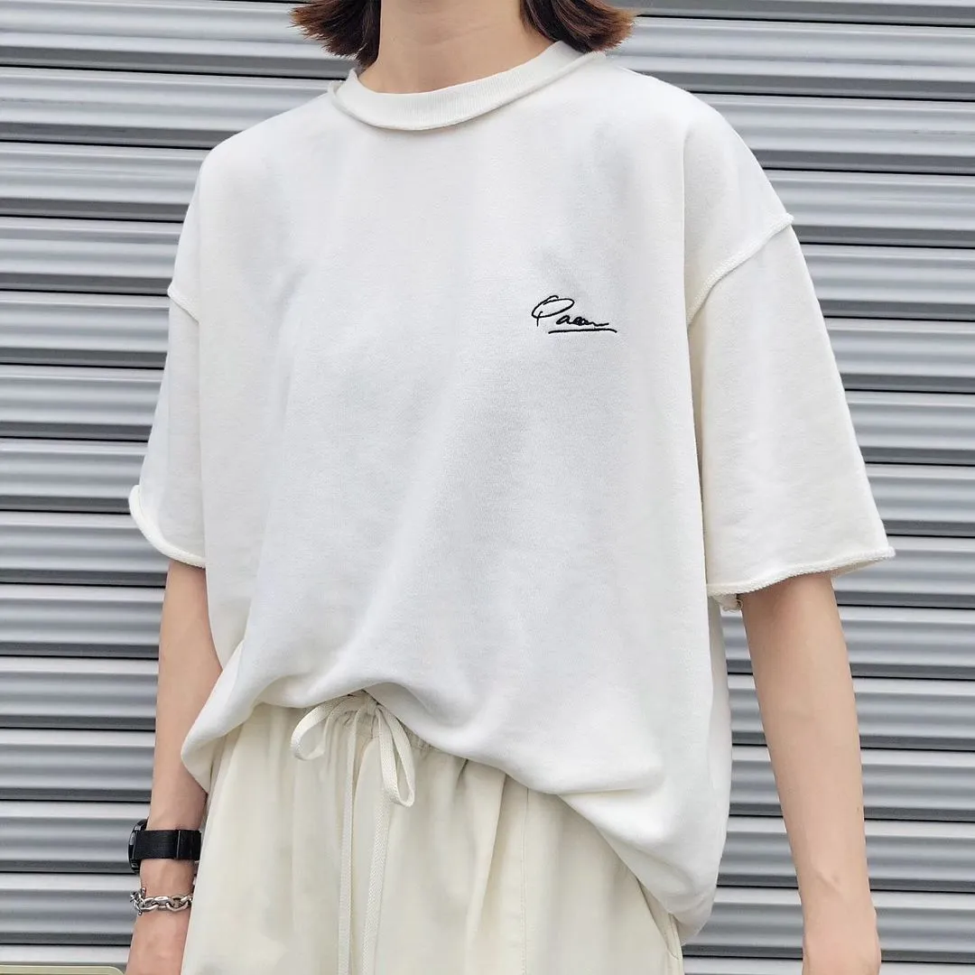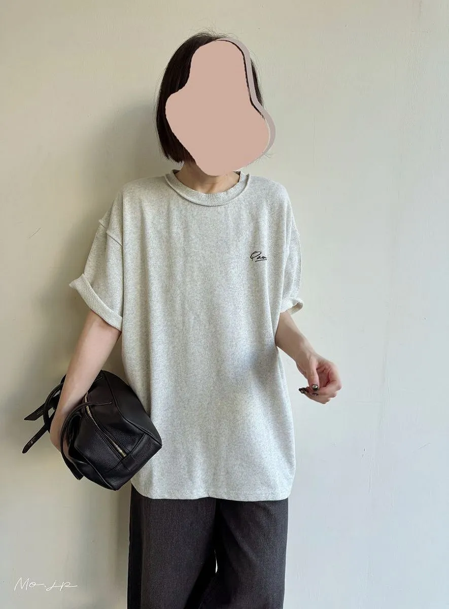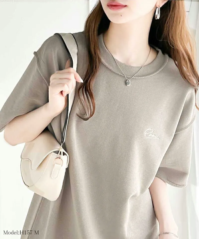 混色感休閒捲邊小刺繡休閒TEE