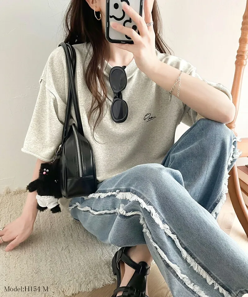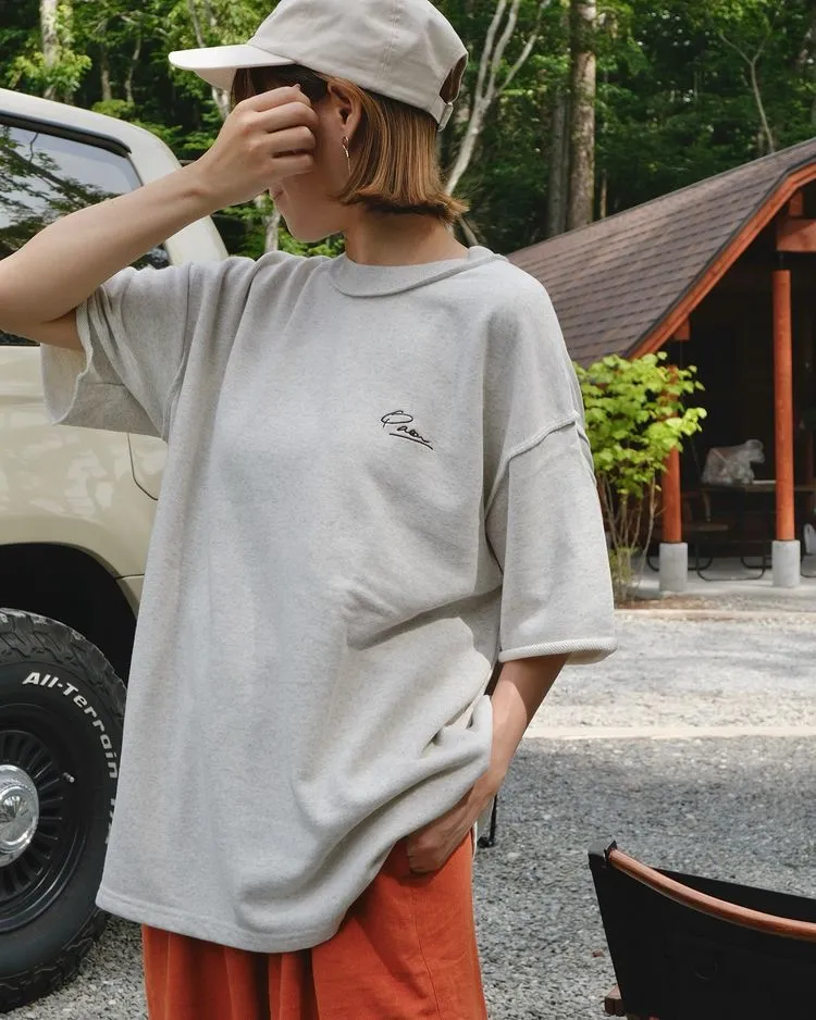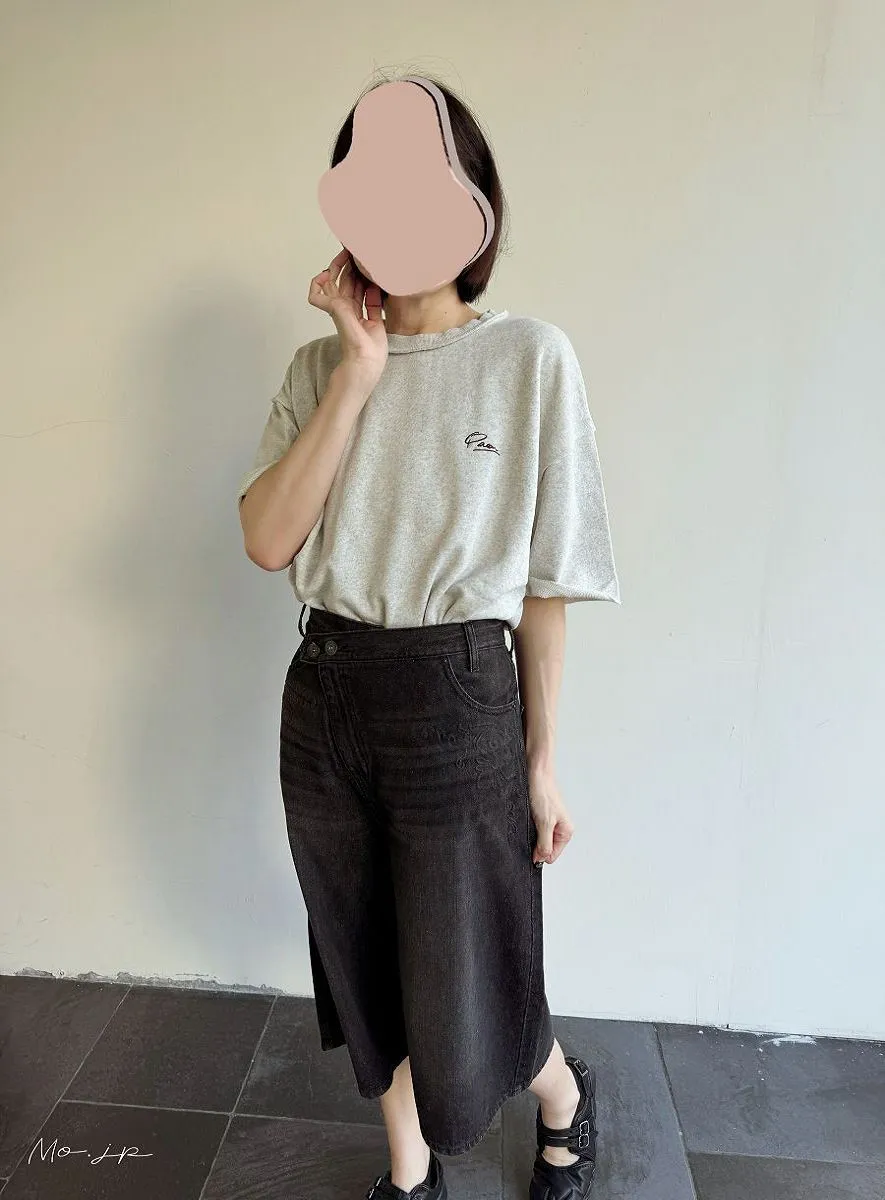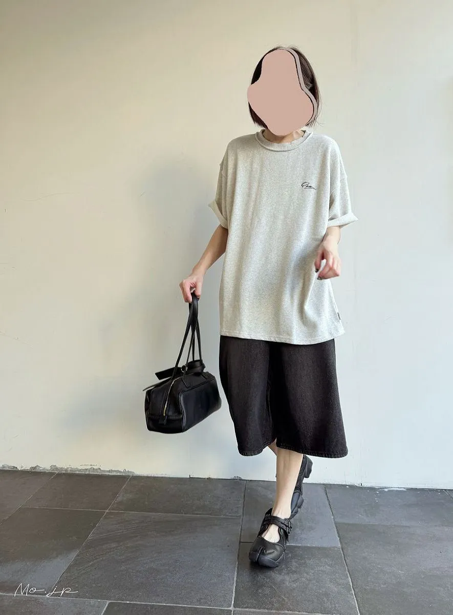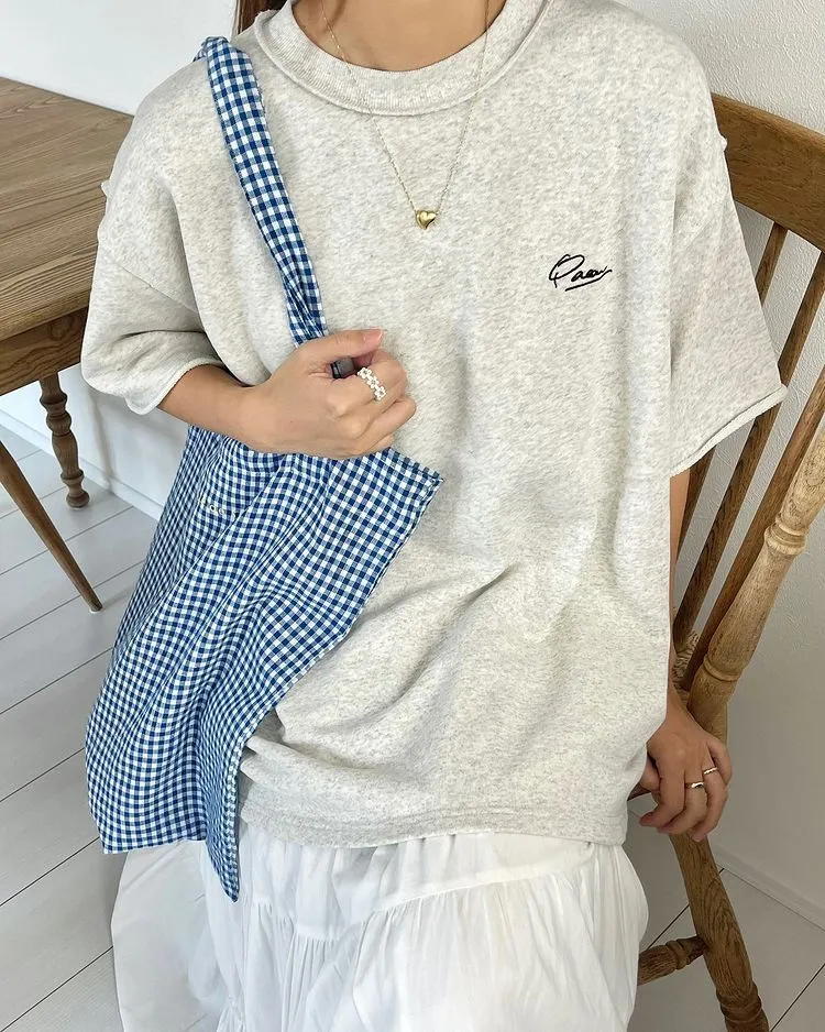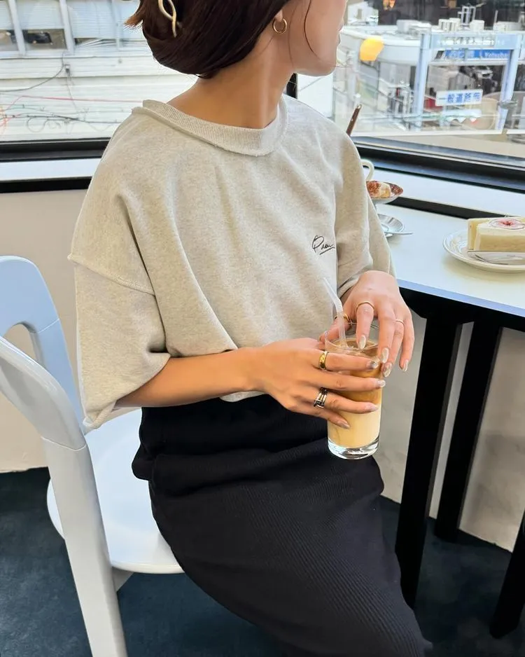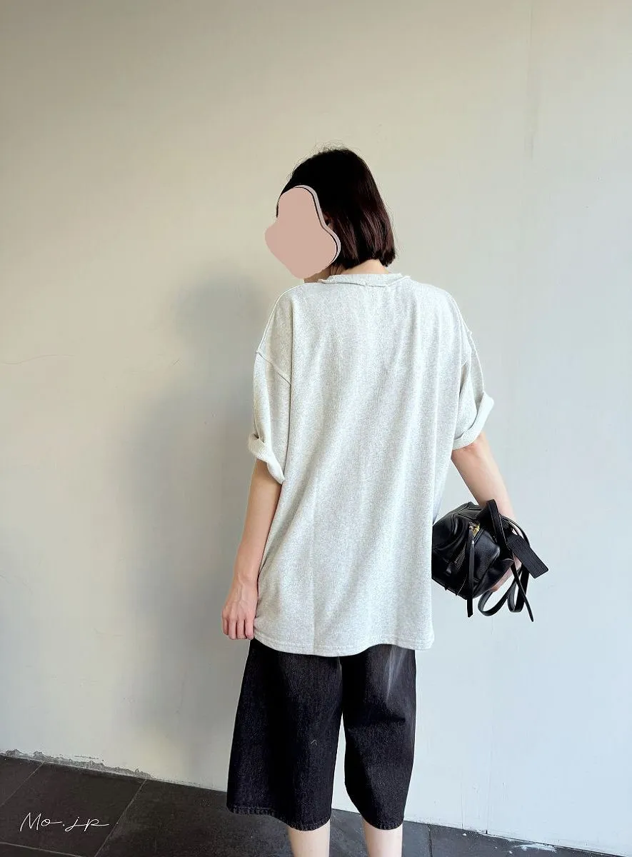 混色感休閒捲邊小刺繡休閒TEE