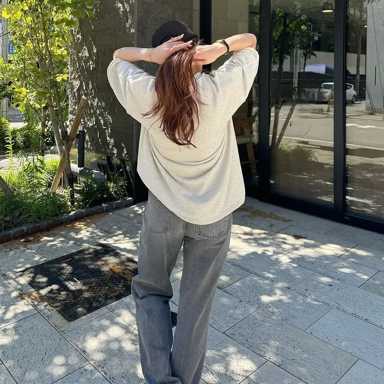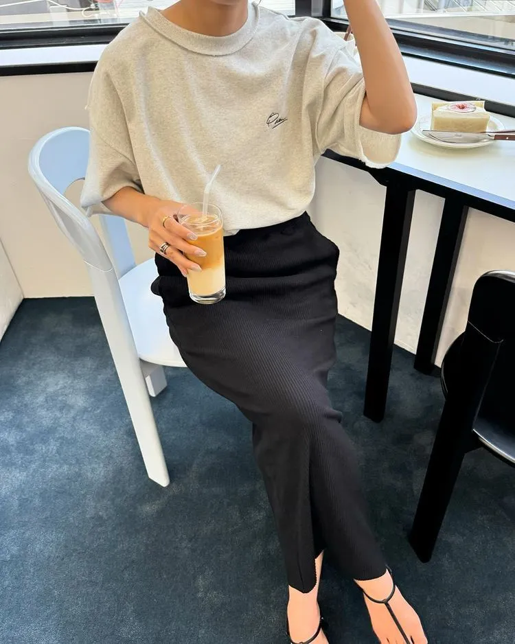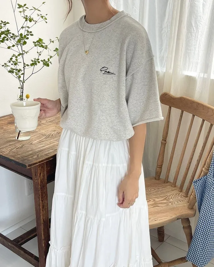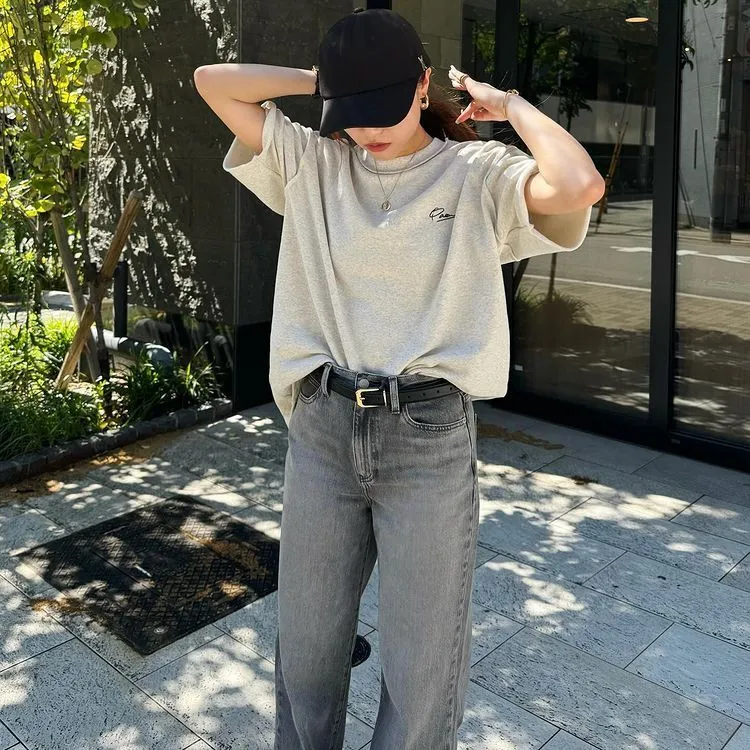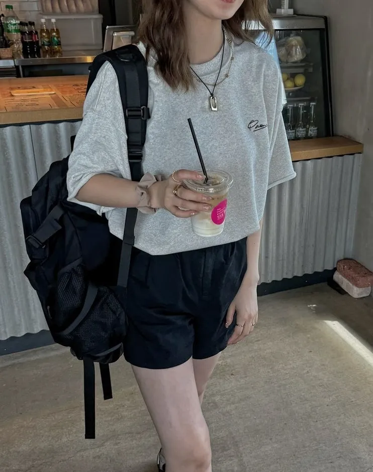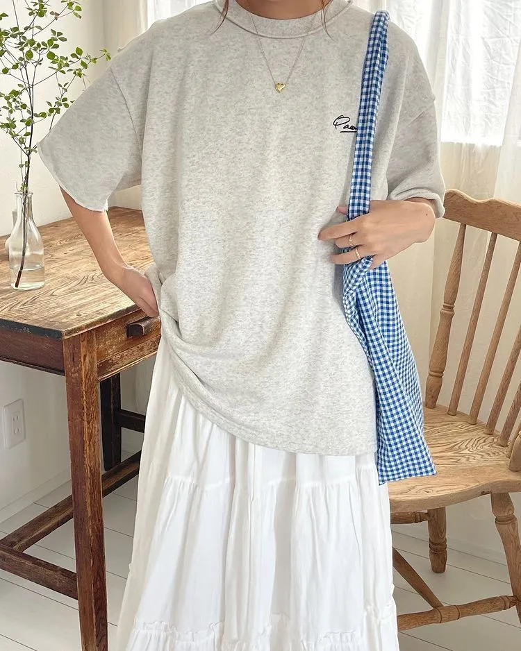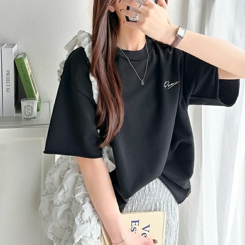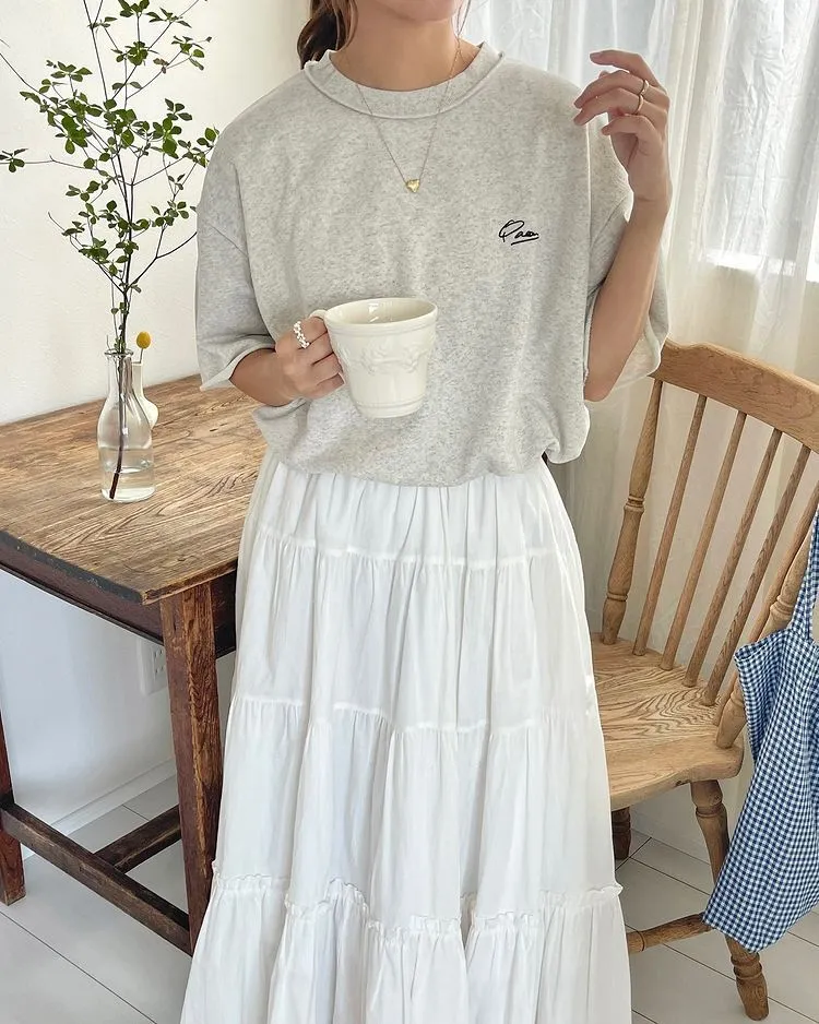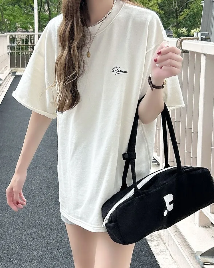混色感休閒捲邊小刺繡休閒TEE