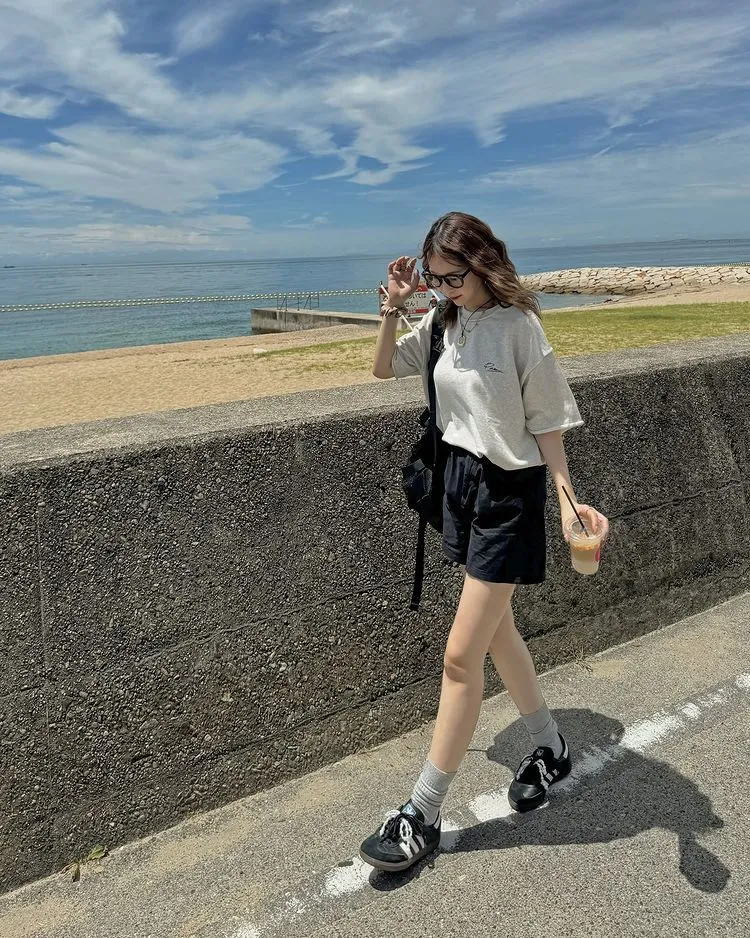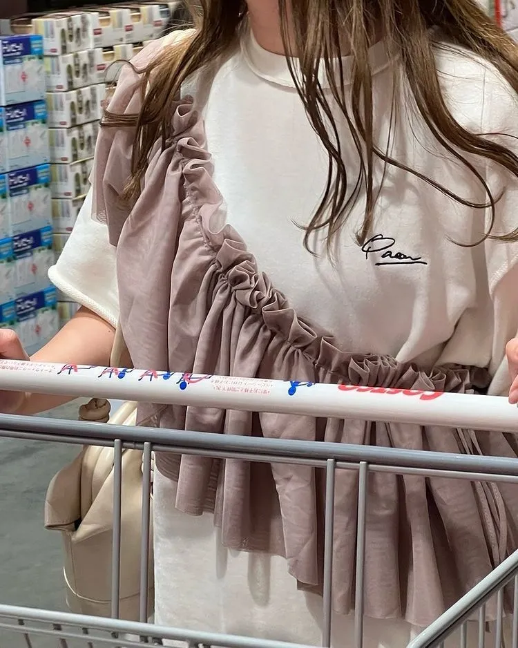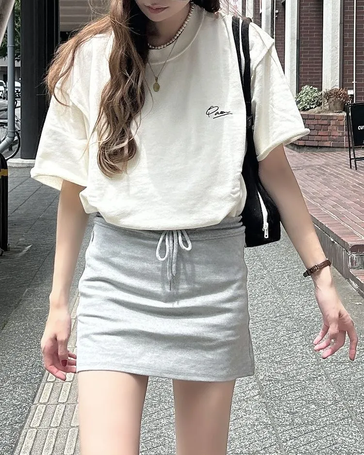 超級超級可愛的一件捲邊設計休閒TEE