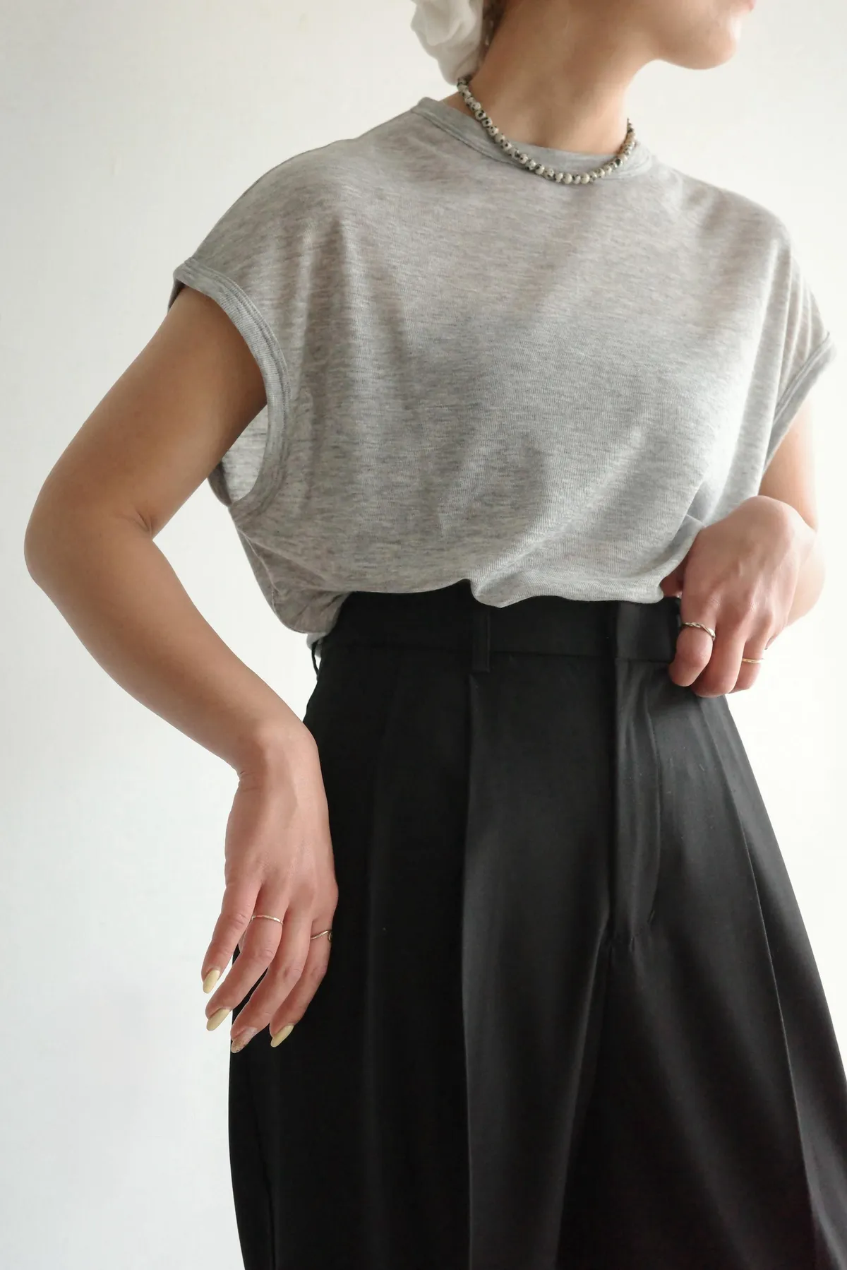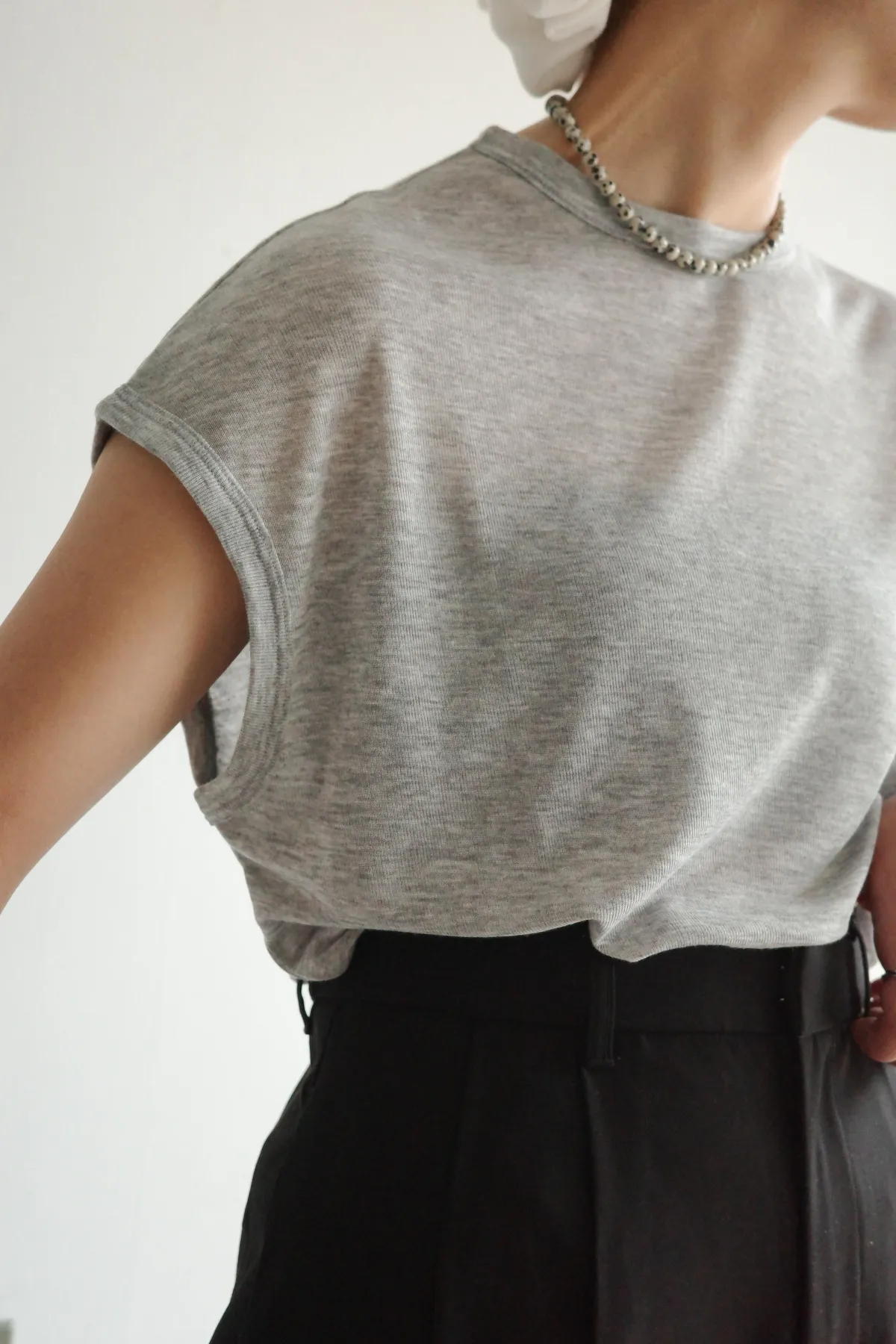 袖長恰到好處地遮蓋上臂,修飾手臂線條