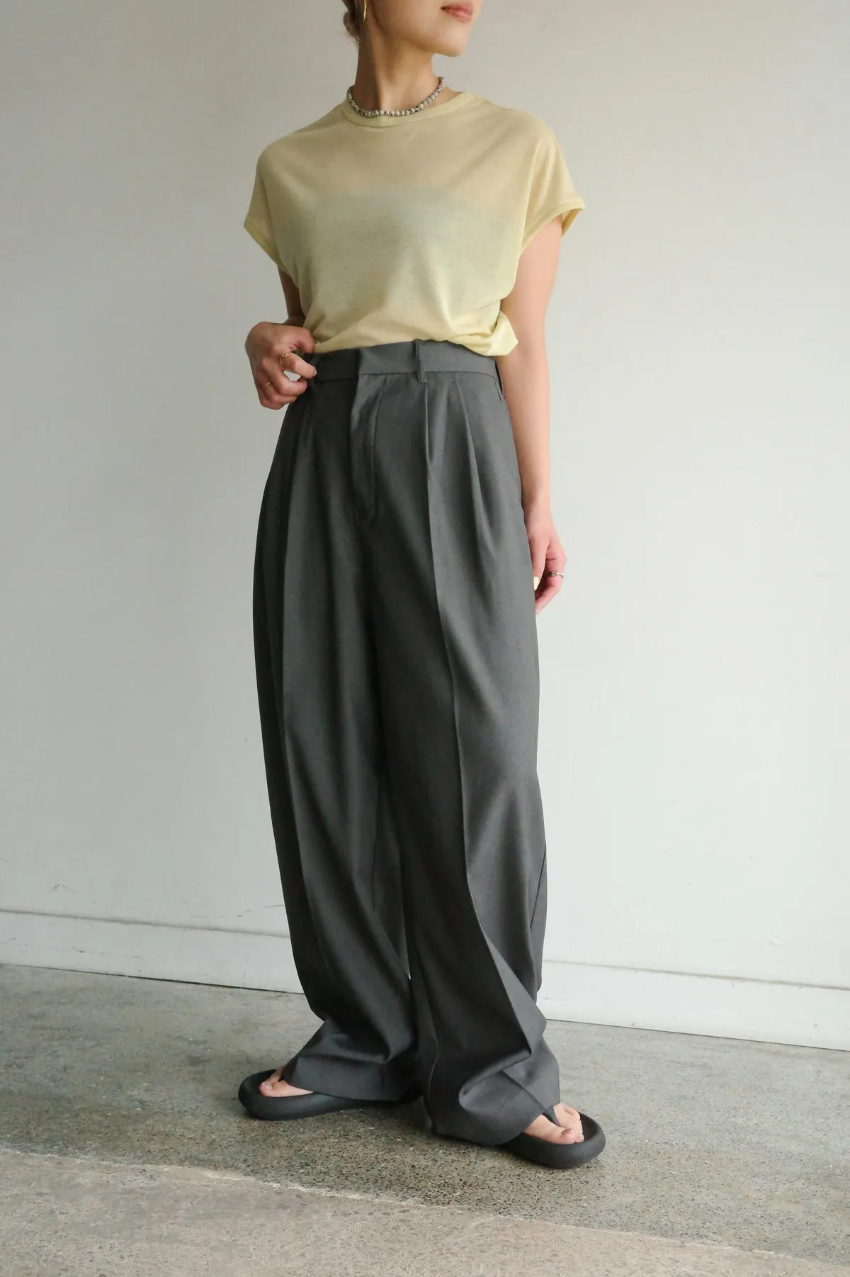 寬鬆的版型營造出輕鬆的造型