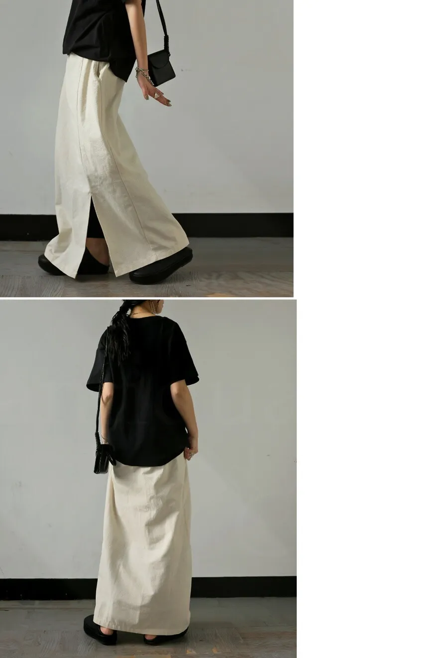 非常非常好看的混麻料長裙夏日穿很棒這款很挺喔!!整個版型比較不會貼身它比較接近小A LINE腰部鬆緊~有抽繩~整件是舒舒服服的當然~它還是有挺度的喔有半截內裡~米白也是可以單穿喔夏日穿這件~舒服.整體也很一種隨興感3色-黑/燕麥/霧灰<紅色目前無販售>2種尺寸長度也不太一樣喔小幫霧灰穿M/燕麥穿L穿起來鬆度感覺不太一樣喔~很舒服推薦