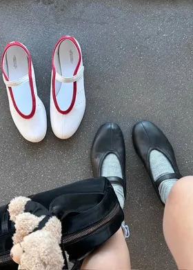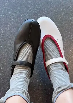 整體而言很像平底娃娃鞋+搭配不同的色襪非常可愛