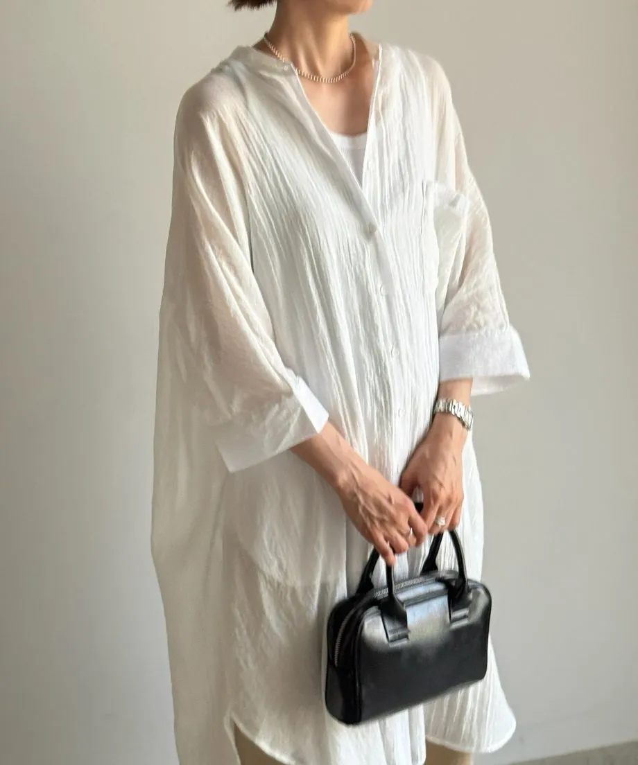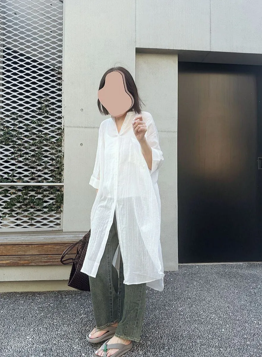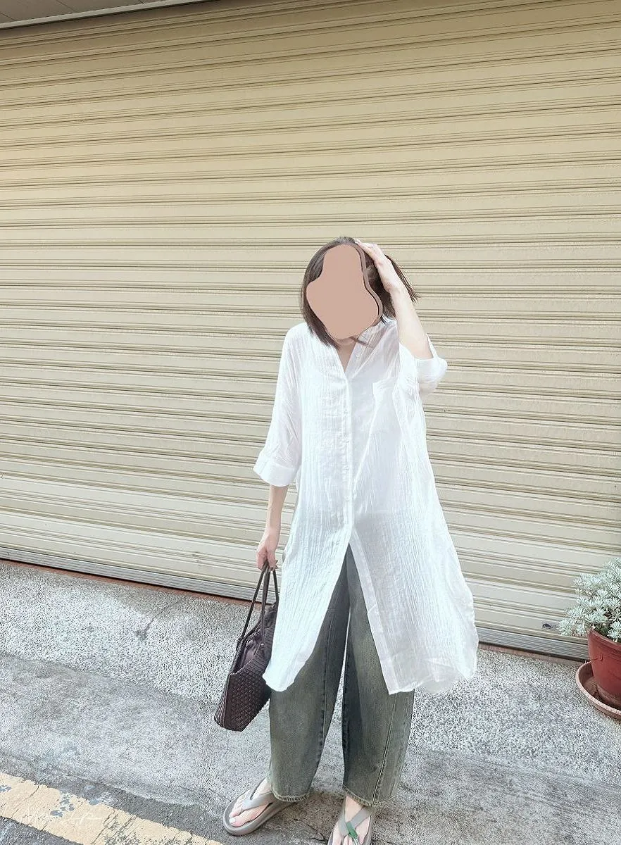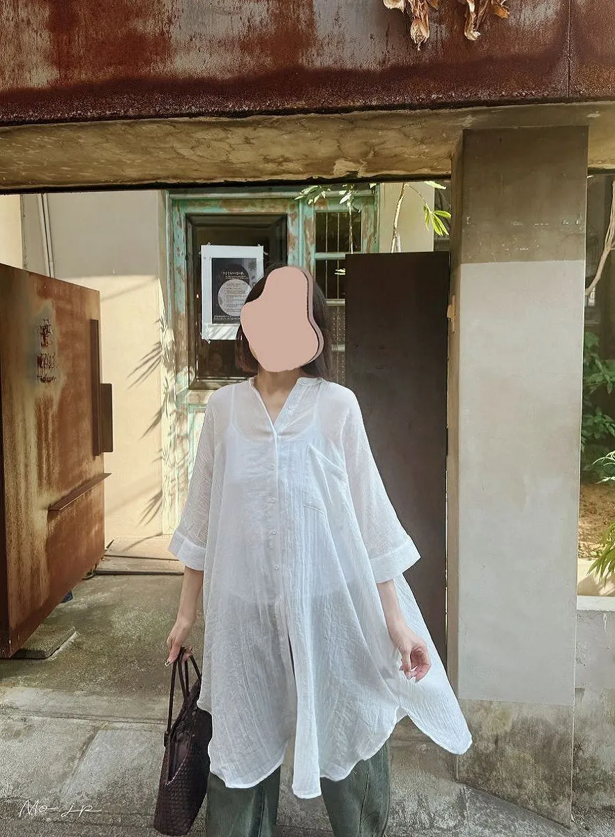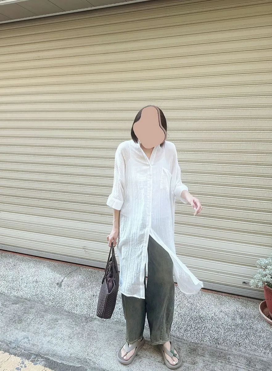 極美光影襯衫隱約立體紋路襯衫~中長板質感好棒好舒服精品等級~完全收到絕對會滿意的那種面料好舒服~觸感是有一種很高級的感覺這件近看的紋路超級美微微立體度薄+自然紋路棉空氣輕盈感~上身舒適滿分透過面料+順身剪裁保持薄身效果不顯壯微透~建議搭配BRA TOP或小背心穿搭都很美