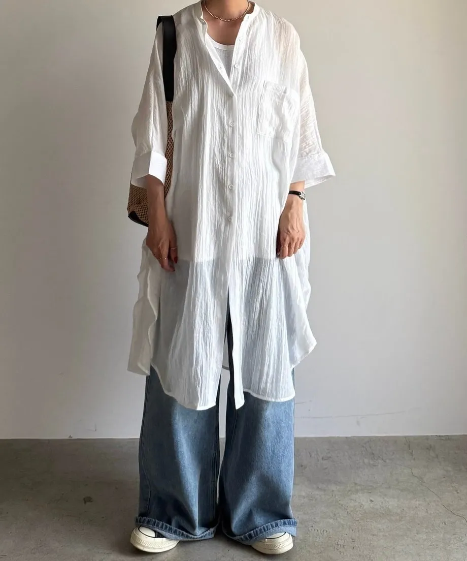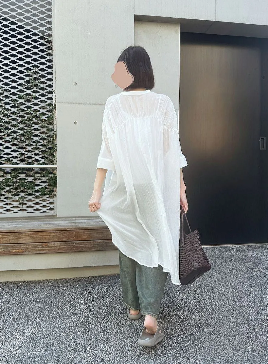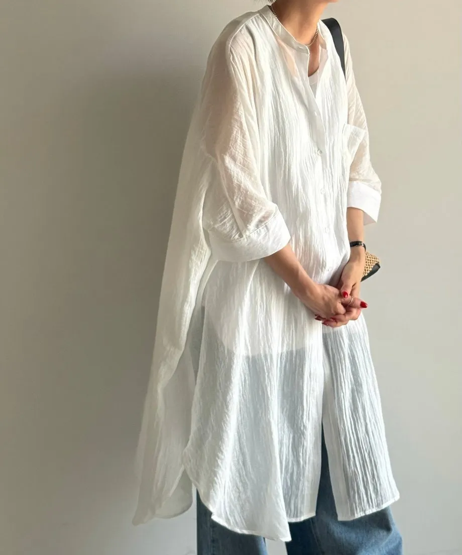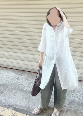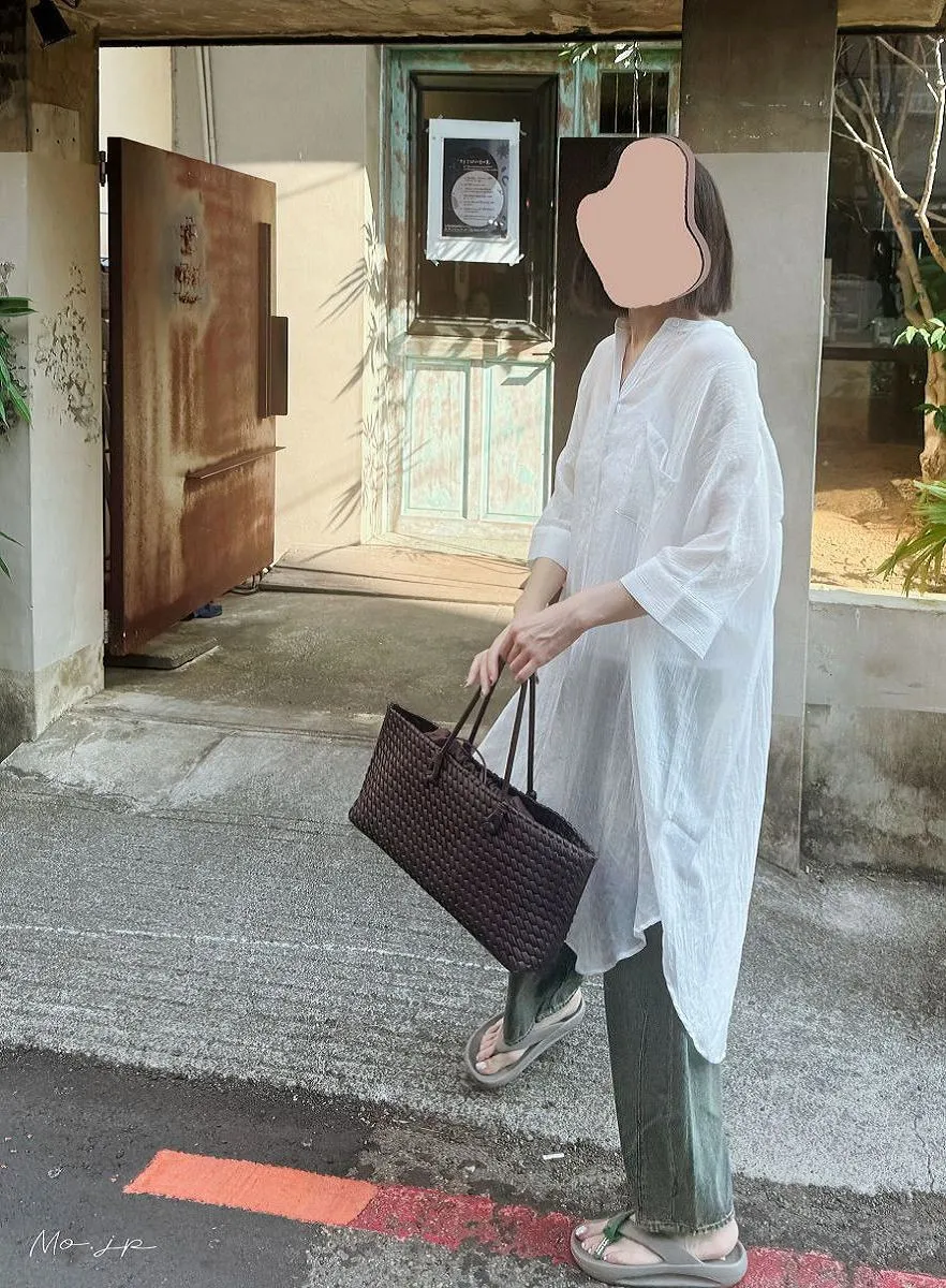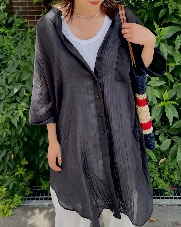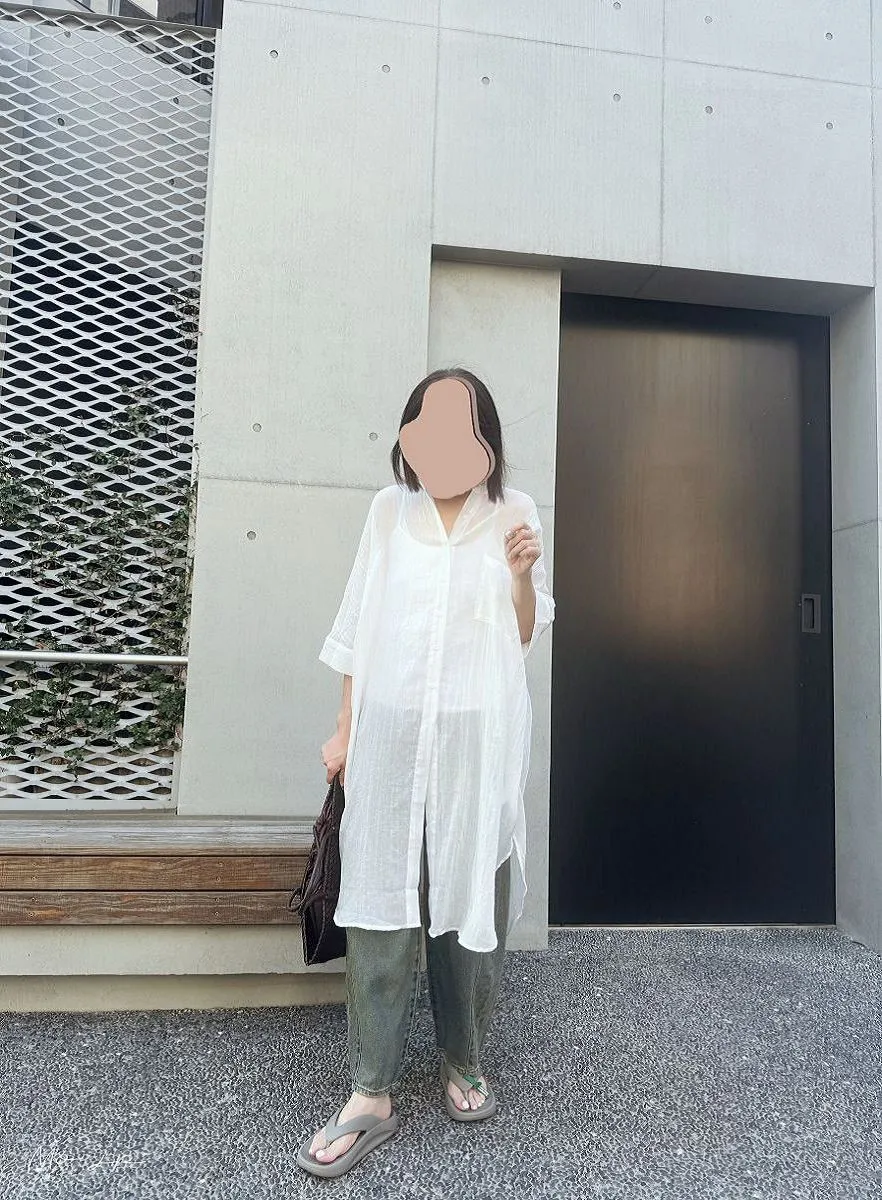 極美光影襯衫隱約立體紋路襯衫~中長板質感好棒好舒服精品等級~完全收到絕對會滿意的那種面料好舒服~觸感是有一種很高級的感覺這件近看的紋路超級美微微立體度薄+自然紋路棉空氣輕盈感~上身舒適滿分透過面料+順身剪裁保持薄身效果不顯壯微透~建議搭配BRA TOP或小背心穿搭都很美