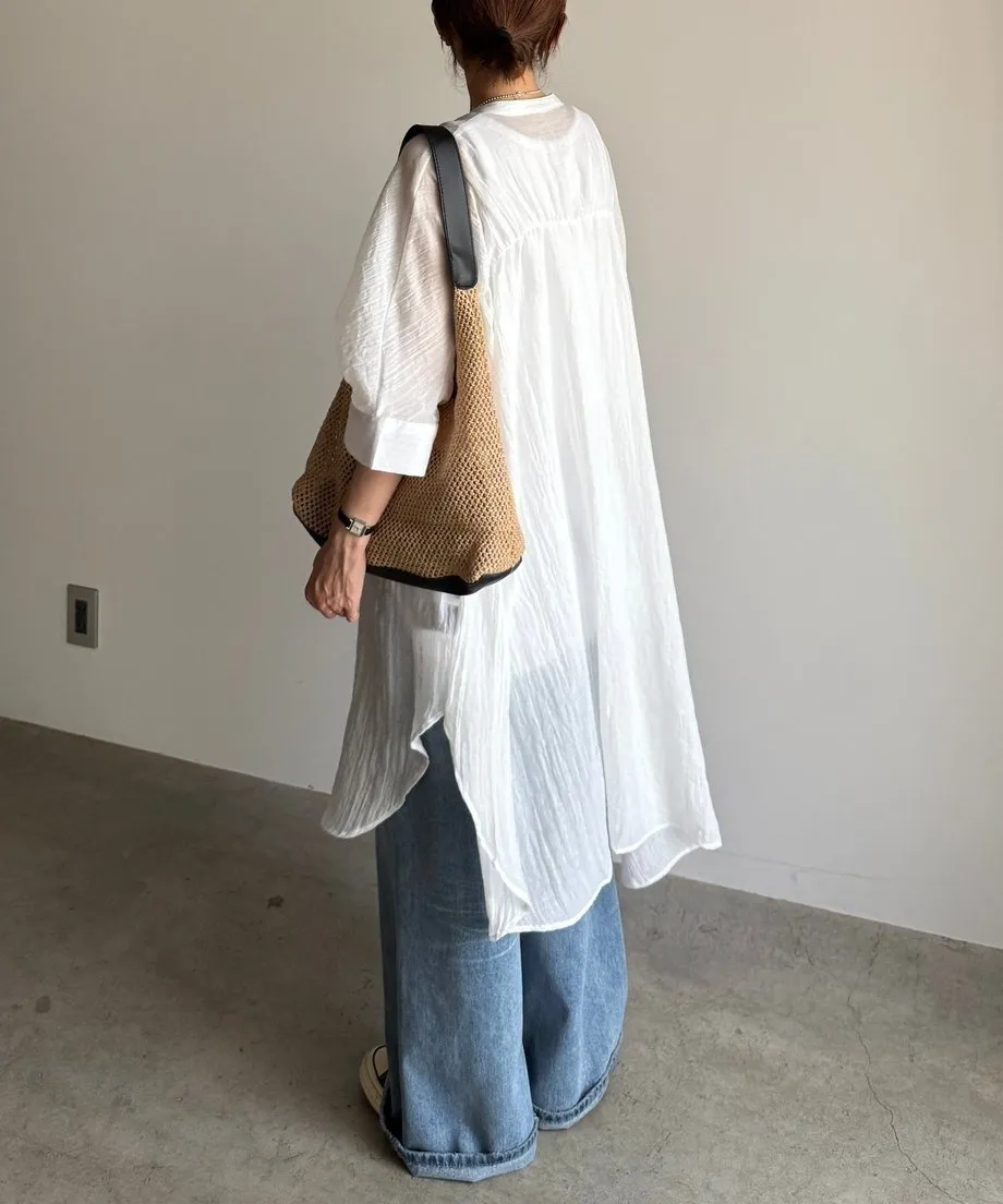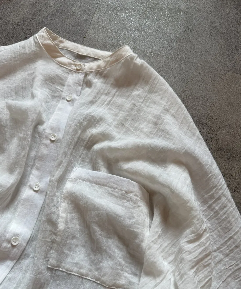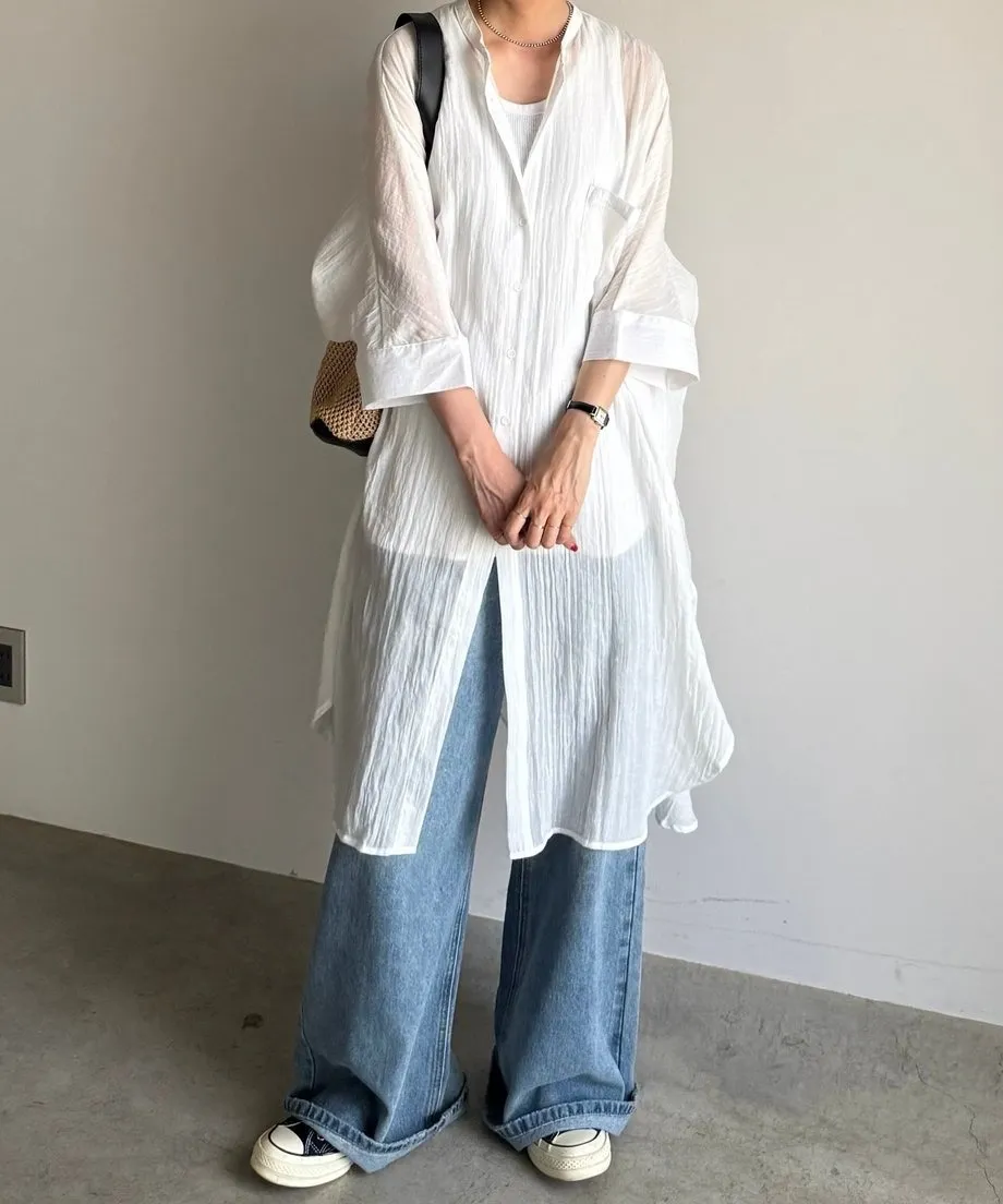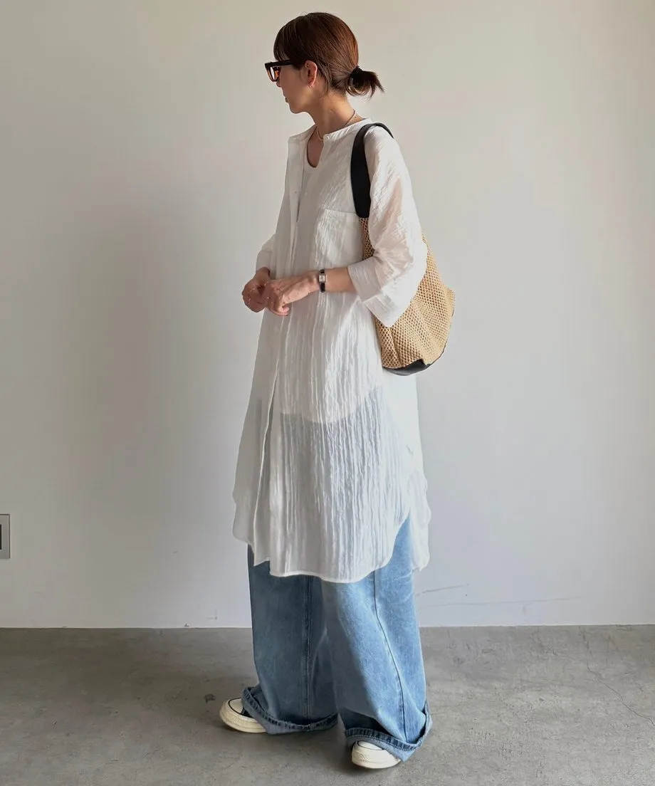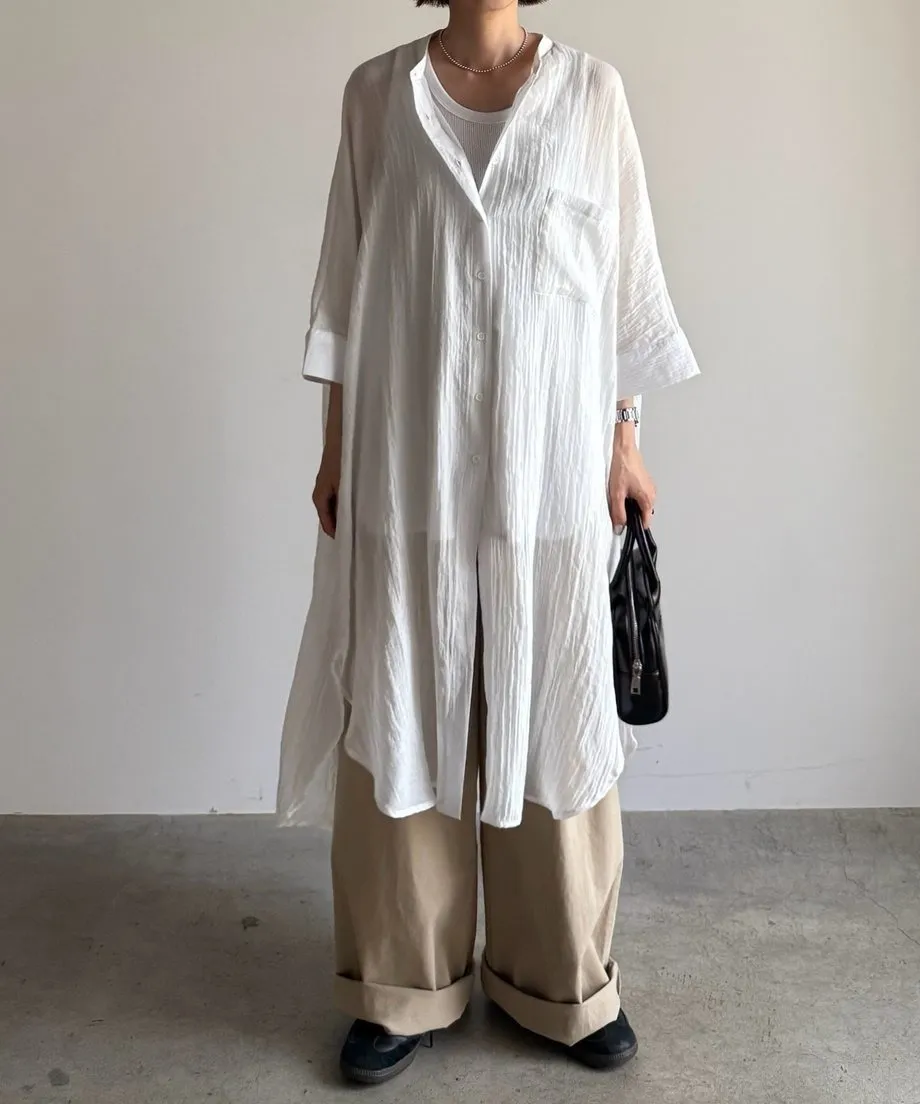 極美光影襯衫隱約立體紋路襯衫~中長板質感好棒好舒服精品等級~完全收到絕對會滿意的那種面料好舒服~觸感是有一種很高級的感覺這件近看的紋路超級美微微立體度薄+自然紋路棉空氣輕盈感~上身舒適滿分透過面料+順身剪裁保持薄身效果不顯壯微透~建議搭配BRA TOP或小背心穿搭都很美