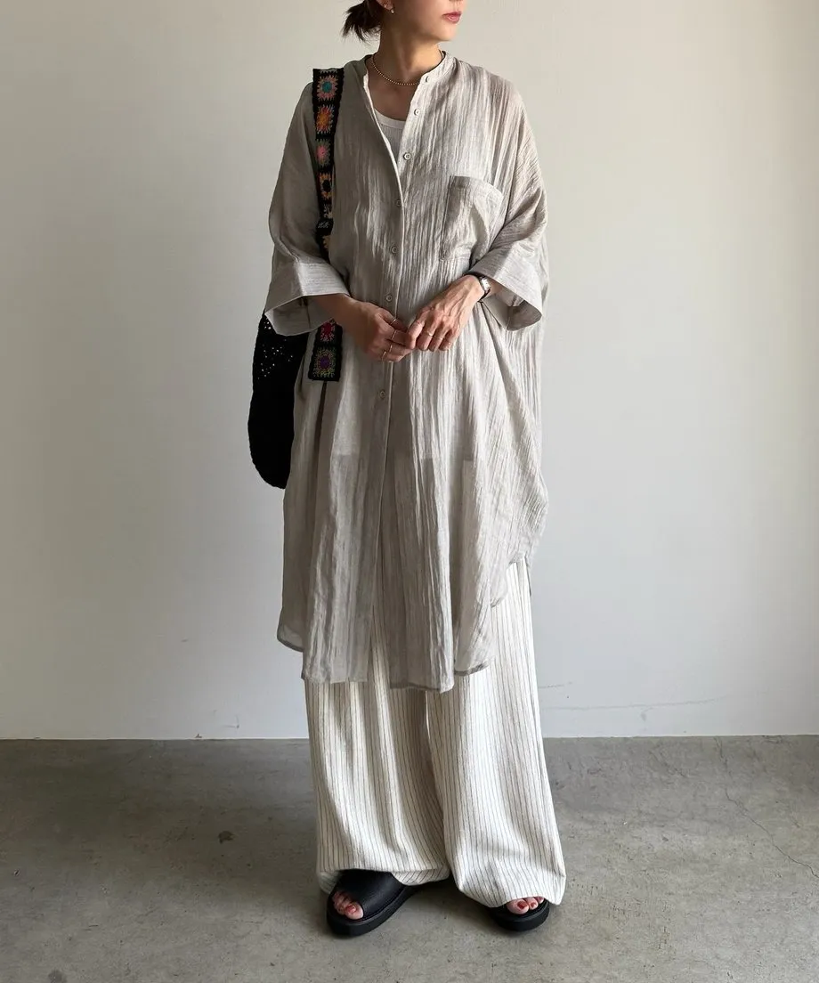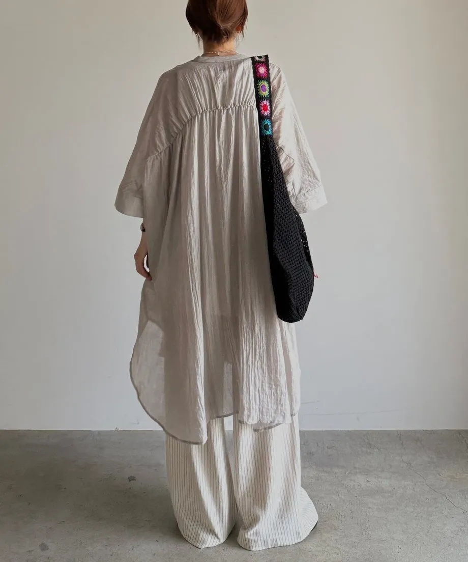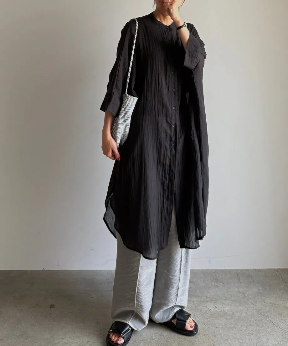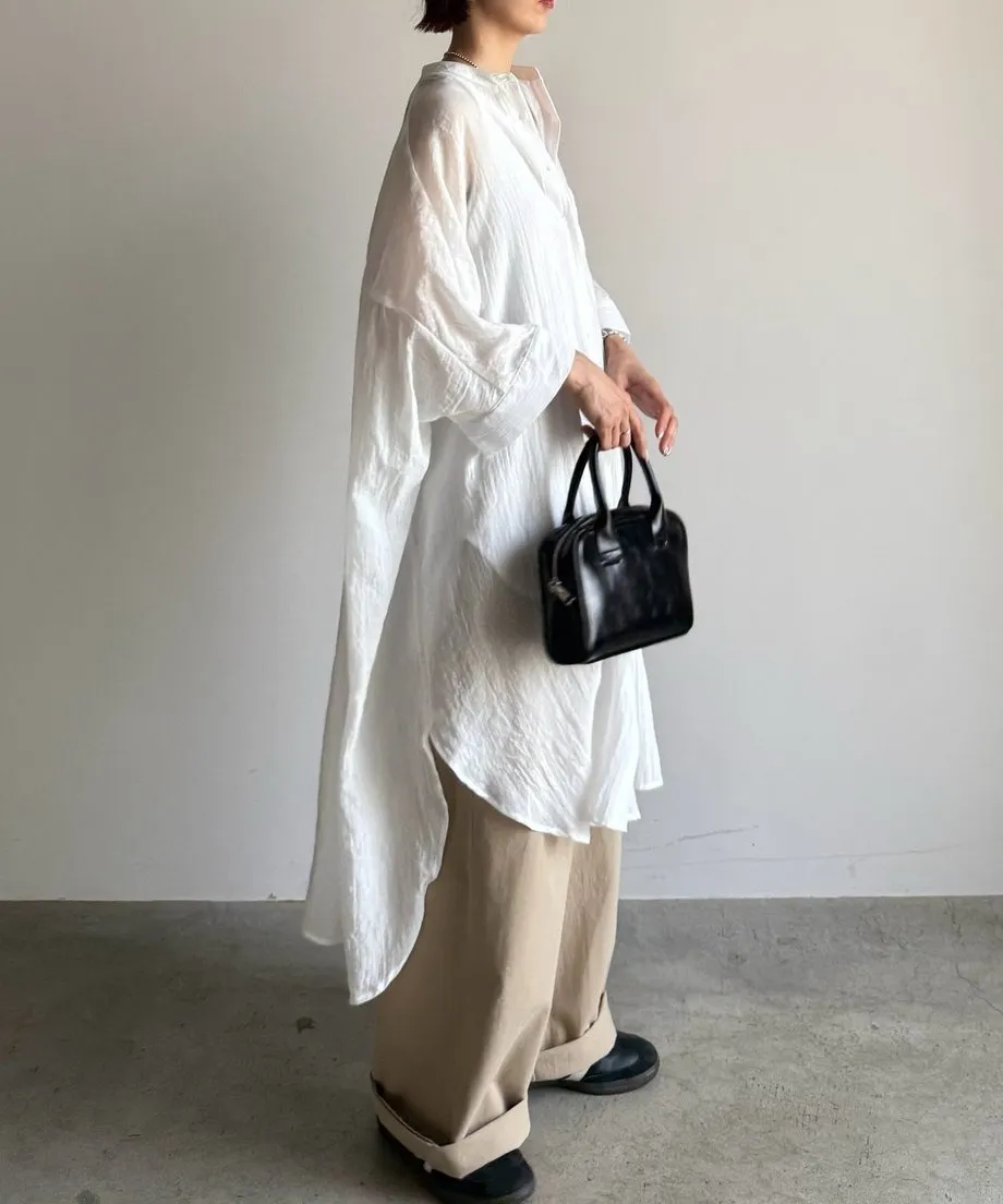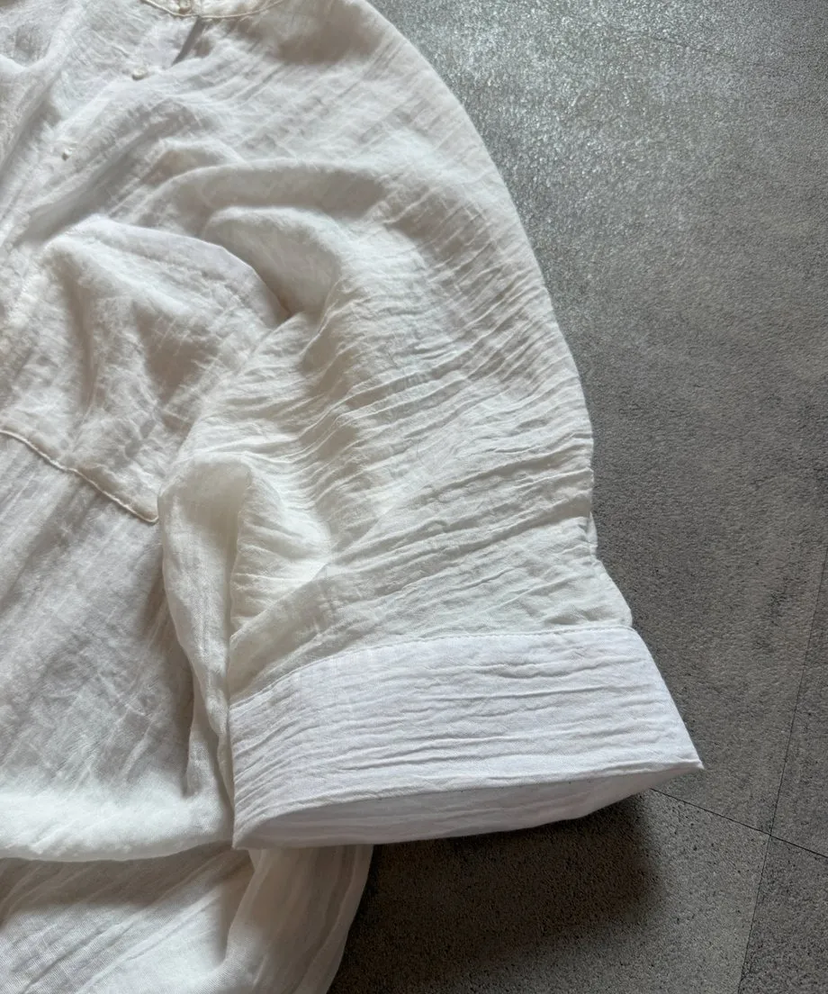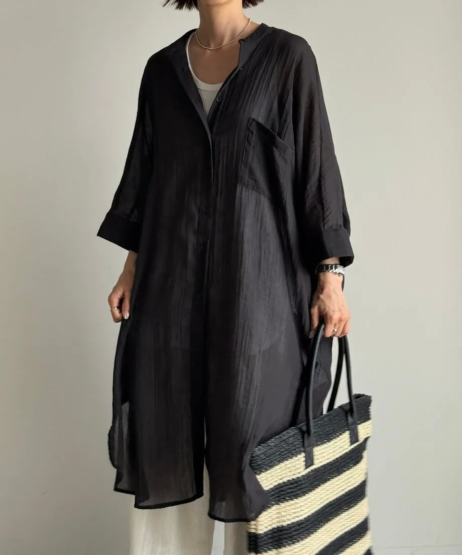 極美光影襯衫隱約立體紋路襯衫~中長板質感好棒好舒服精品等級~完全收到絕對會滿意的那種面料好舒服~觸感是有一種很高級的感覺這件近看的紋路超級美微微立體度薄+自然紋路棉空氣輕盈感~上身舒適滿分透過面料+順身剪裁保持薄身效果不顯壯微透~建議搭配BRA TOP或小背心穿搭都很美
