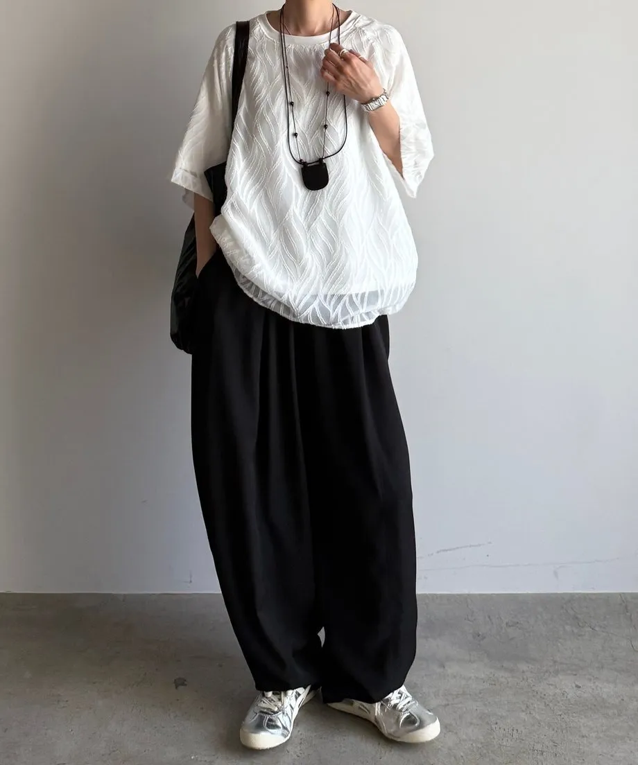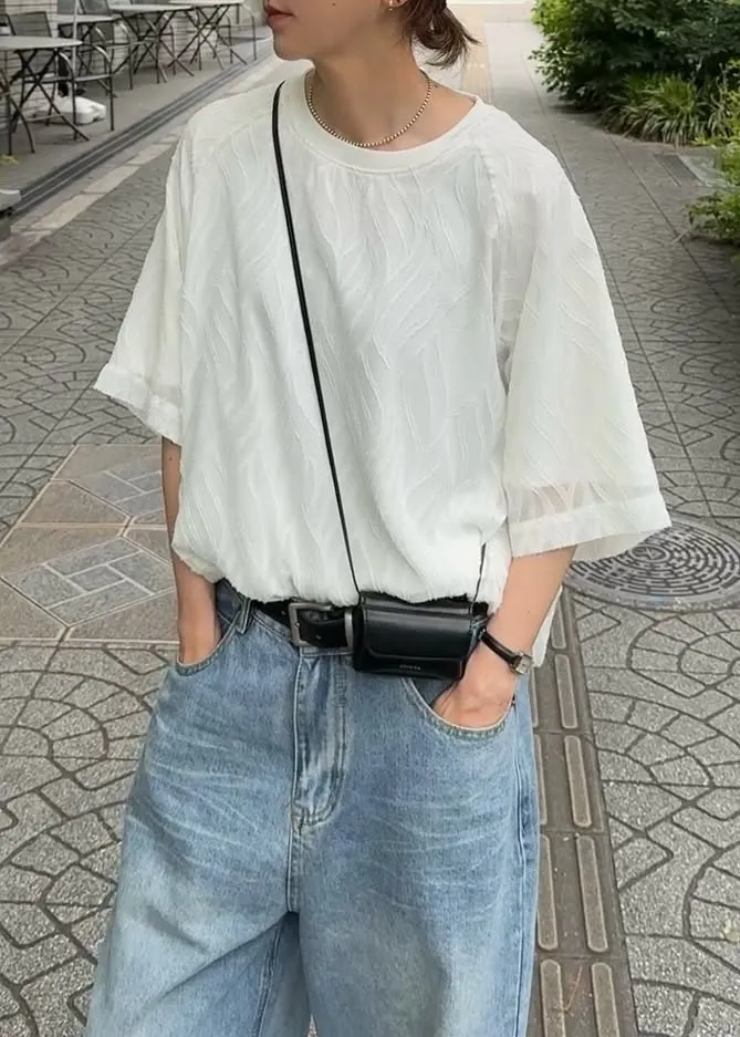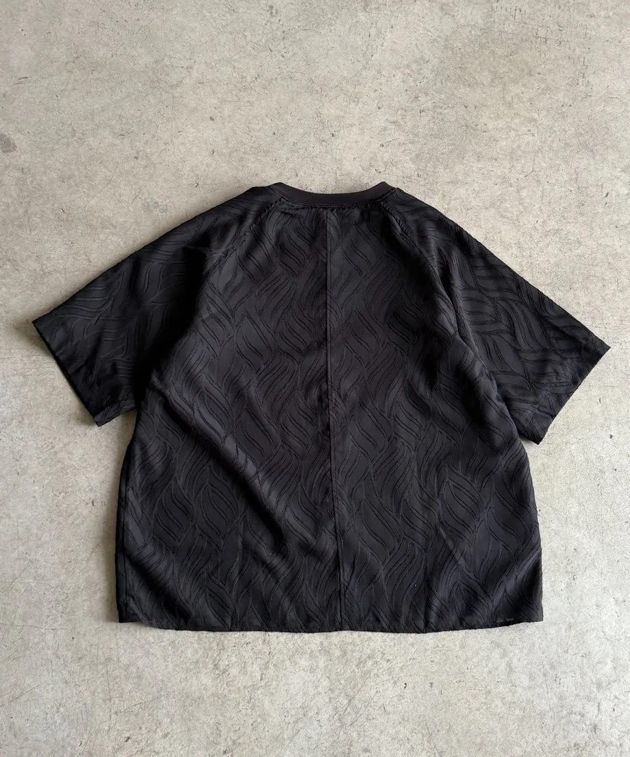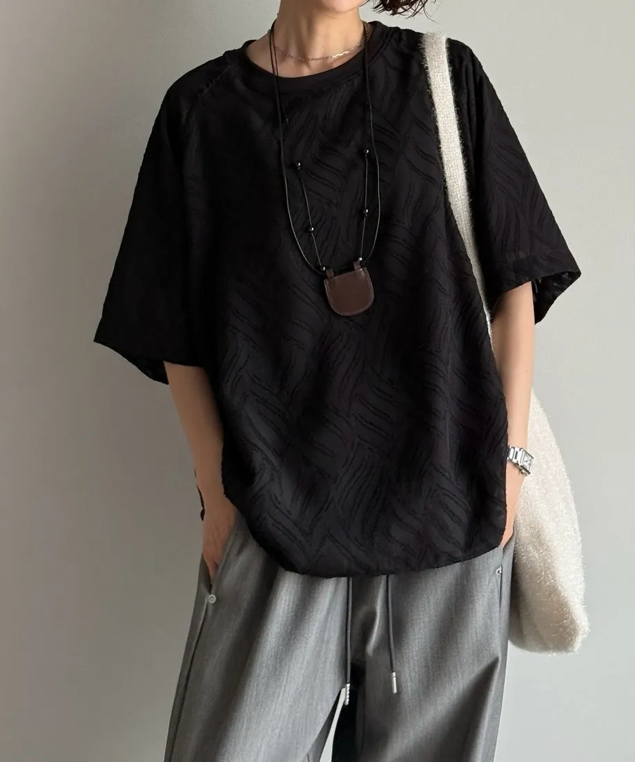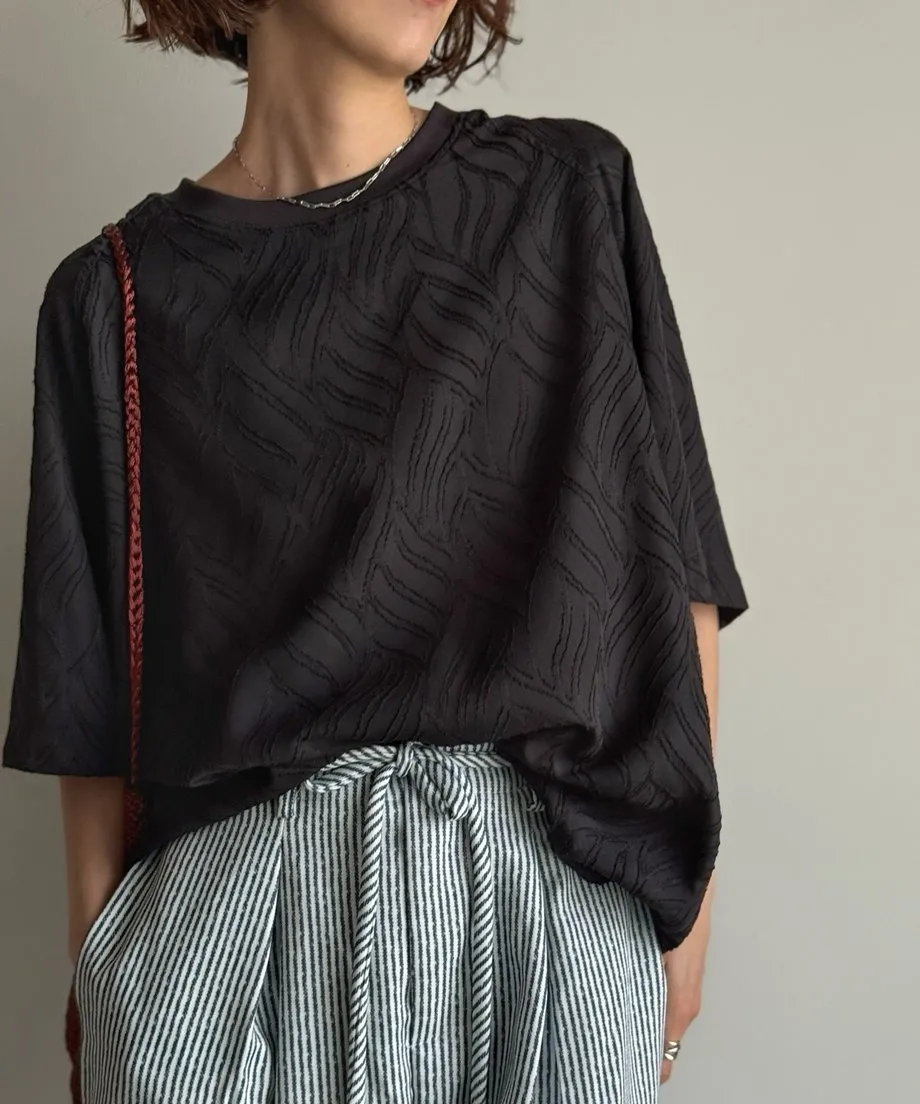 今日追加通知白色補貨囉!^^重點價格還有小折扣有詢問的不要錯過囉透明提花波浪刺繡圖騰造型上衣寬鬆輪廓垂墜五分袖 透明面料與帶有波浪紋樣的提花面料巧妙融合同色調的內裡一件呈現透明感&立體感優雅又兼具個性氣質 數量限定