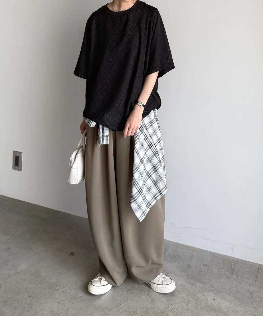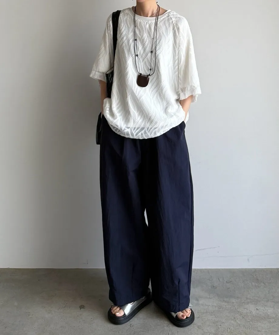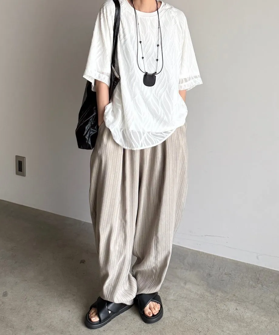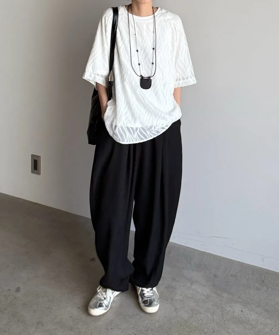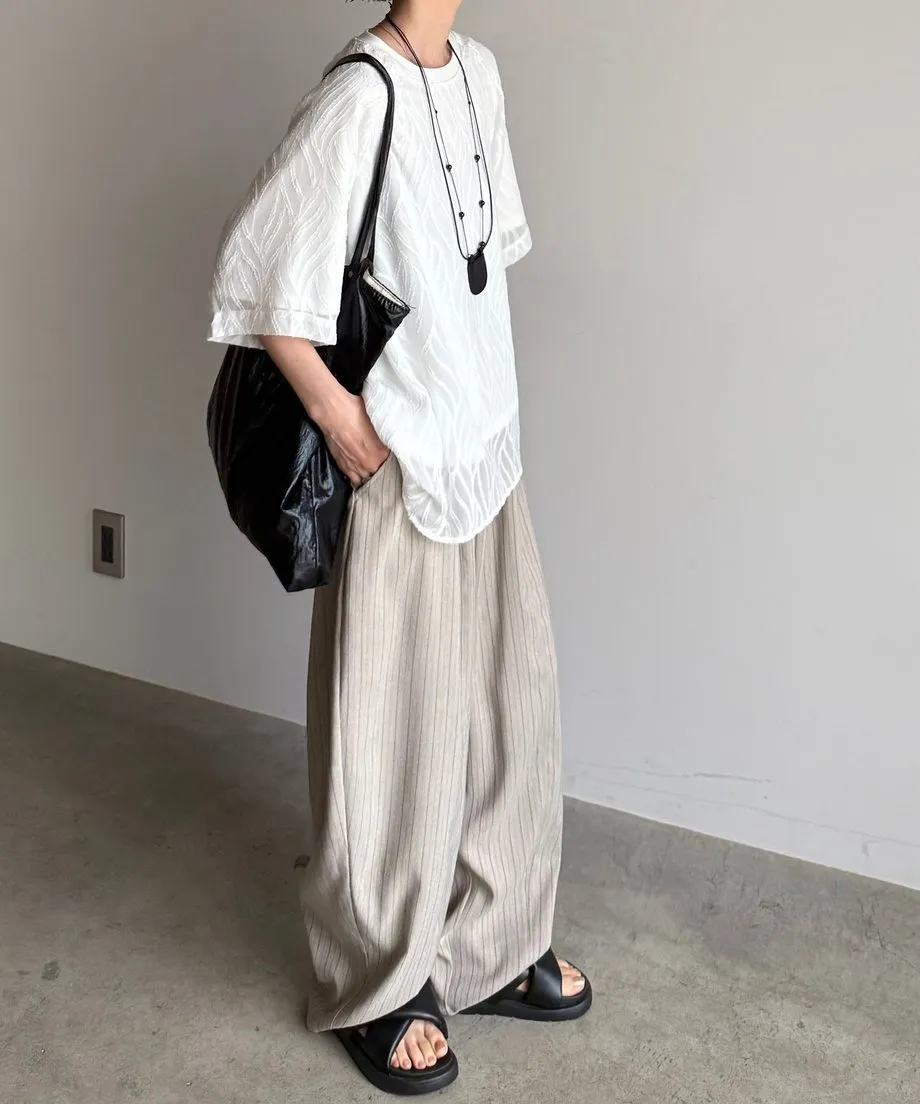 今日追加通知白色補貨囉!^^重點價格還有小折扣有詢問的不要錯過囉透明提花波浪刺繡圖騰造型上衣寬鬆輪廓垂墜五分袖 透明面料與帶有波浪紋樣的提花面料巧妙融合同色調的內裡一件呈現透明感&立體感優雅又兼具個性氣質 數量限定