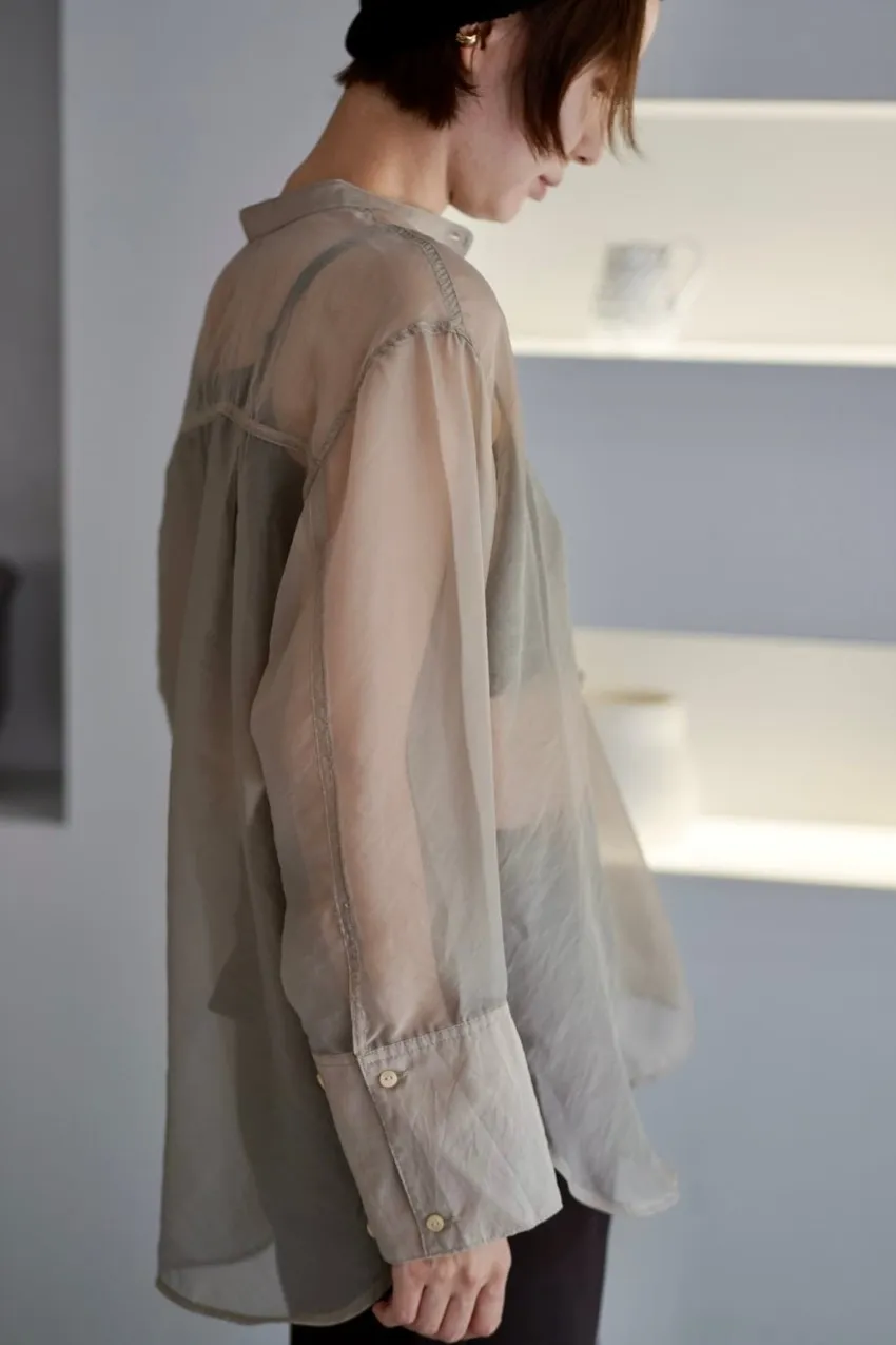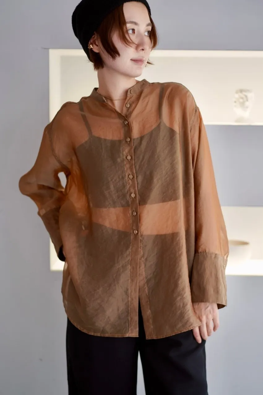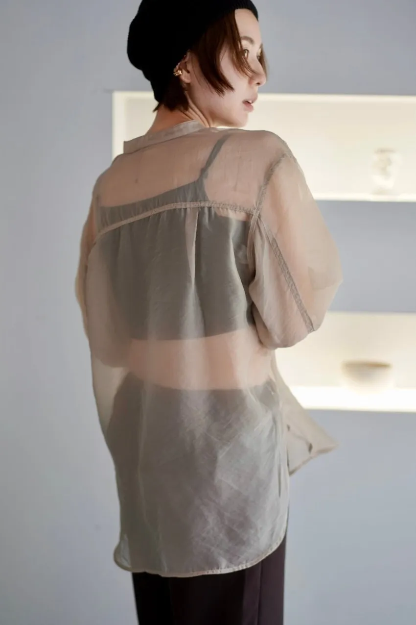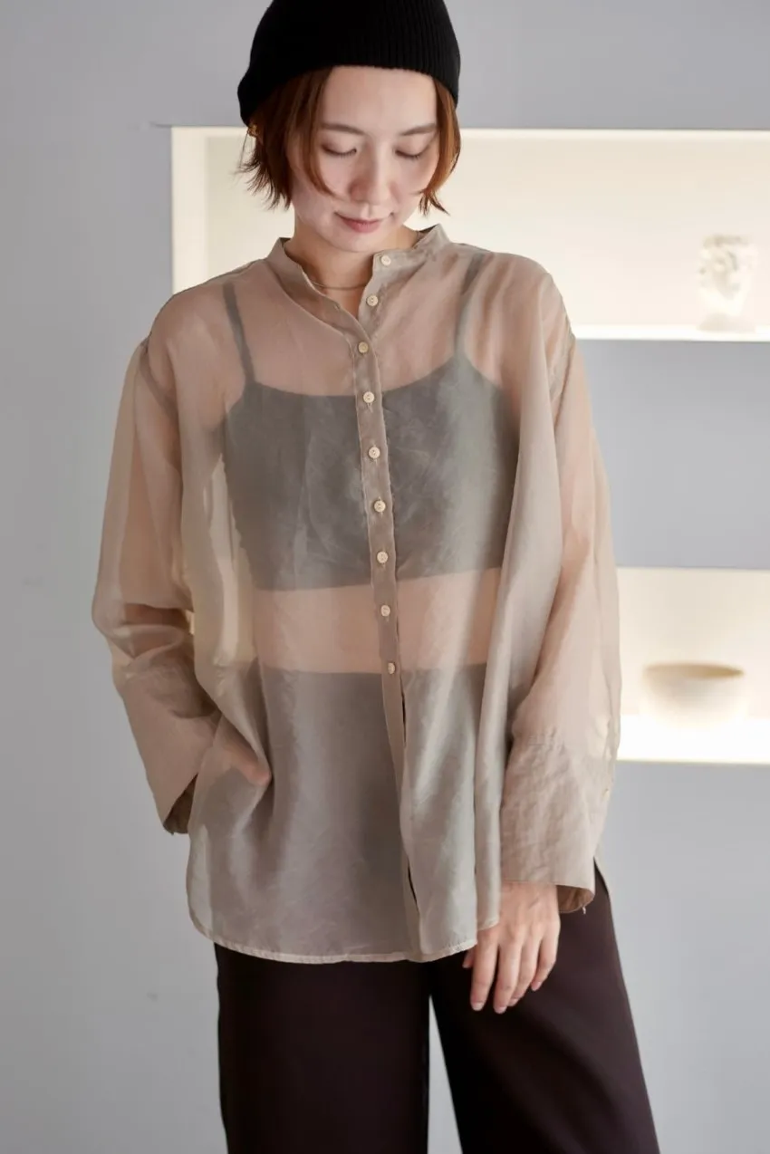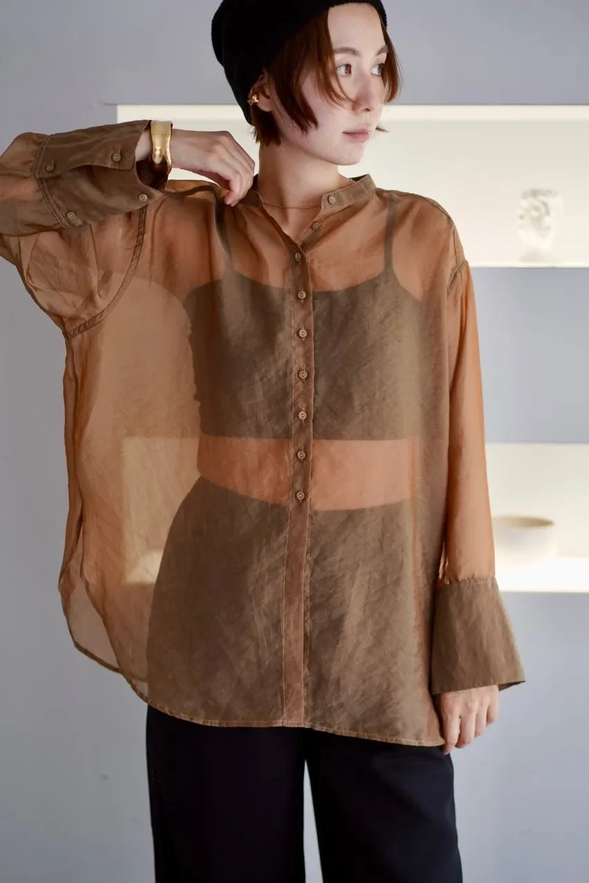 <8月特惠>品牌質感華麗光澤透視立領寬版襯衫