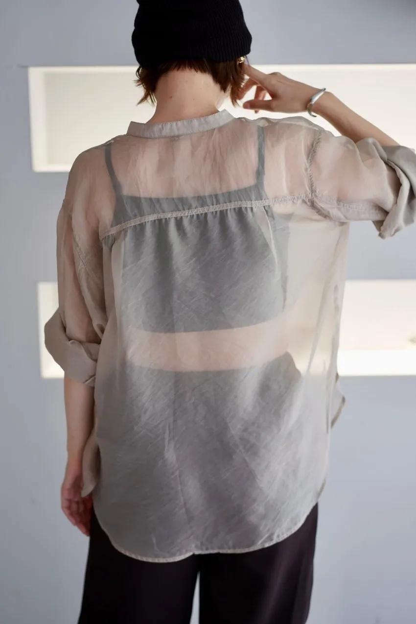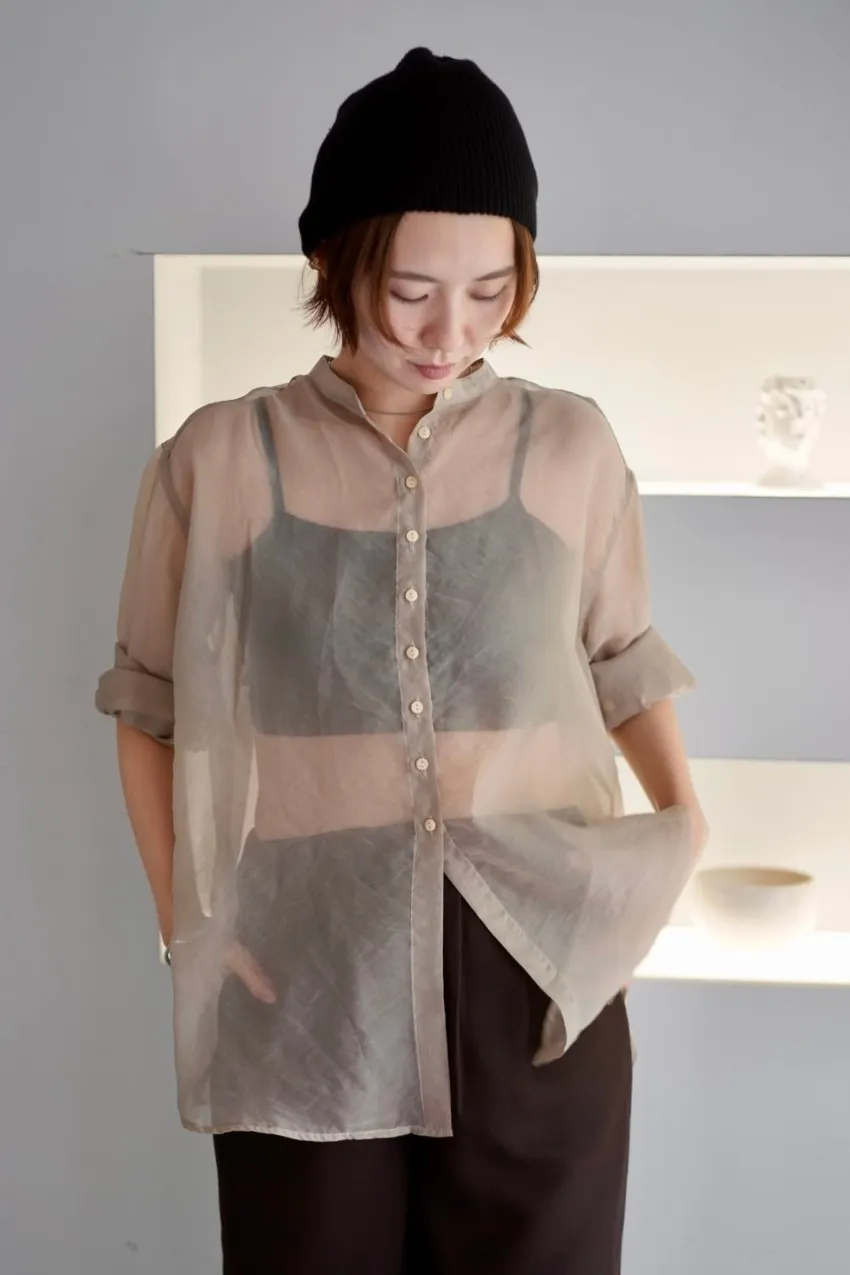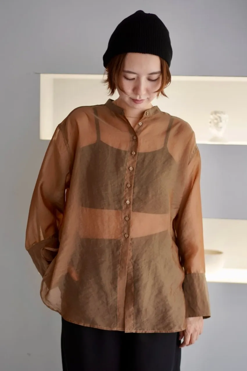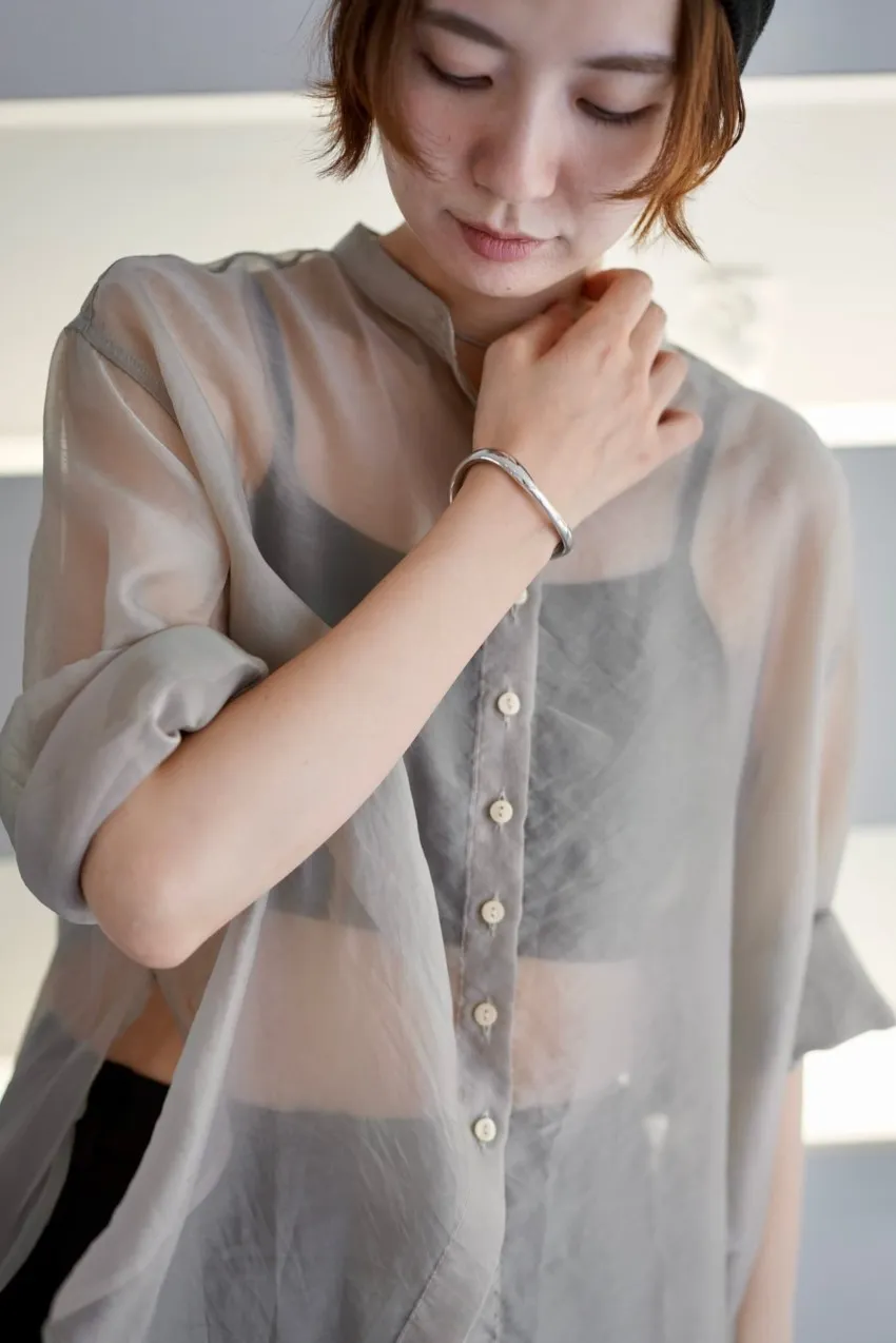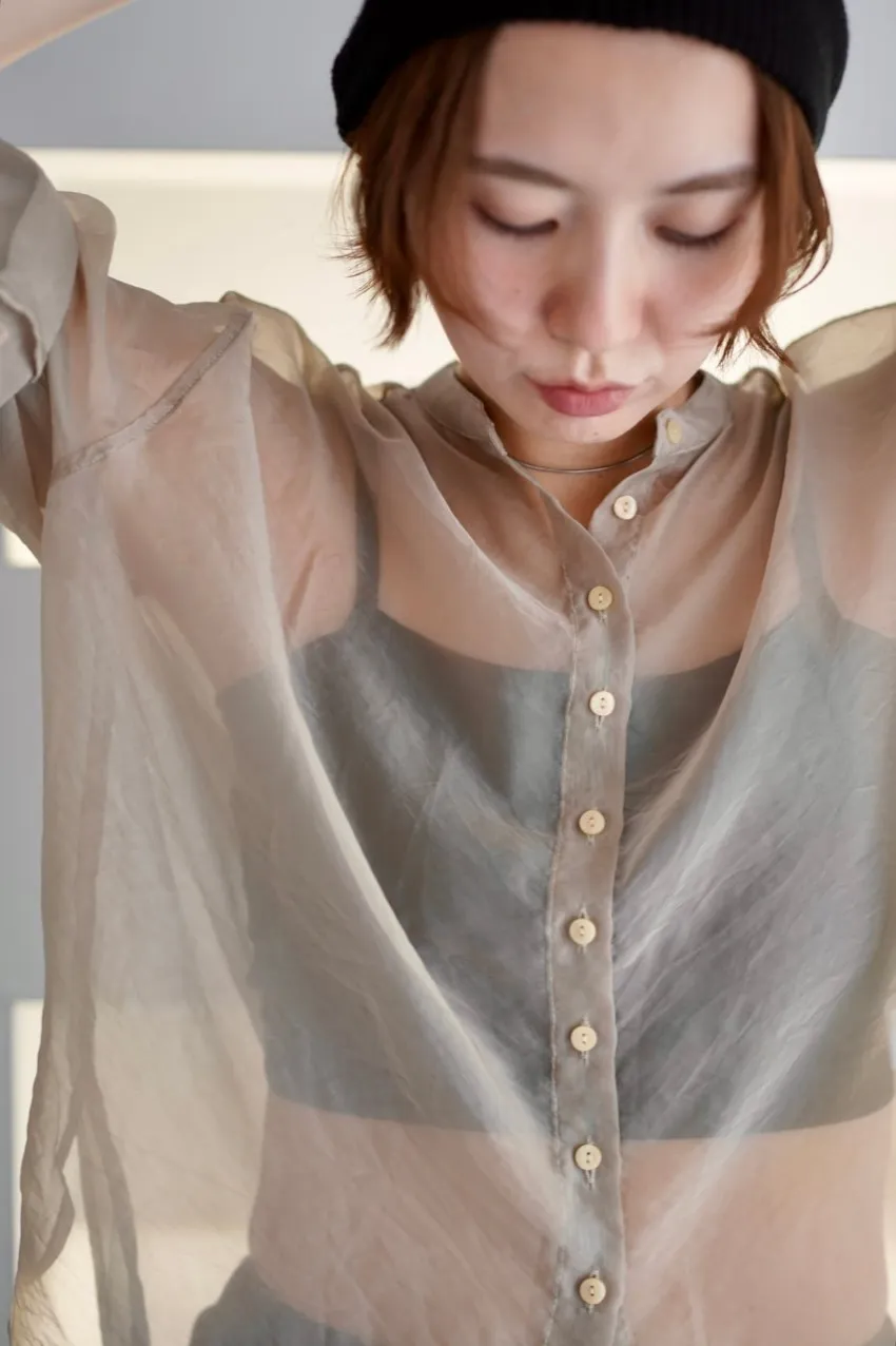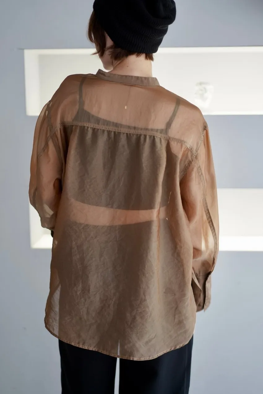 <8月特惠>品牌質感華麗光澤透視立領寬版襯衫