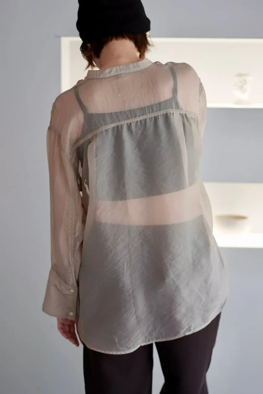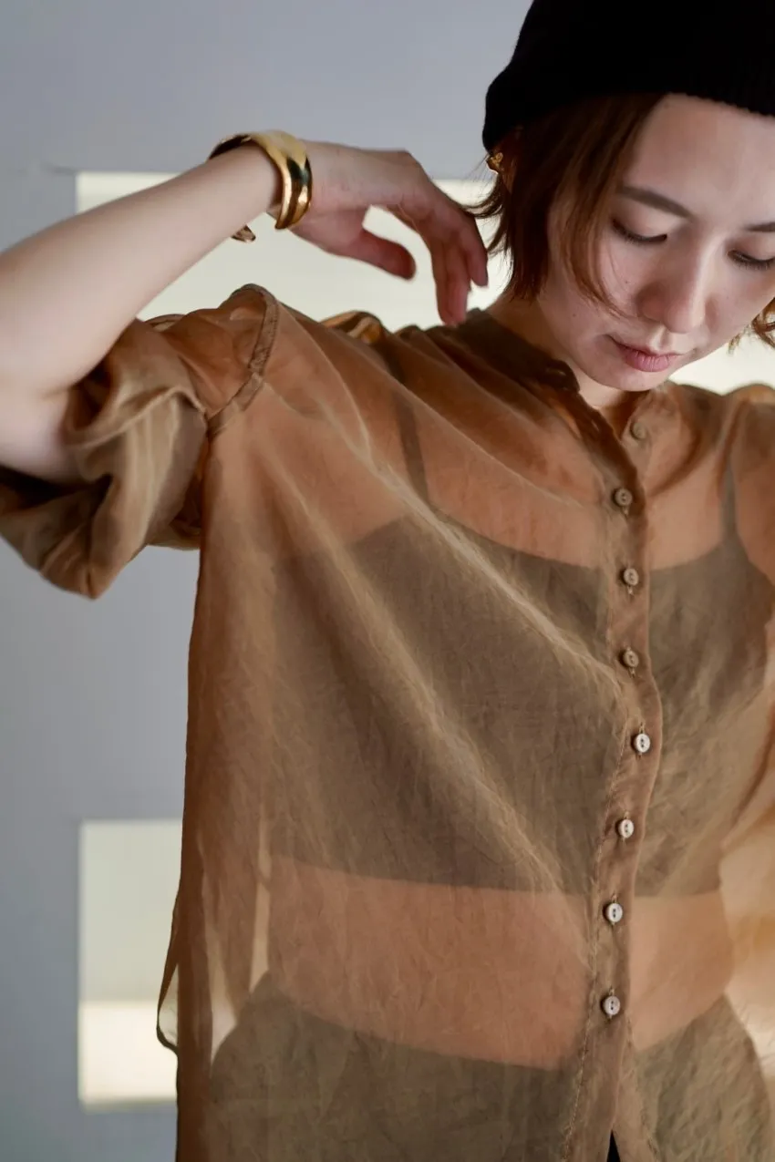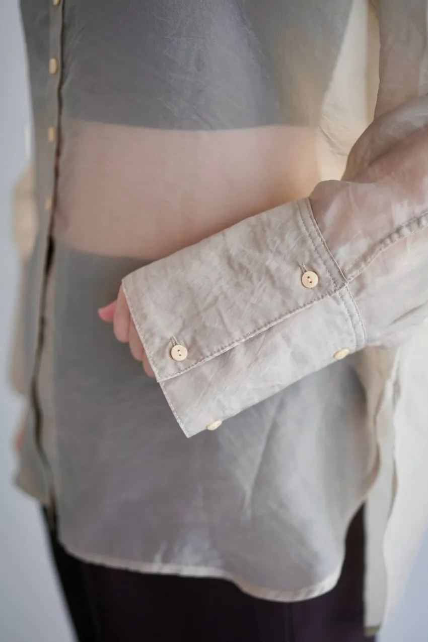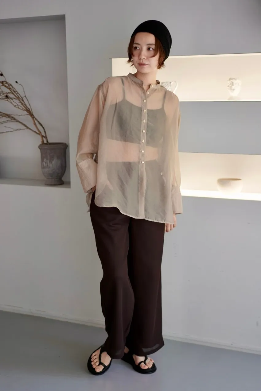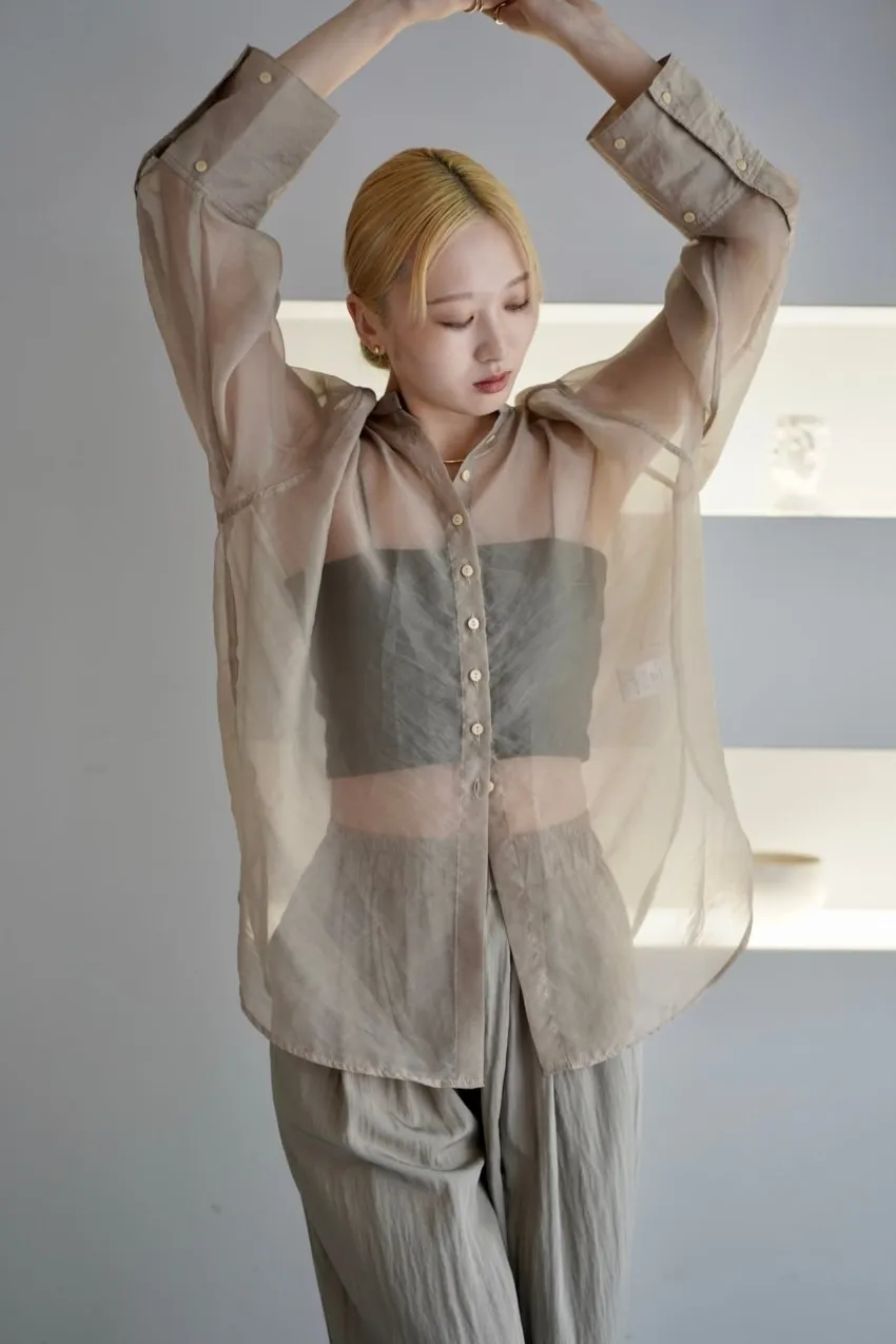 <8月特惠>品牌質感華麗光澤透視立領寬版襯衫