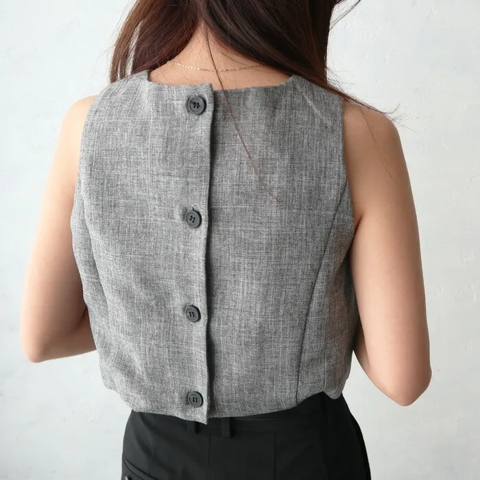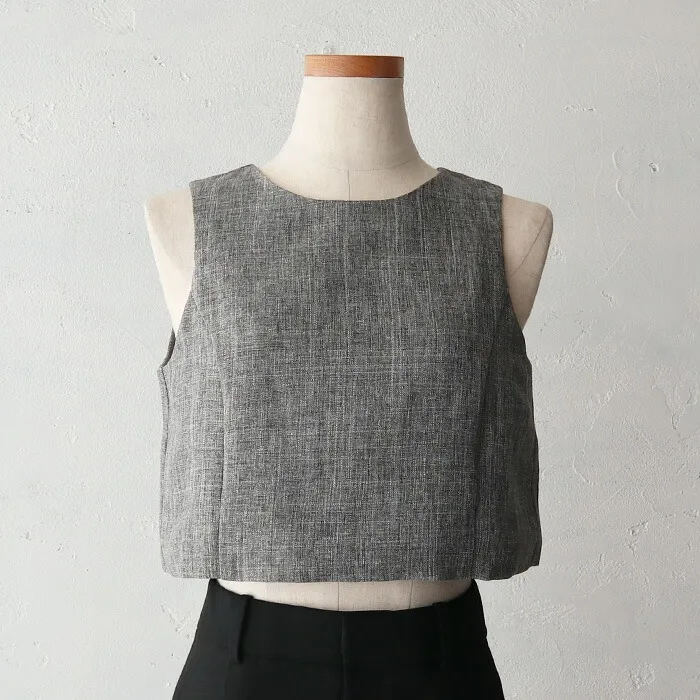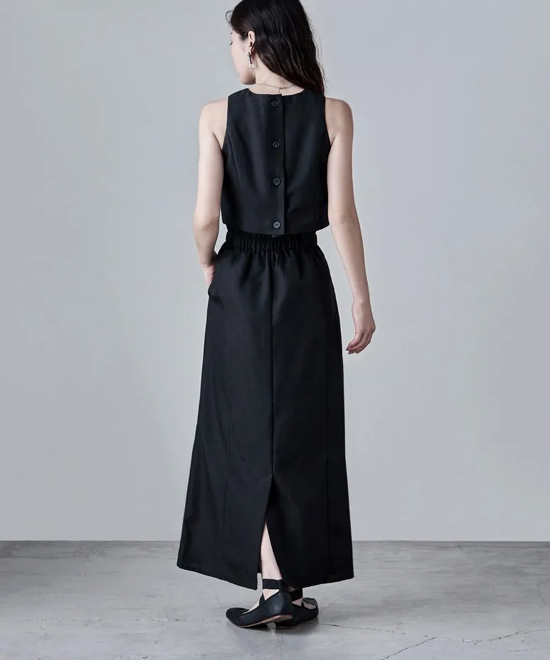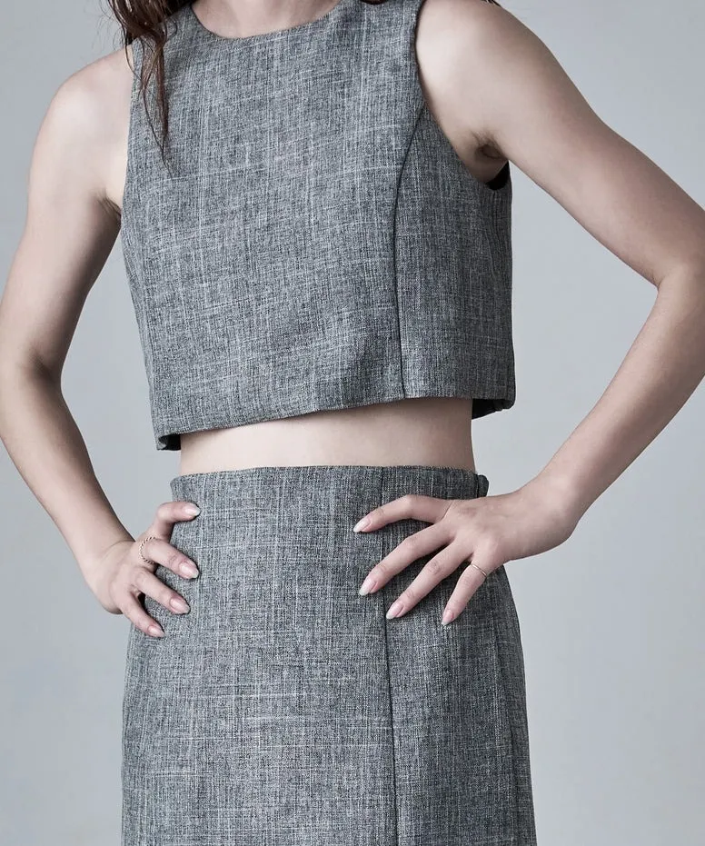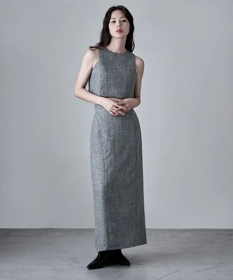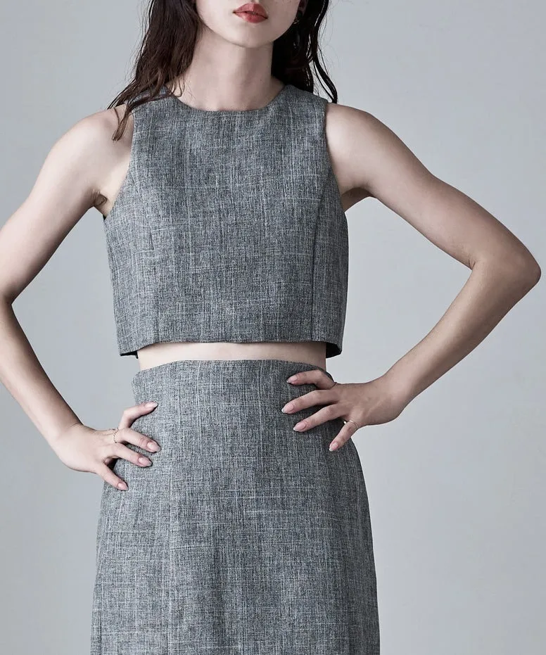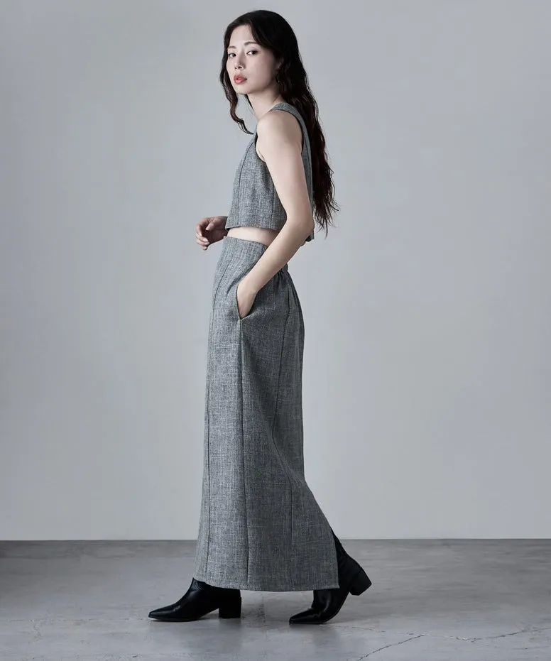 可以搭配成套的麻紋路線條觸感造型背心&長裙