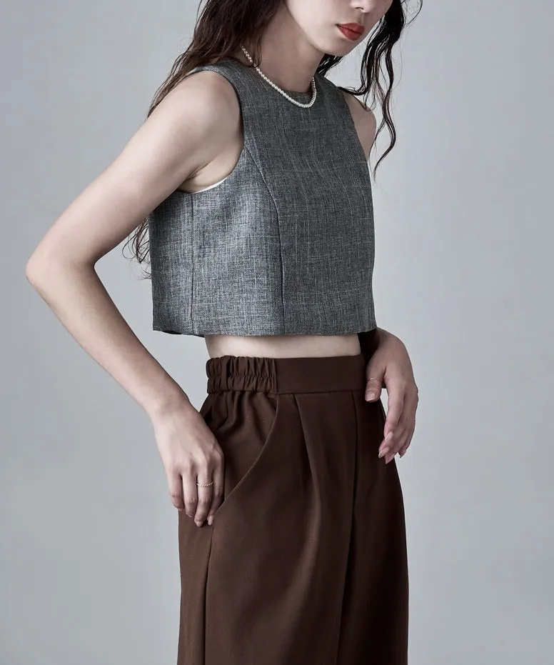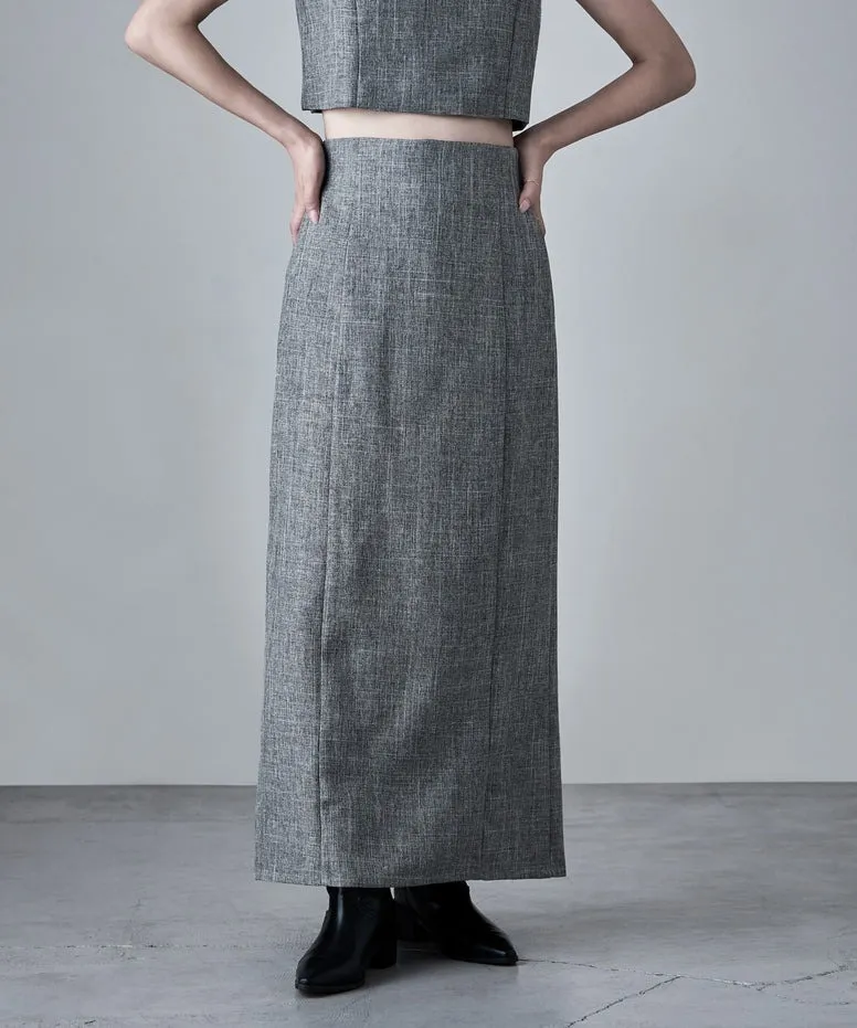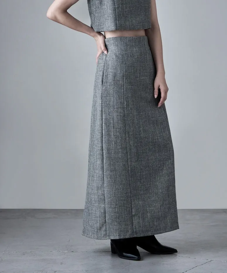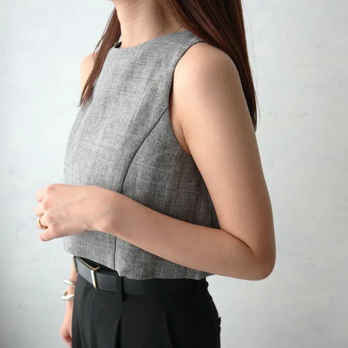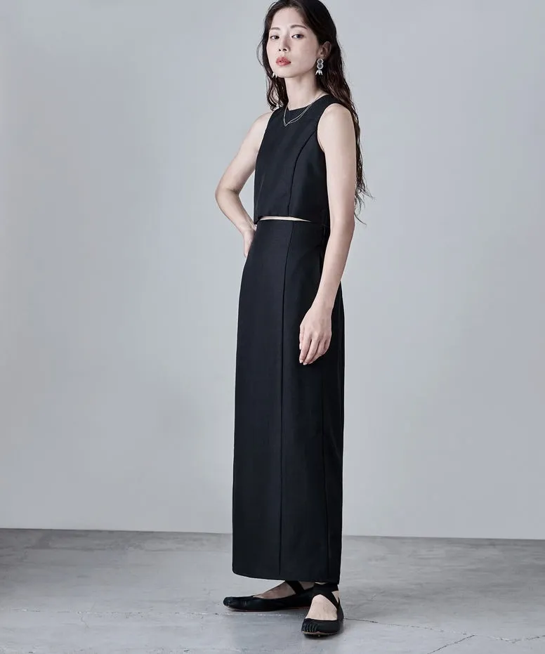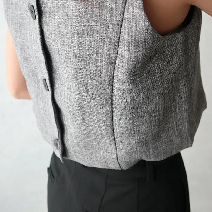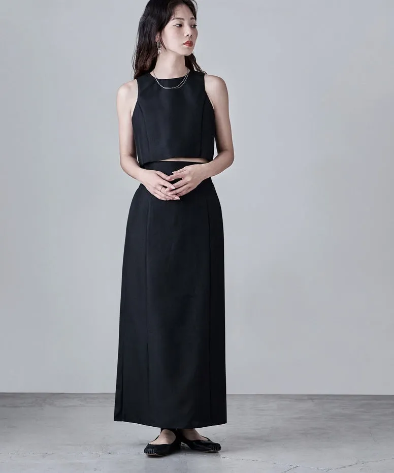 可以搭配成套的麻紋路線條觸感造型背心&長裙