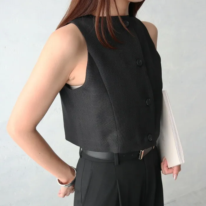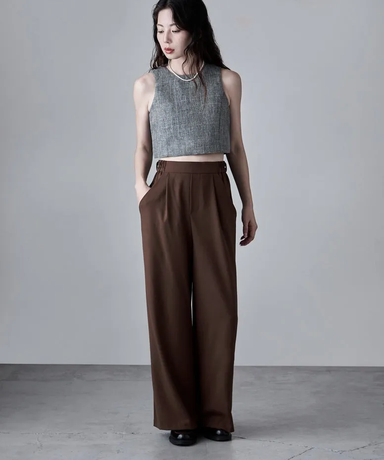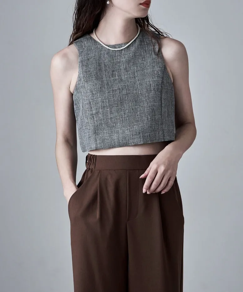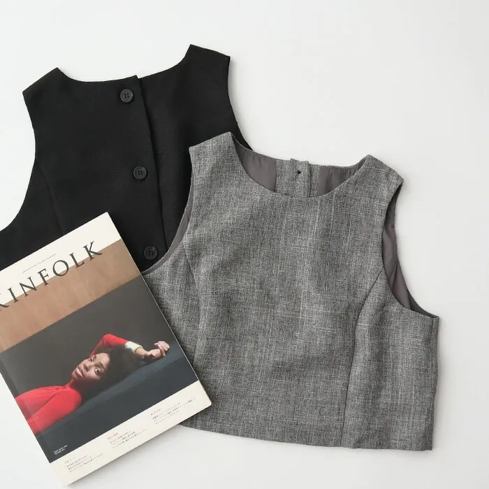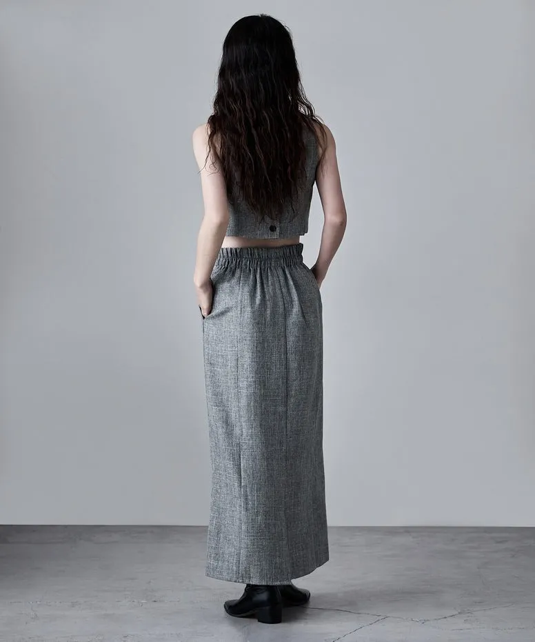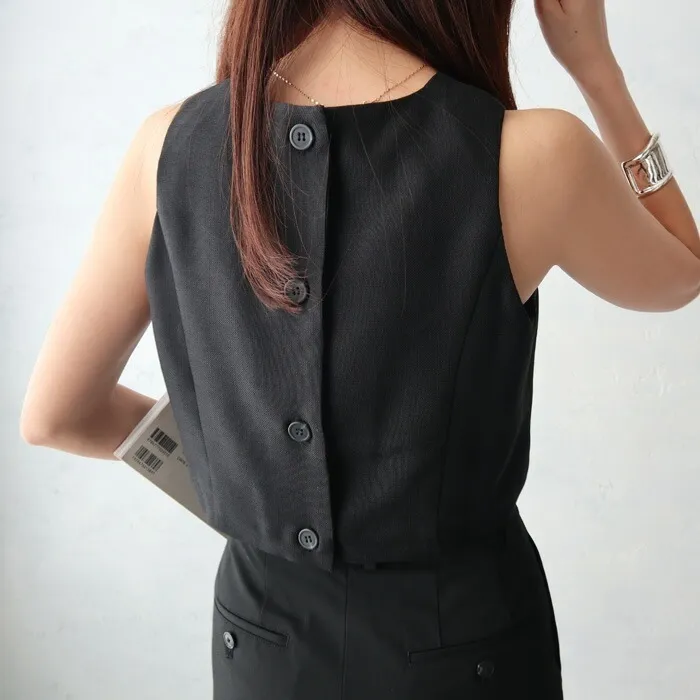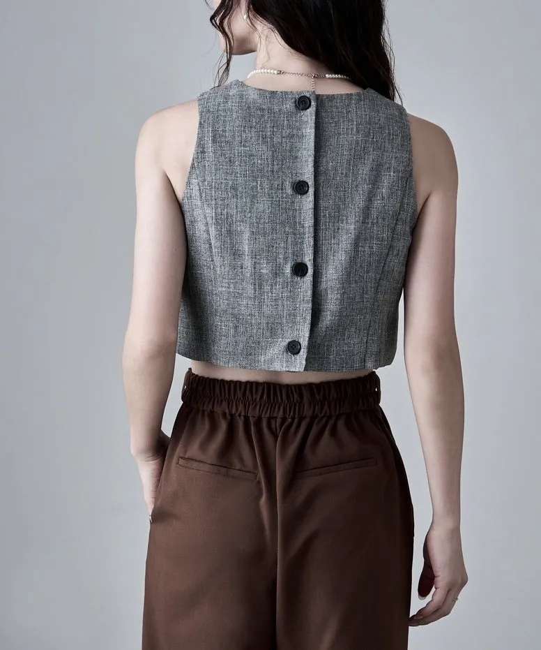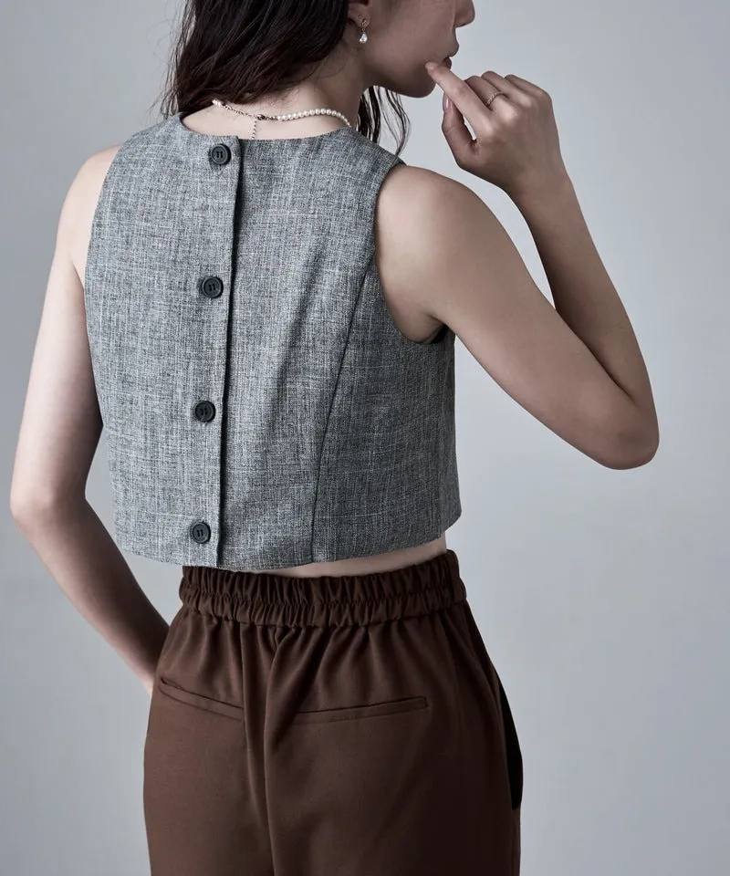可以搭配成套的麻紋路線條觸感造型背心&長裙