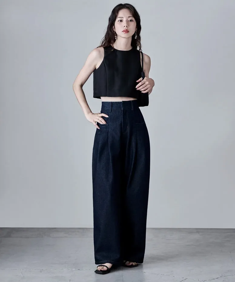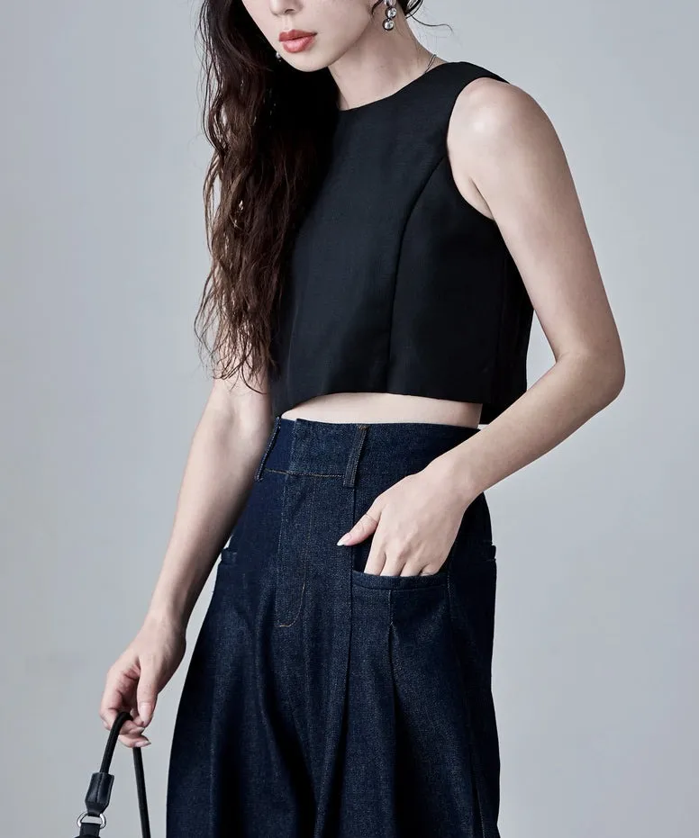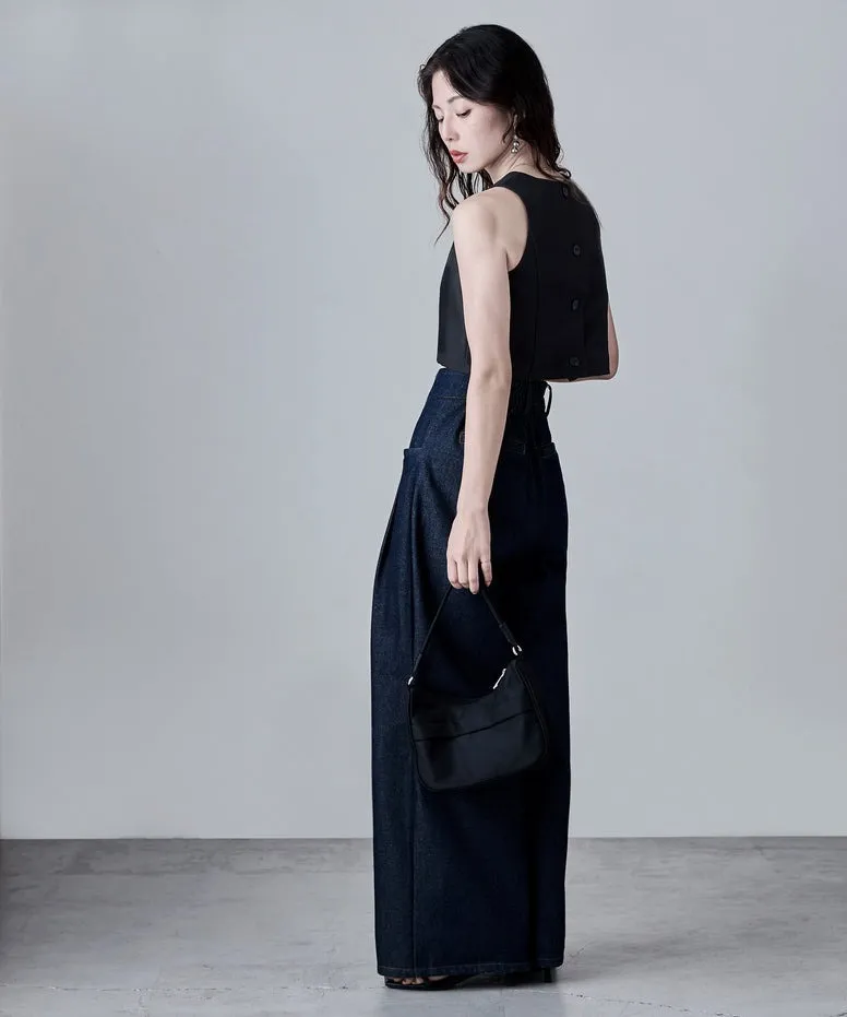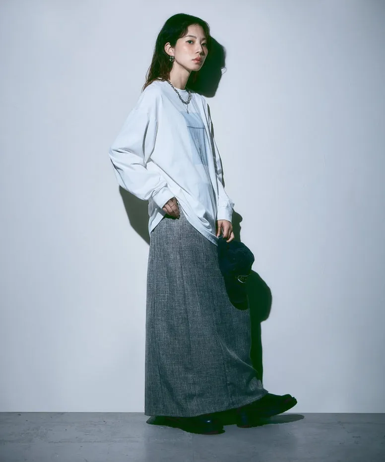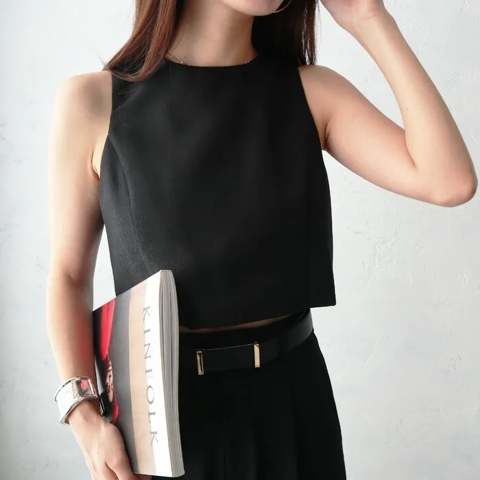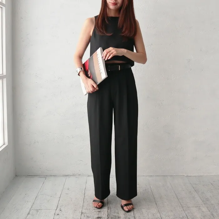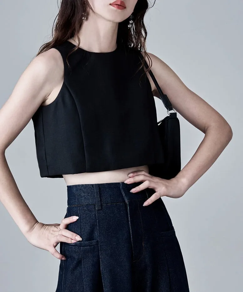可以搭配成套的麻紋路線條觸感造型背心&長裙