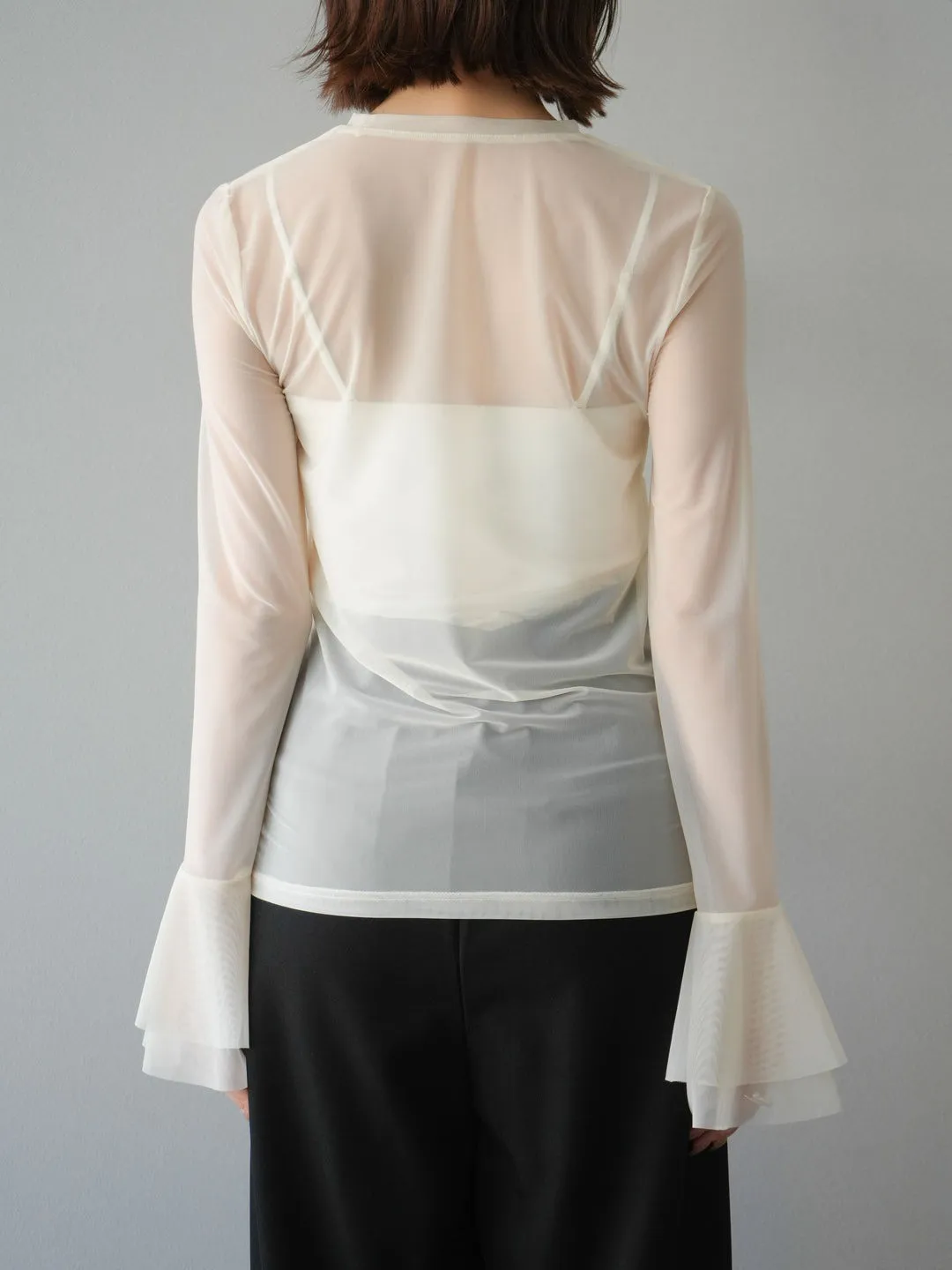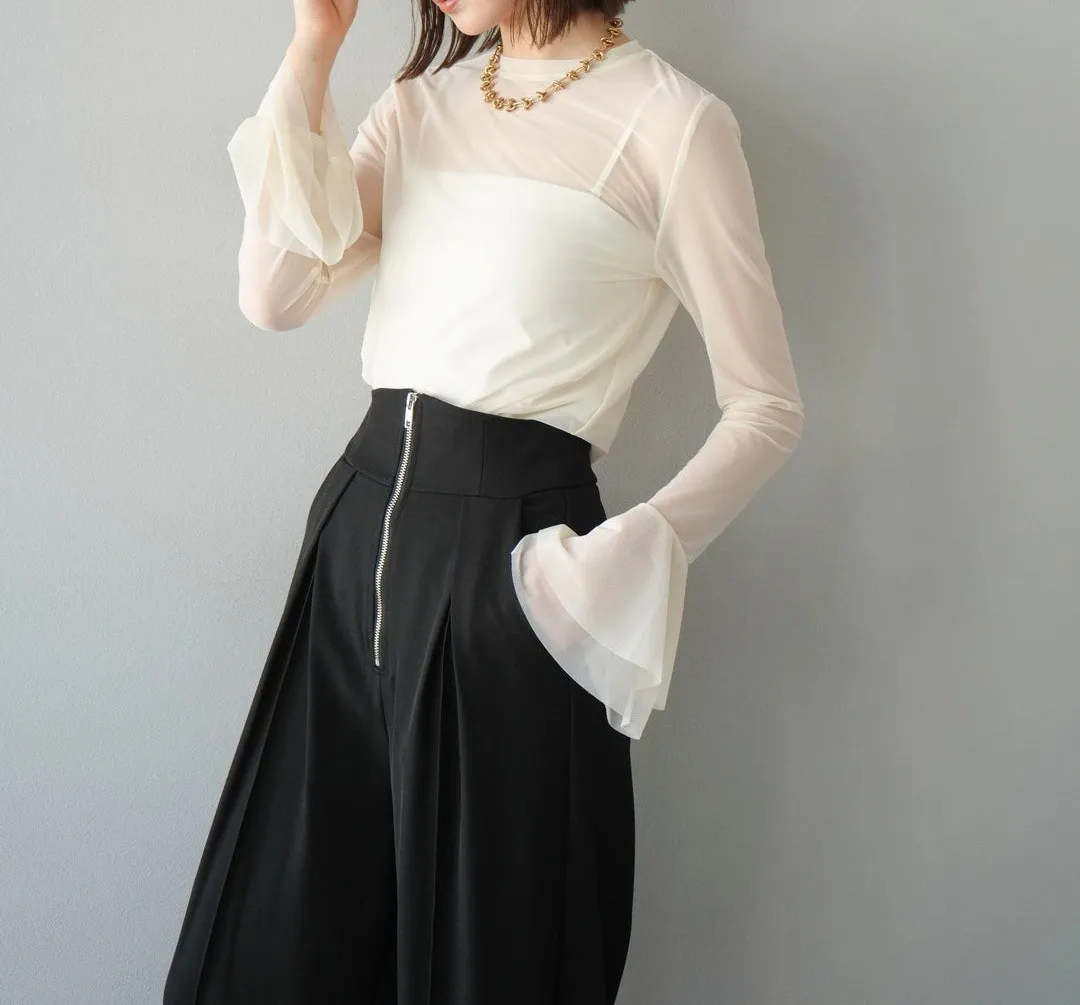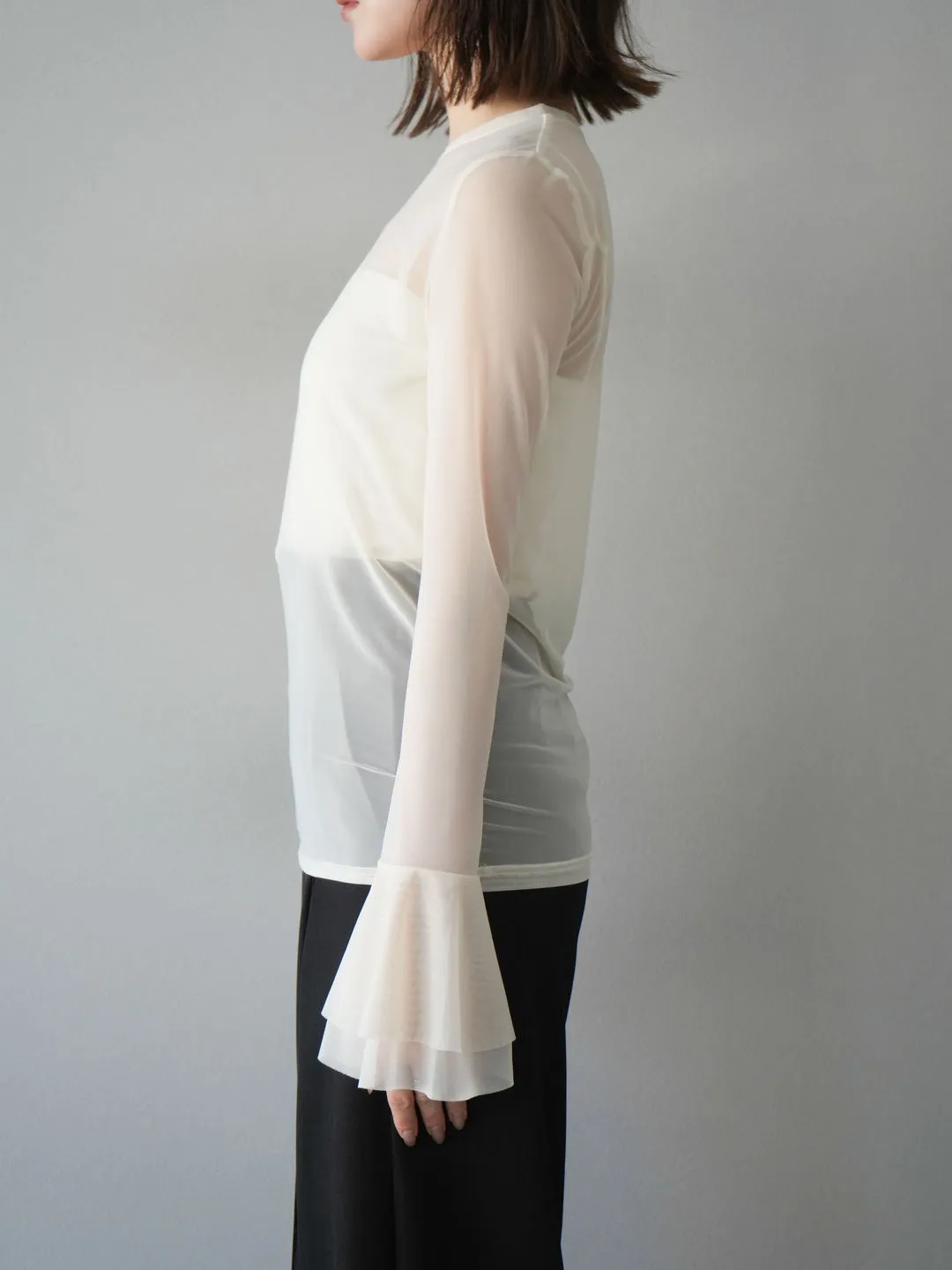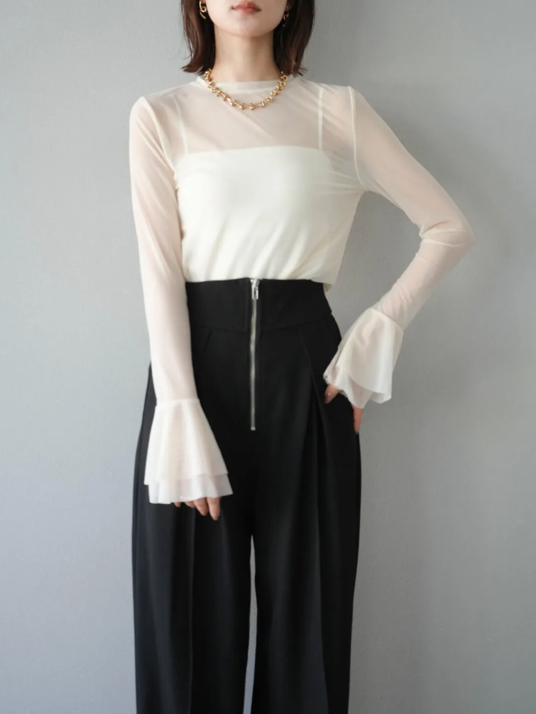 造型特色雙層荷葉寬袖透膚彈性打底衣