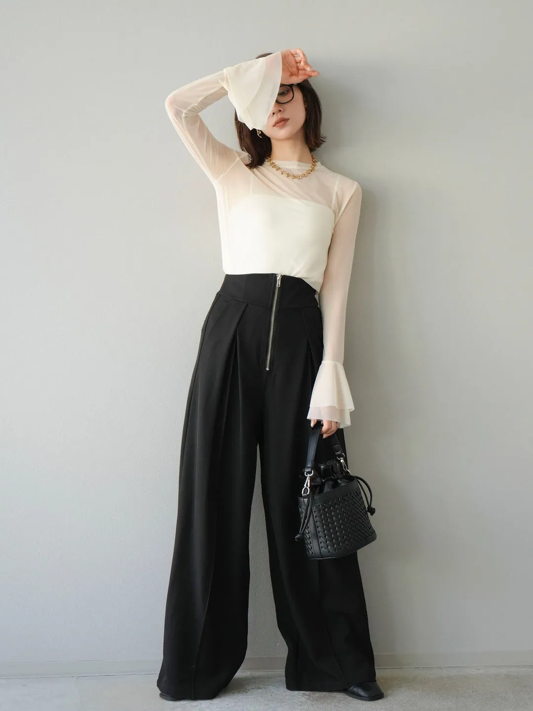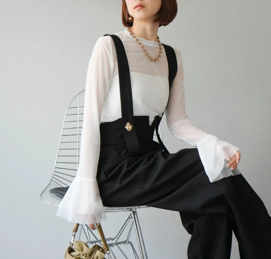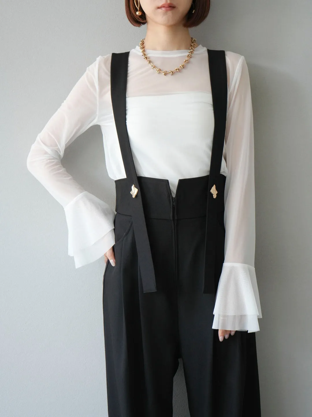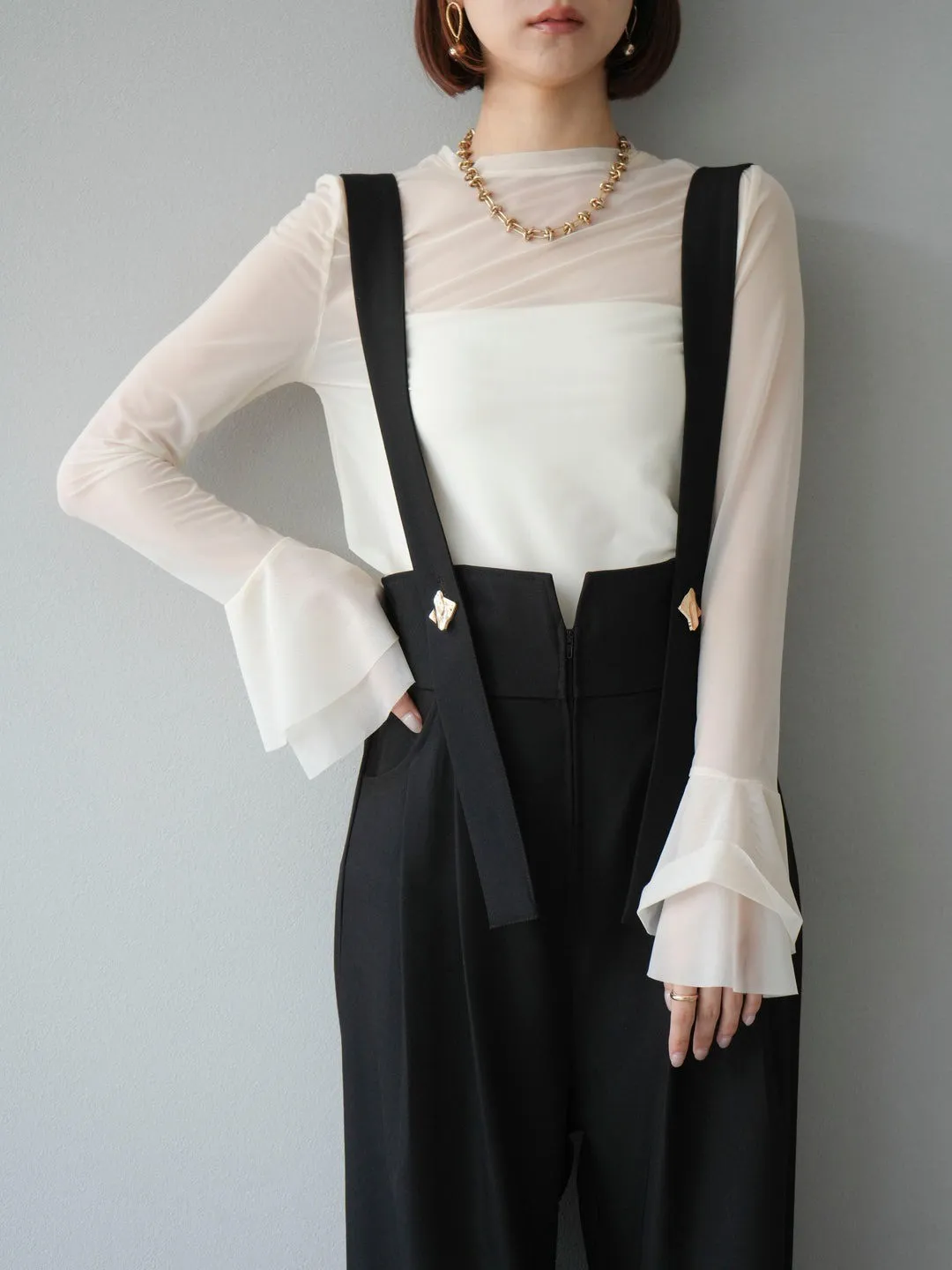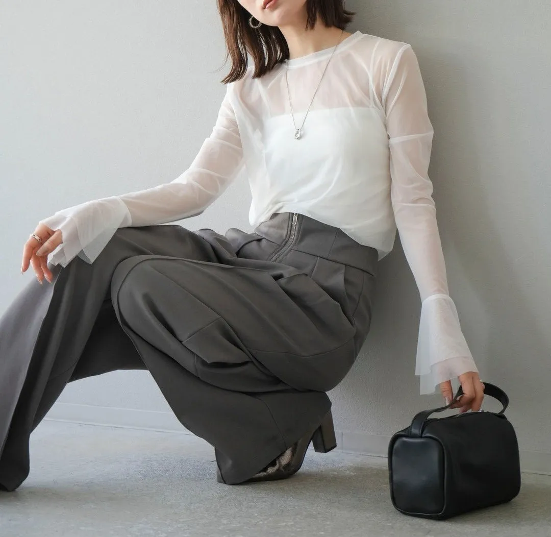 造型特色雙層荷葉寬袖透膚彈性打底衣
