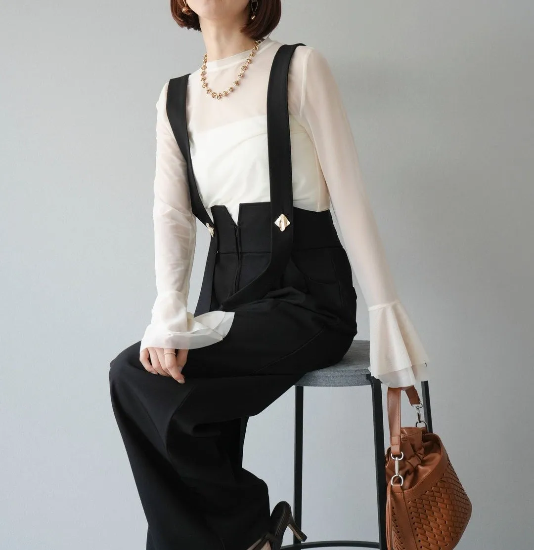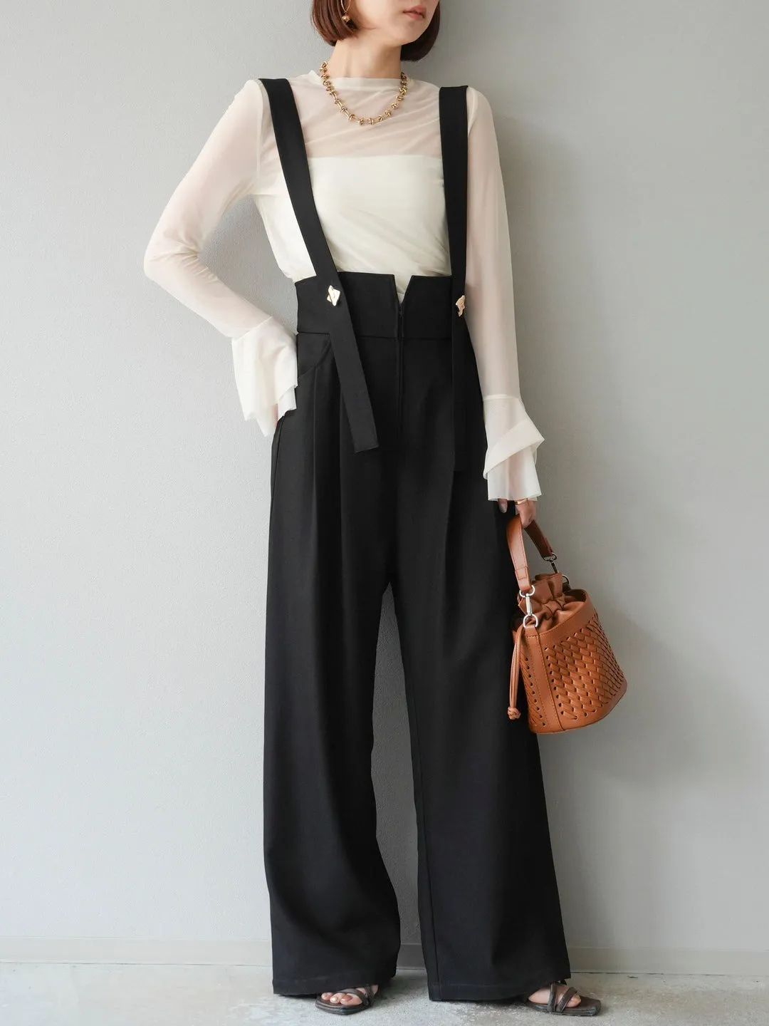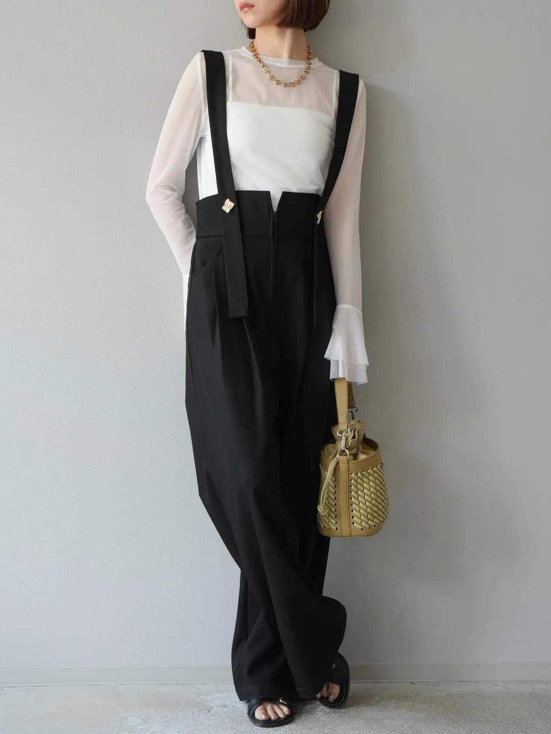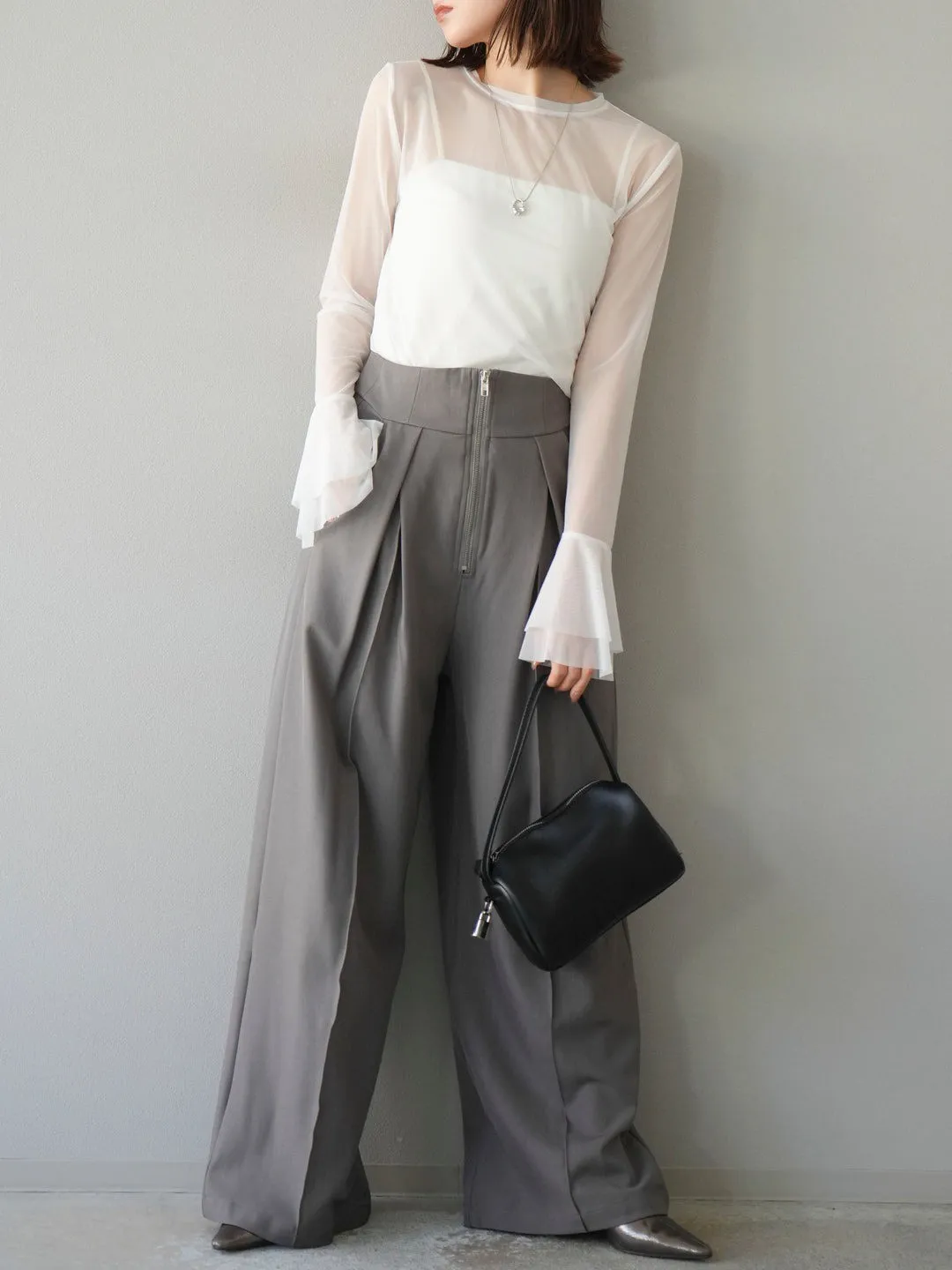 造型特色雙層荷葉寬袖透膚彈性打底衣