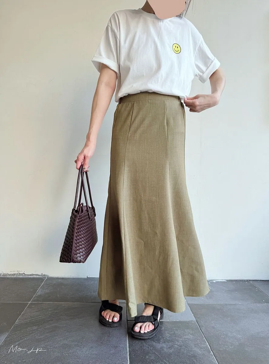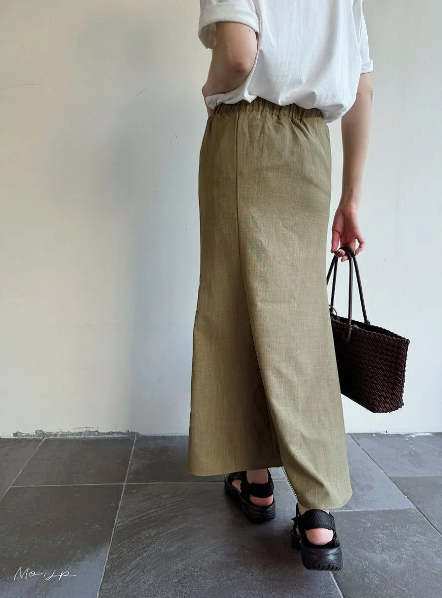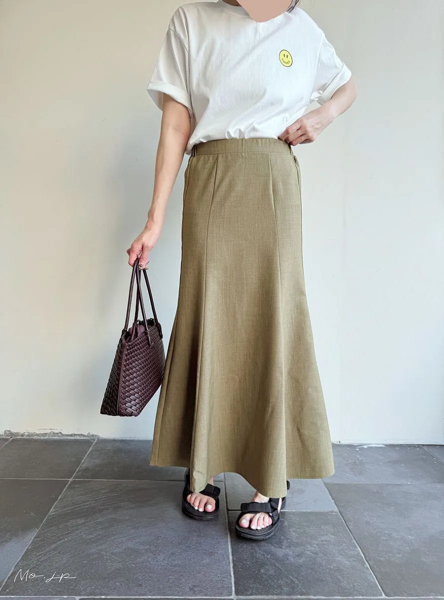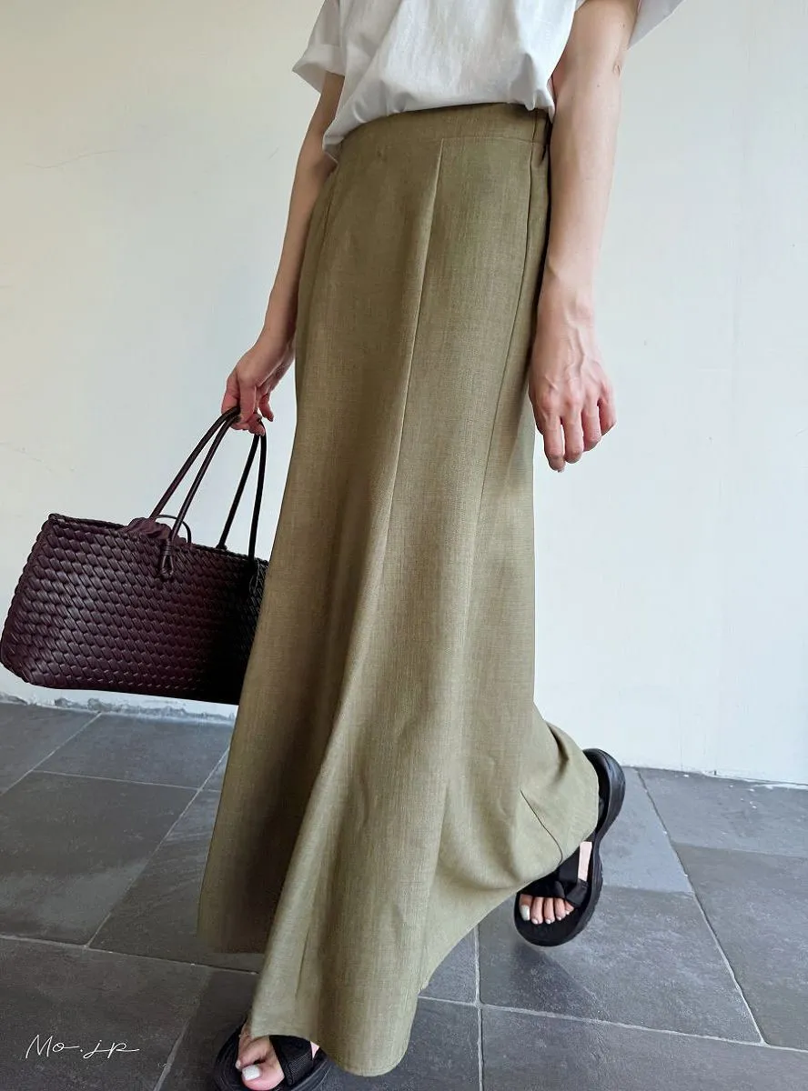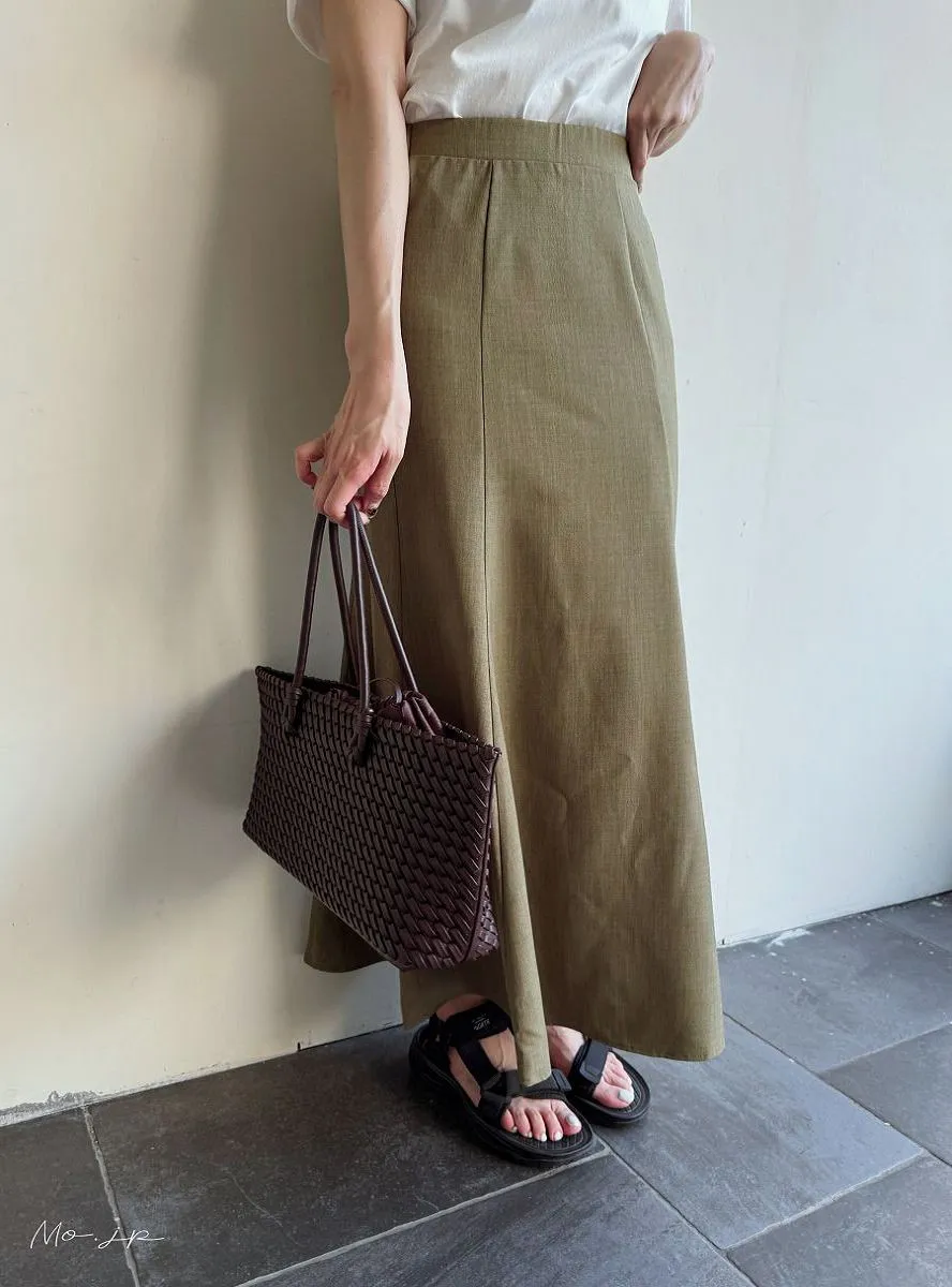 斷貨了~不然這件質感穿起來也超棒的有夠顯瘦是第一點版型修飾度整體很棒外~腰臀那邊也很修飾喔顏色好美~面料是有點麻料~夏秋都很適合喔魚尾順身+自然~腰部鬆緊~小幫覺得搭寬鬆的TEE就超好看小幫自己是搭配寬鬆的笑臉TEE不管是內扎或者外放都好看如果你是氣質路線~搭個針織~完全OK喔腰部鬆緊~穿搭舒服因為專櫃斷貨了~直接特惠喔3色~數量限定燕麥米-顏色最淺奶茶駝-中間色調卡其軍綠-小幫著用色