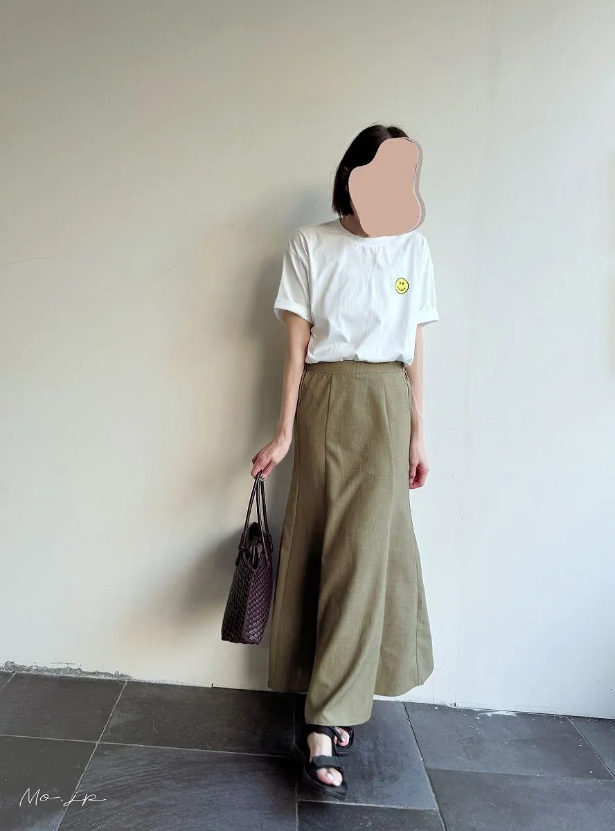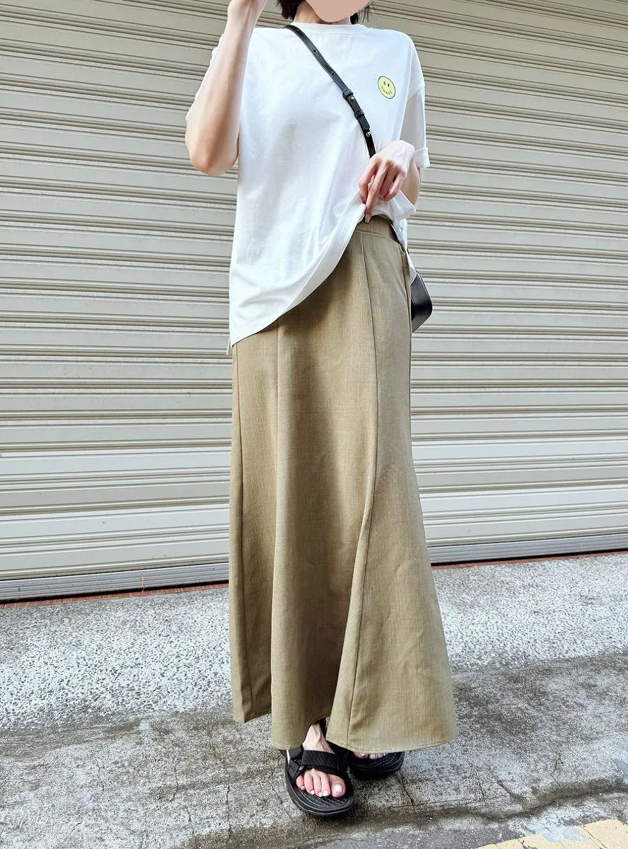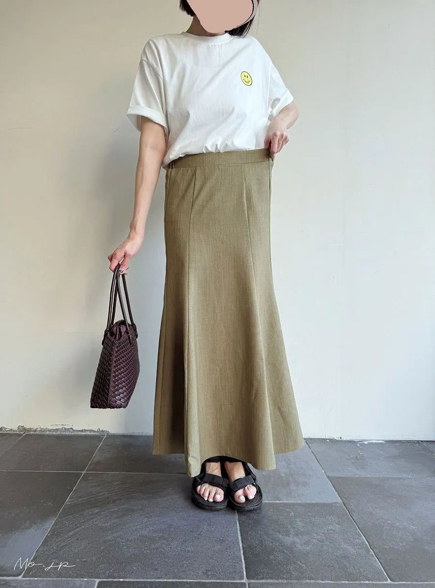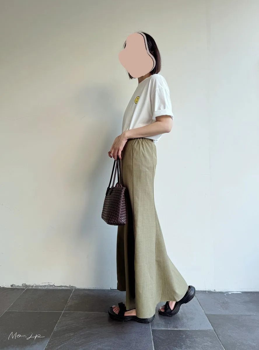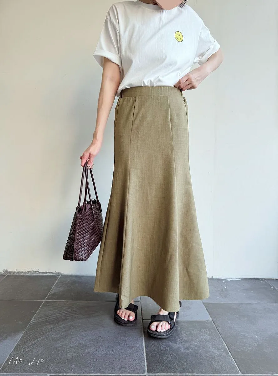 斷貨了~不然這件質感穿起來也超棒的有夠顯瘦是第一點版型修飾度整體很棒外~腰臀那邊也很修飾喔顏色好美~面料是有點麻料~夏秋都很適合喔魚尾順身+自然~腰部鬆緊~小幫覺得搭寬鬆的TEE就超好看小幫自己是搭配寬鬆的笑臉TEE不管是內扎或者外放都好看如果你是氣質路線~搭個針織~完全OK喔腰部鬆緊~穿搭舒服因為專櫃斷貨了~直接特惠喔3色~數量限定燕麥米-顏色最淺奶茶駝-中間色調卡其軍綠-小幫著用色