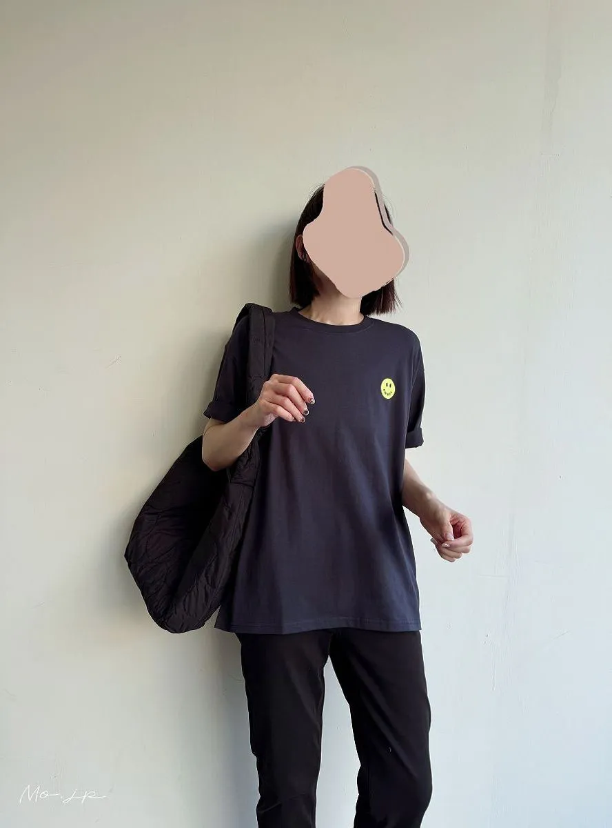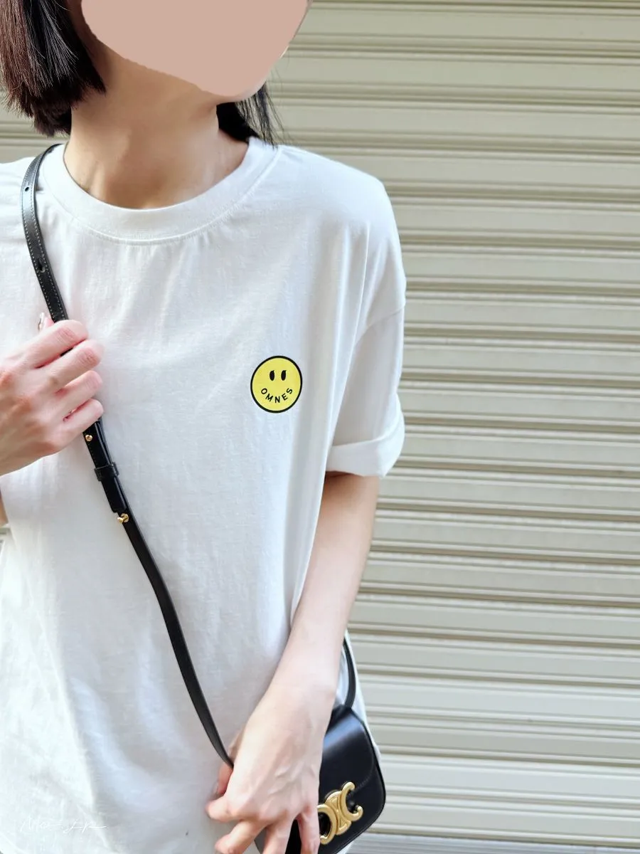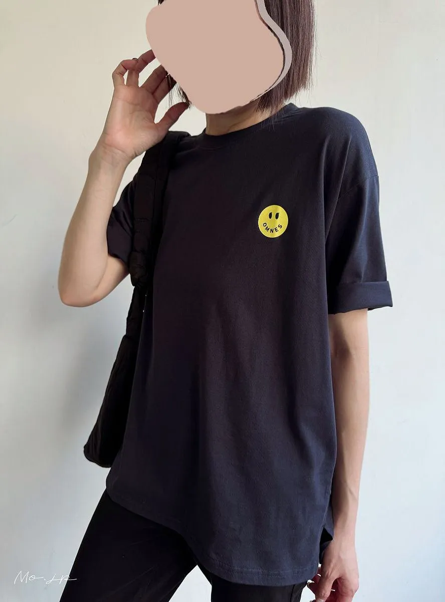 質感非常好的休閒棉TEE版型寬鬆可愛 薄料的微挺棉手感舒服 寬鬆舒適但也不會說超級大件喔!!笑臉不得了穿起來簡單又可愛~有一種小小的LOGO感 如果喜歡基本耐看色調白跟深藍 小幫分別搭配了裙子跟休閒褲~都很適合喔2色