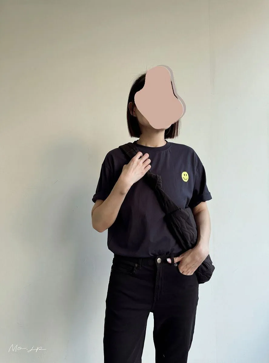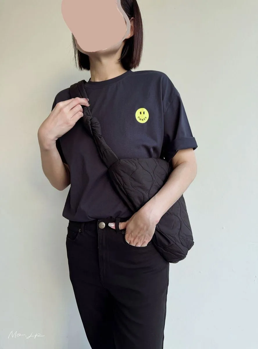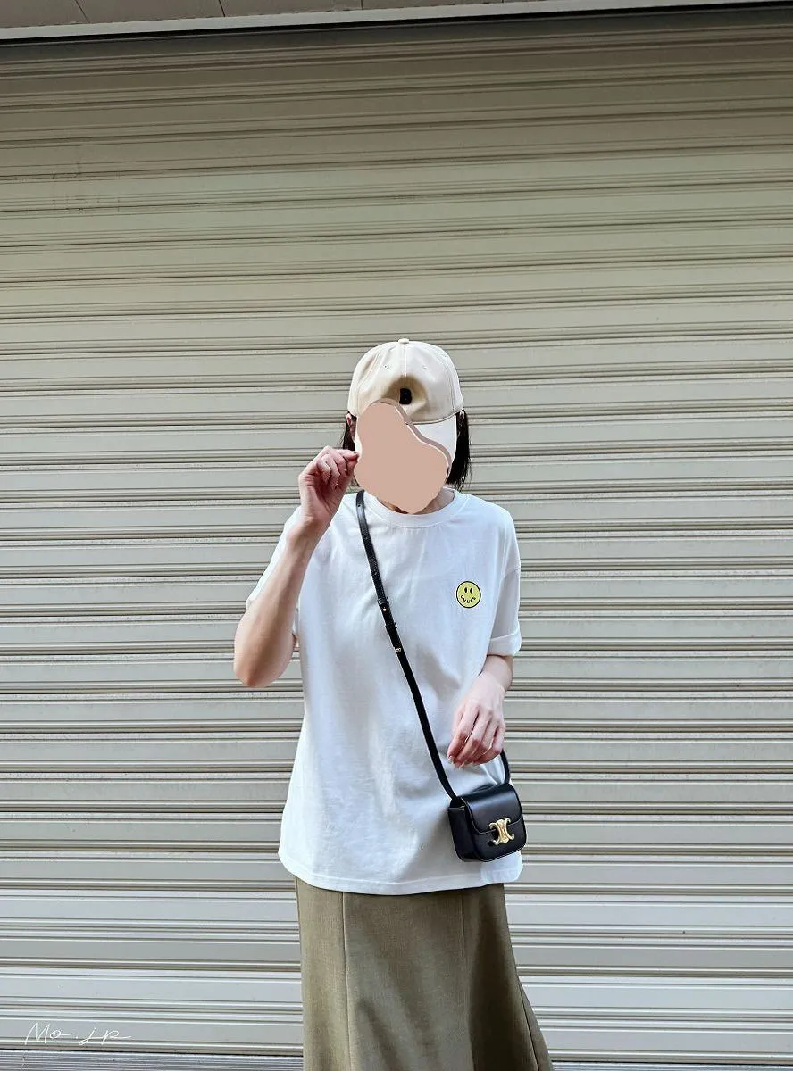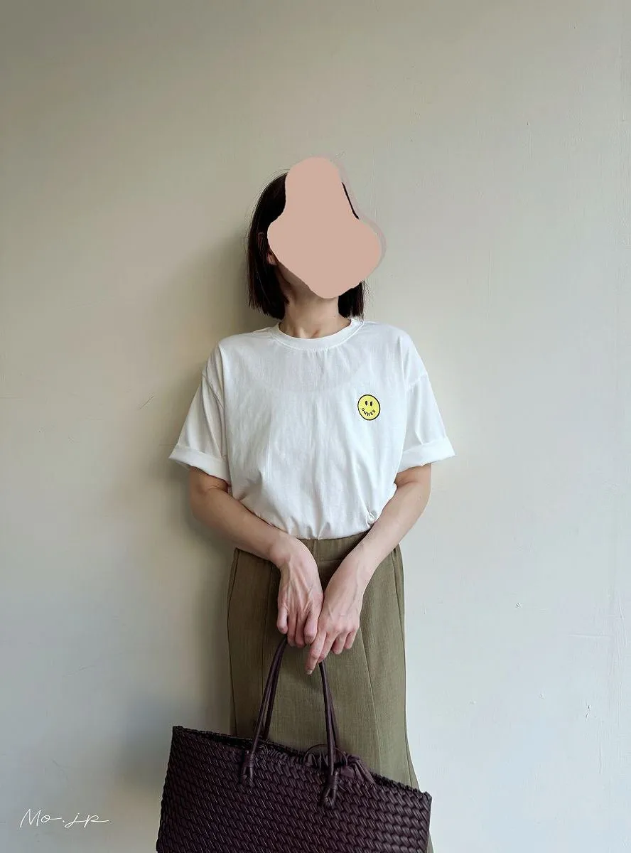 質感非常好的休閒棉TEE版型寬鬆可愛 薄料的微挺棉手感舒服 寬鬆舒適但也不會說超級大件喔!!笑臉不得了穿起來簡單又可愛~有一種小小的LOGO感 如果喜歡基本耐看色調白跟深藍 小幫分別搭配了裙子跟休閒褲~都很適合喔2色