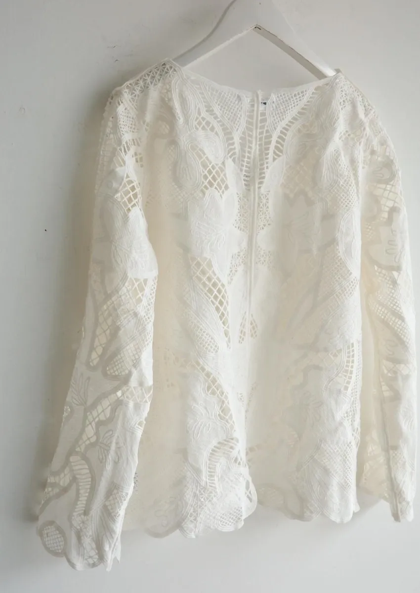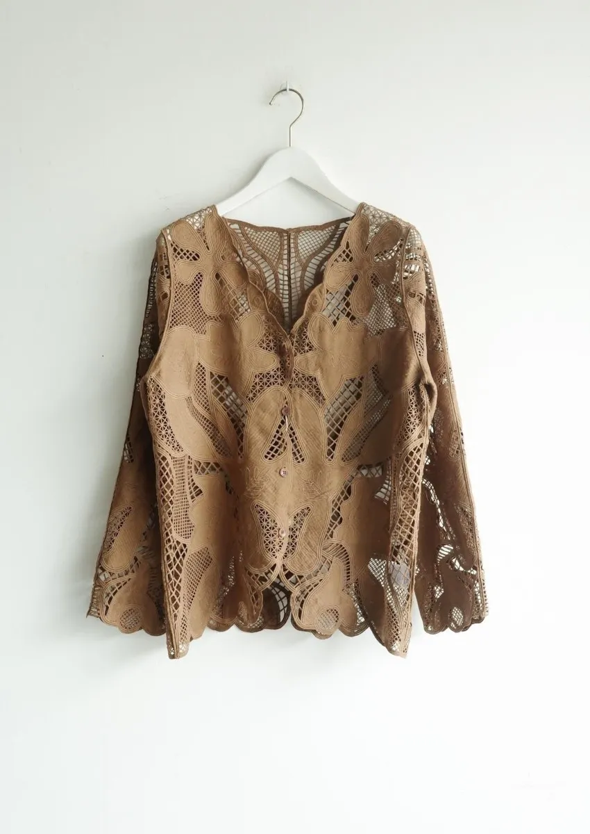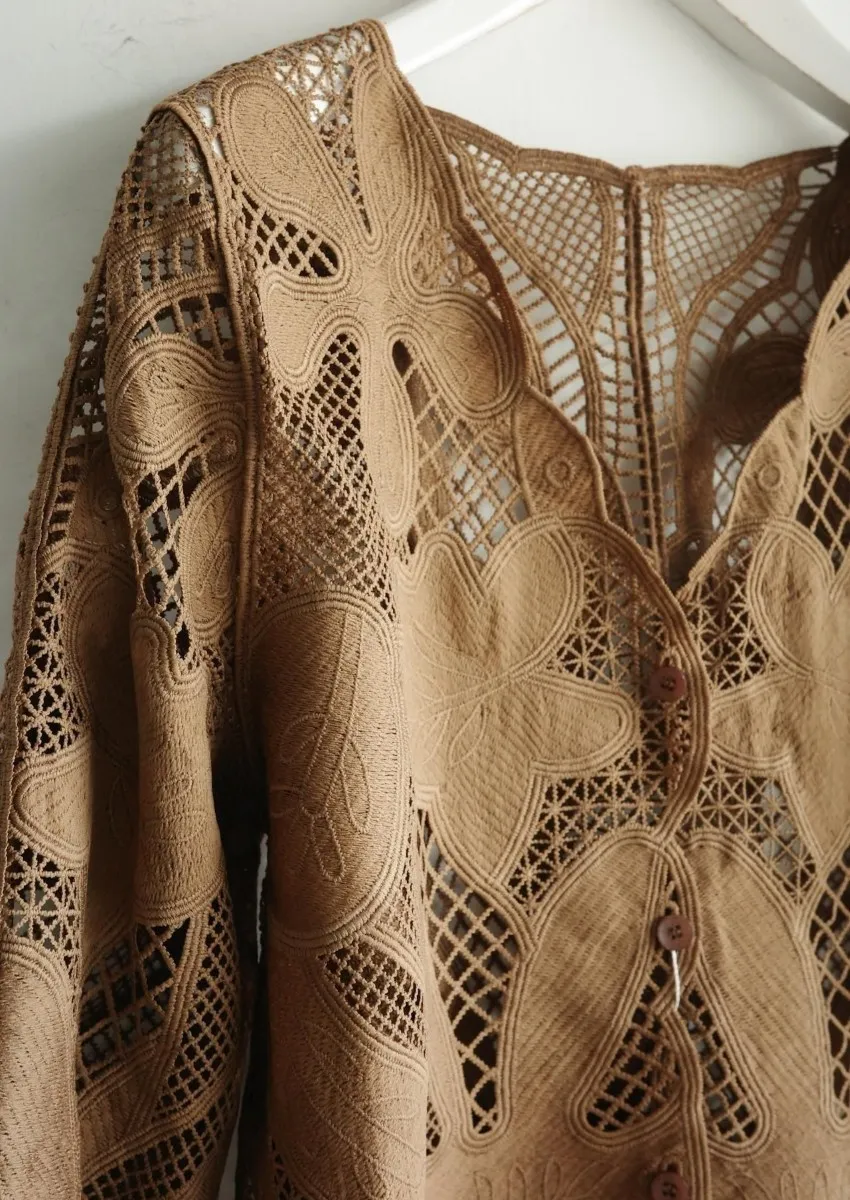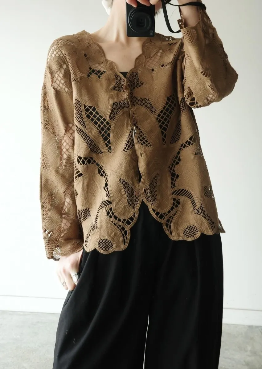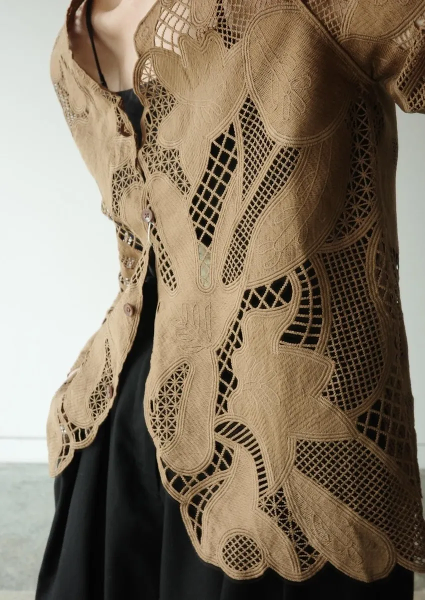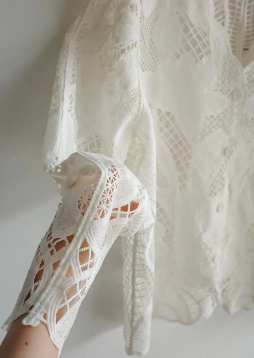 人氣商品~春季再入荷注目棉布蕾絲拼接刺繡搭配局部透視洞洞整體層次立體感 帶一點華麗感的氛圍輕盈涼爽薄款材質特色強烈的罩衫外套但是搭配起來一點也不困難喜歡日系森林感層次造型女孩或是想要簡單穿搭增加小亮點這款推推~~~特別喜歡一致性同色調的鈕扣設計邊緣弧形花朵般的滾邊精緻度100分3色