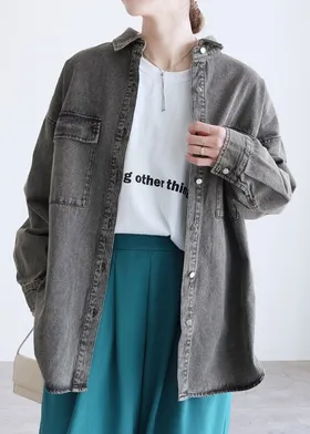 胸前掀蓋的大口袋的設計~搭配圓圓的小銀釦點綴~