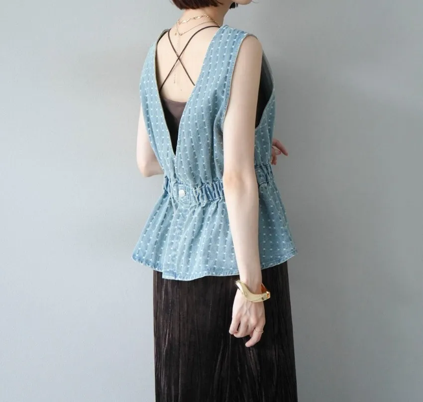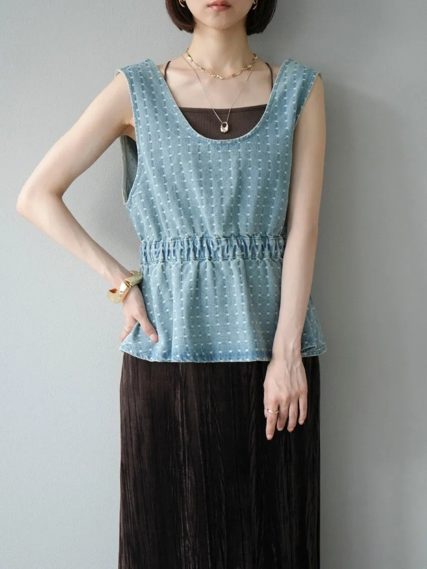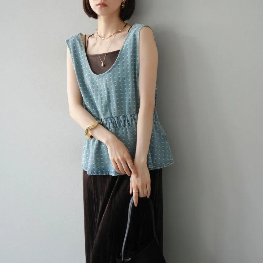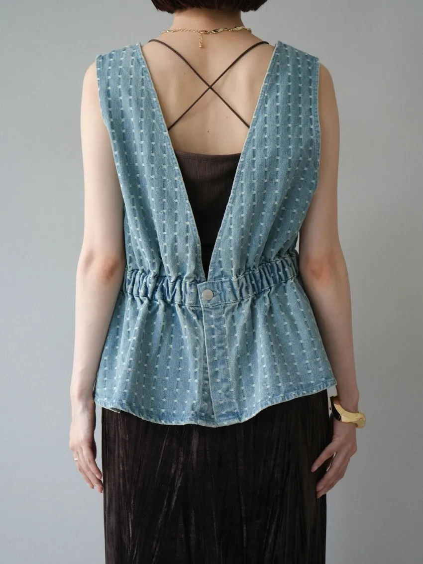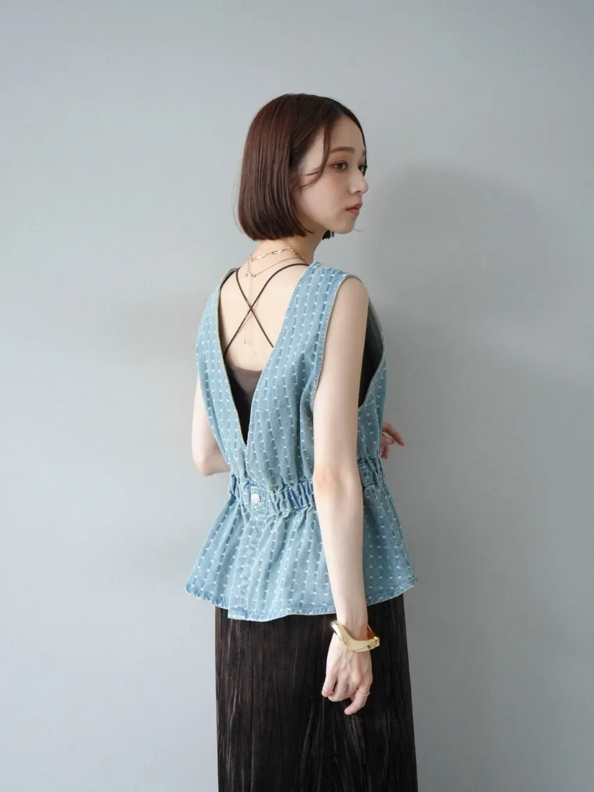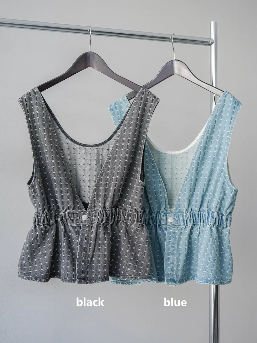 立體小點點刺繡造型2WAY單寧牛仔造型背心