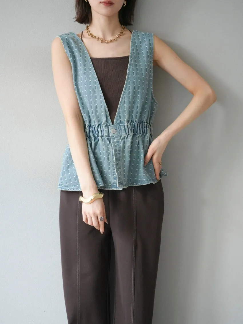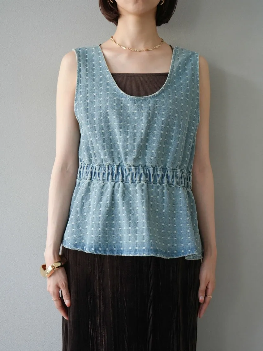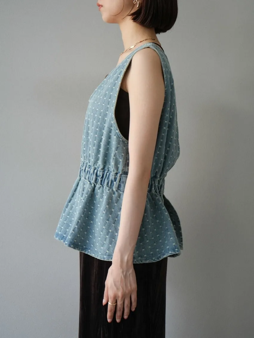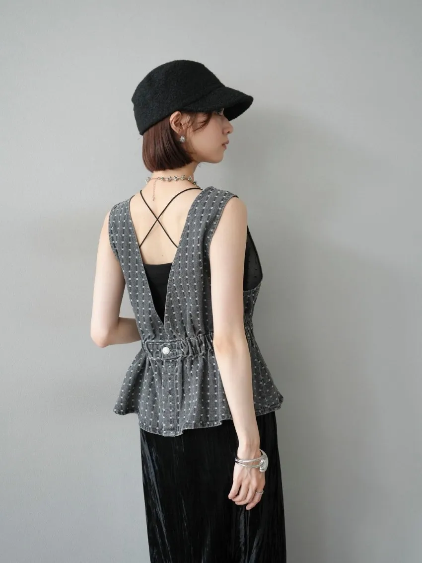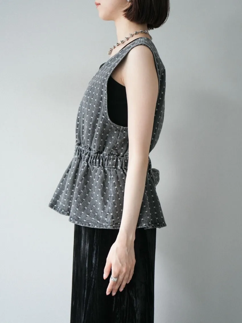 立體小點點刺繡造型2WAY單寧牛仔造型背心