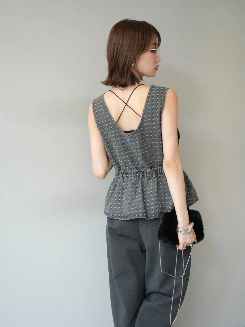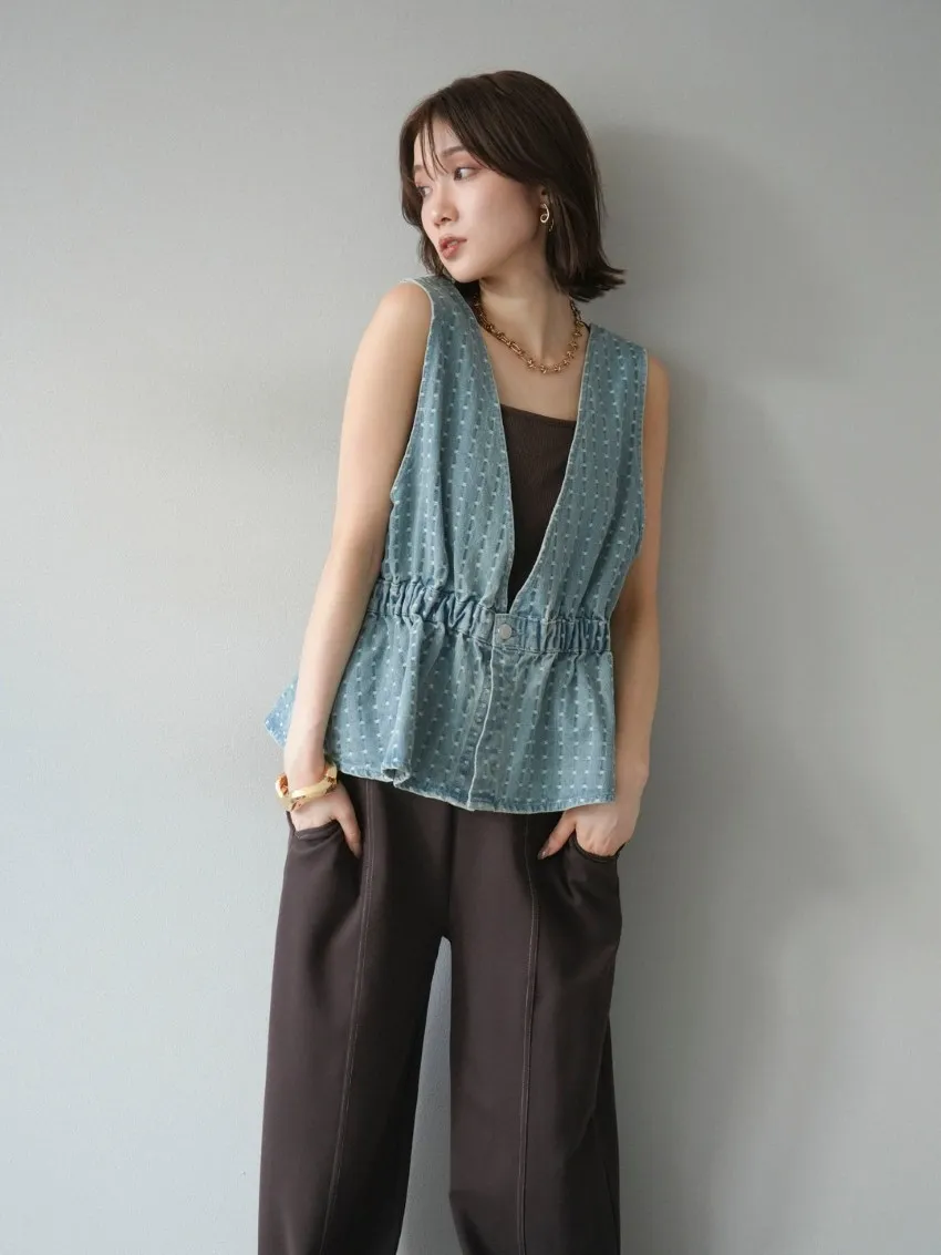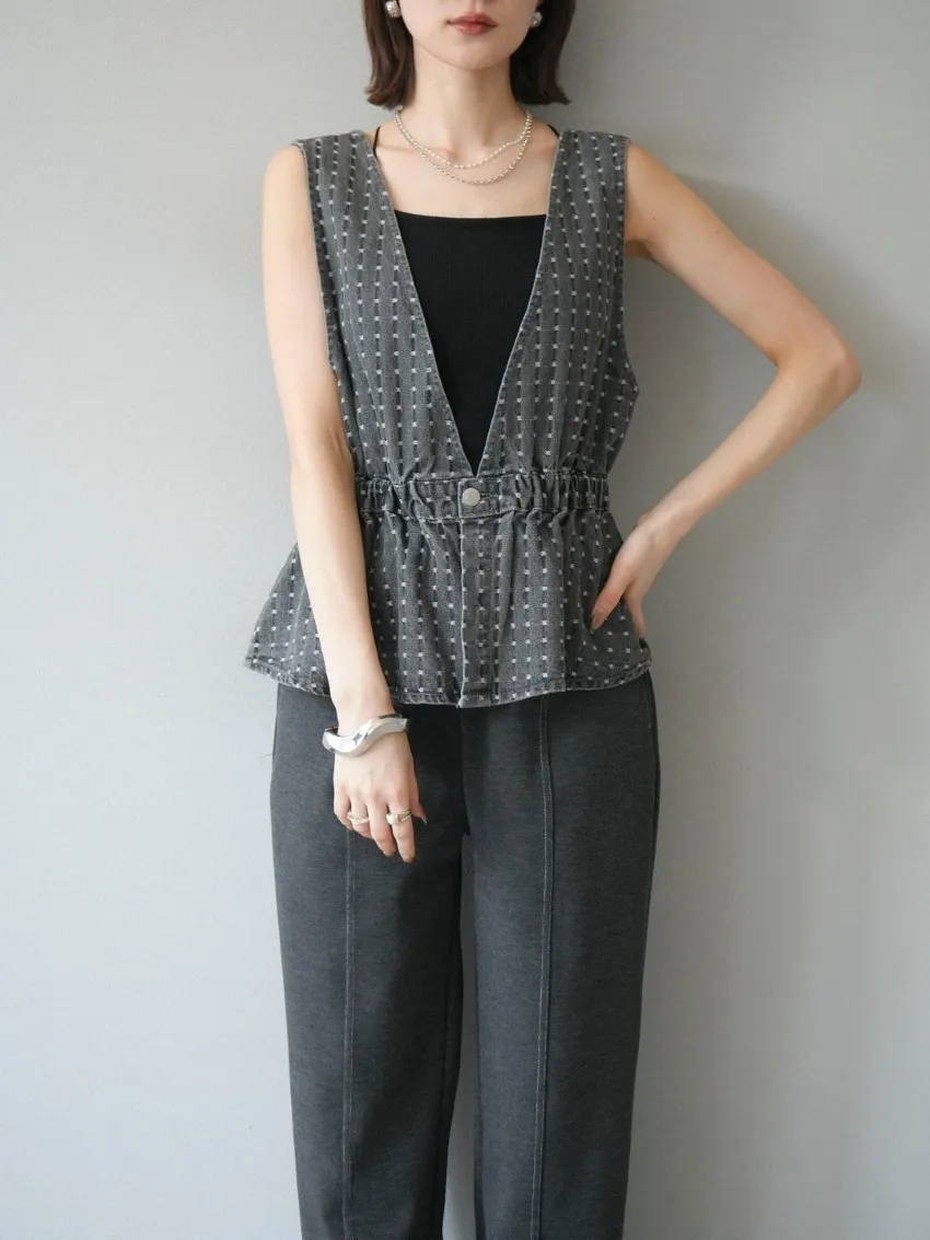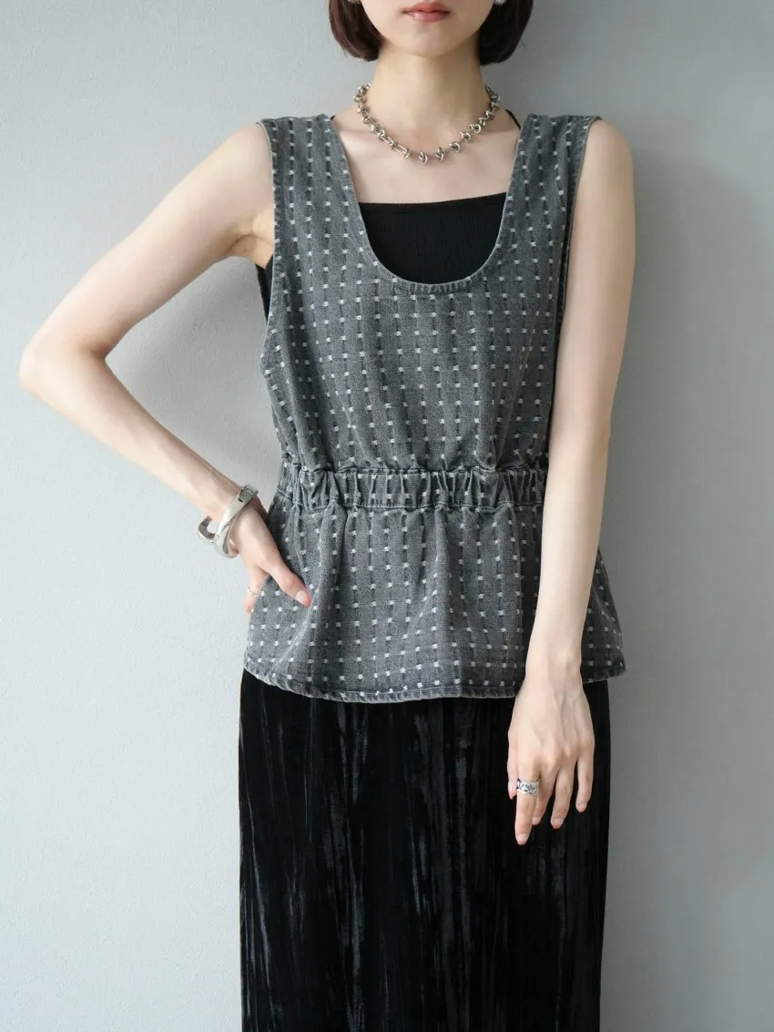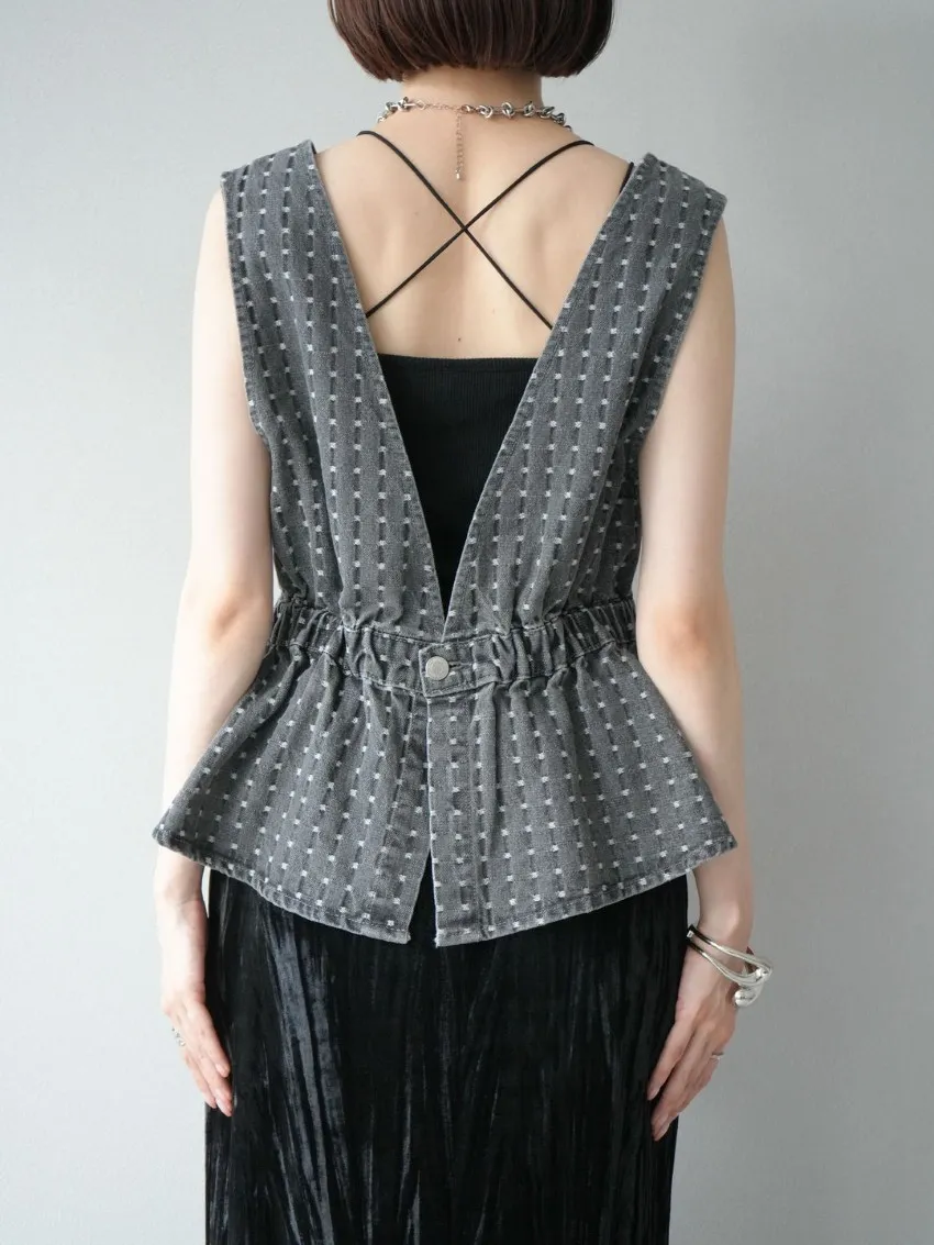 立體小點點刺繡造型2WAY單寧牛仔造型背心