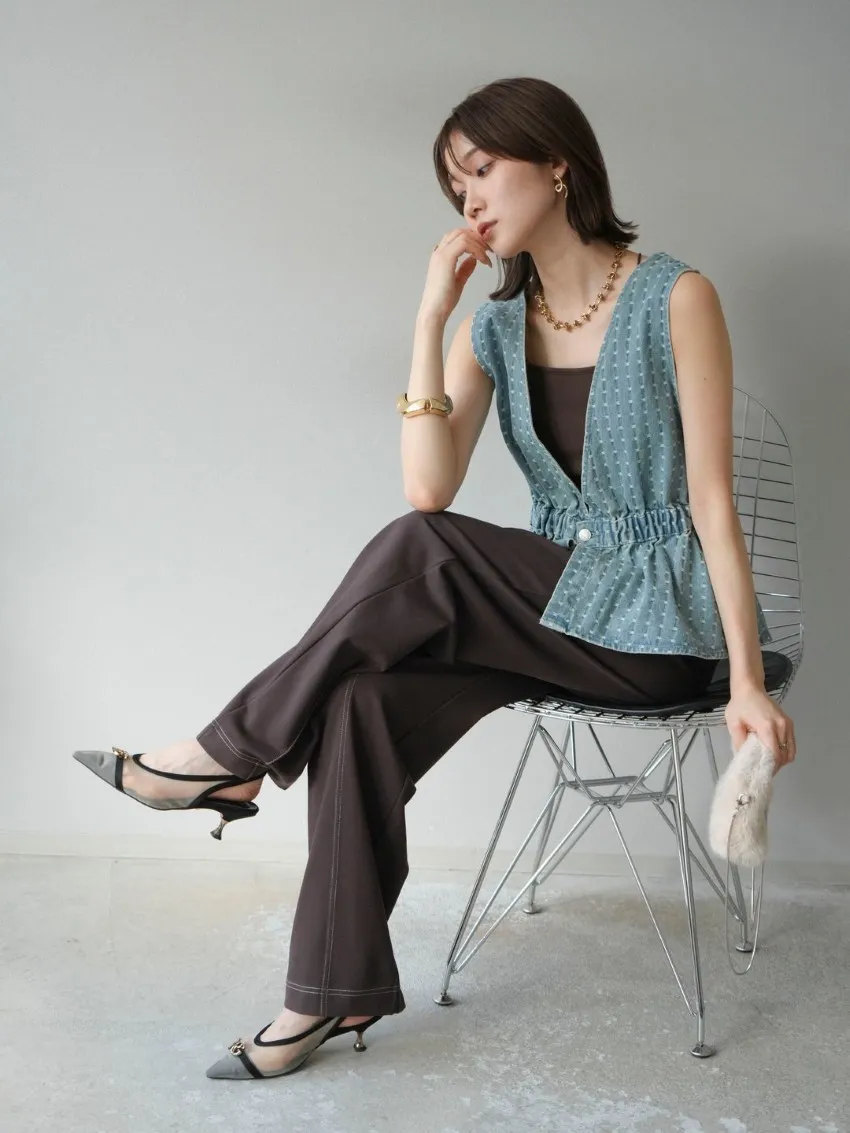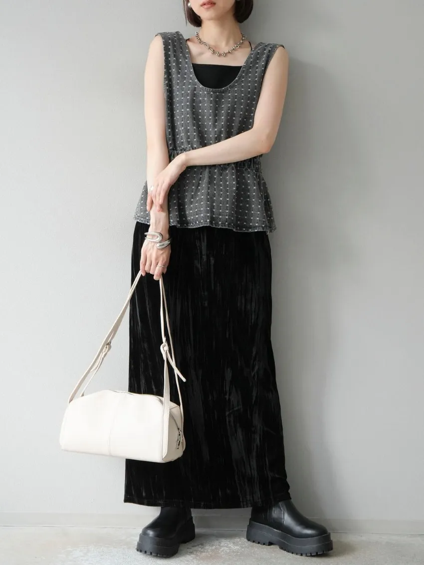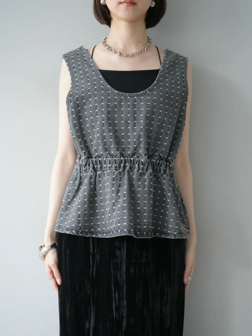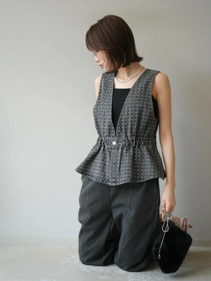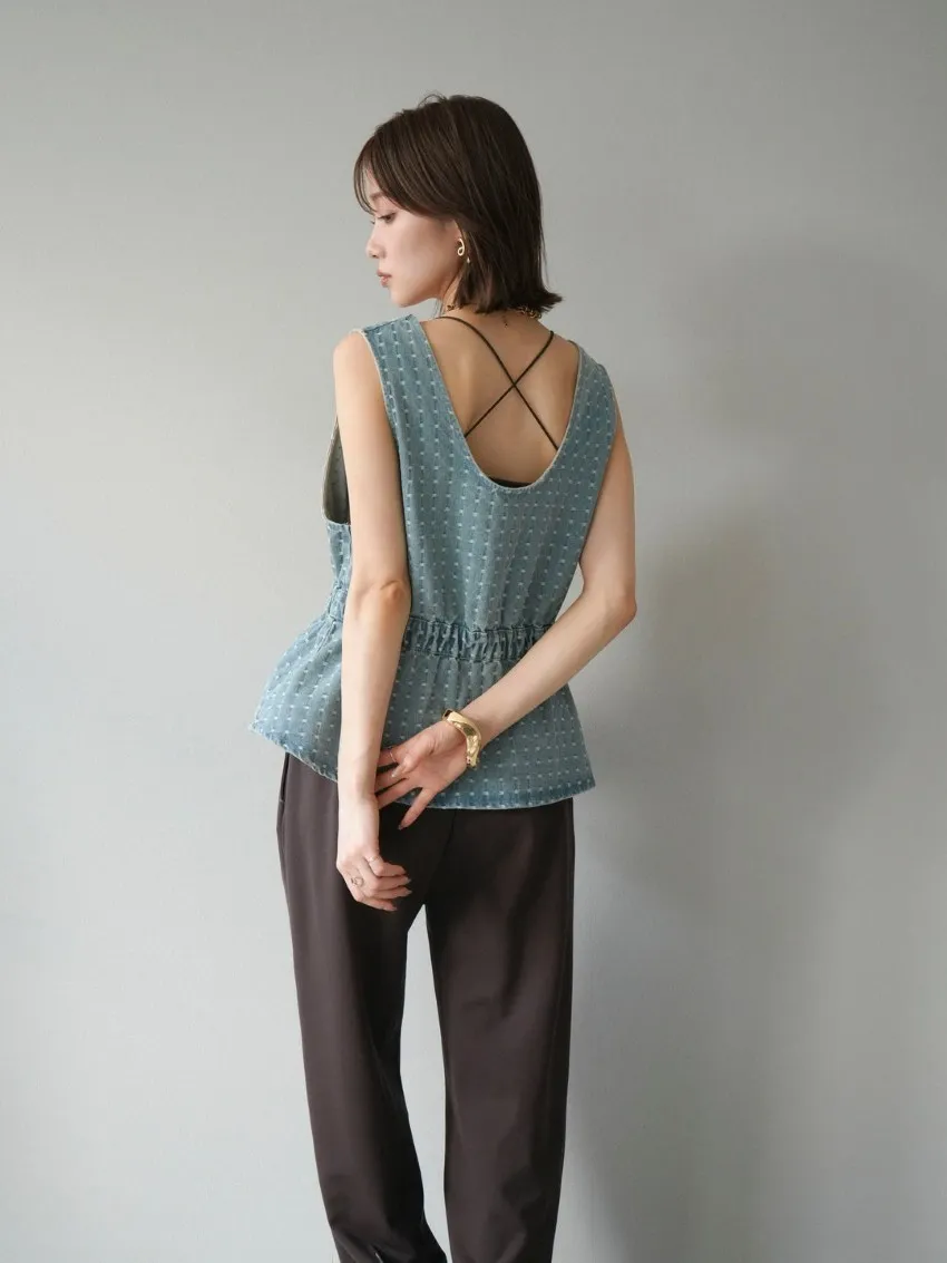 立體小點點刺繡造型2WAY單寧牛仔造型背心