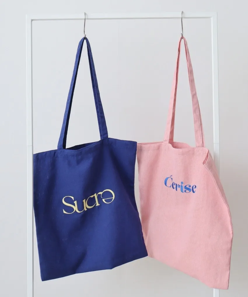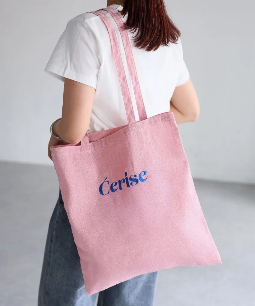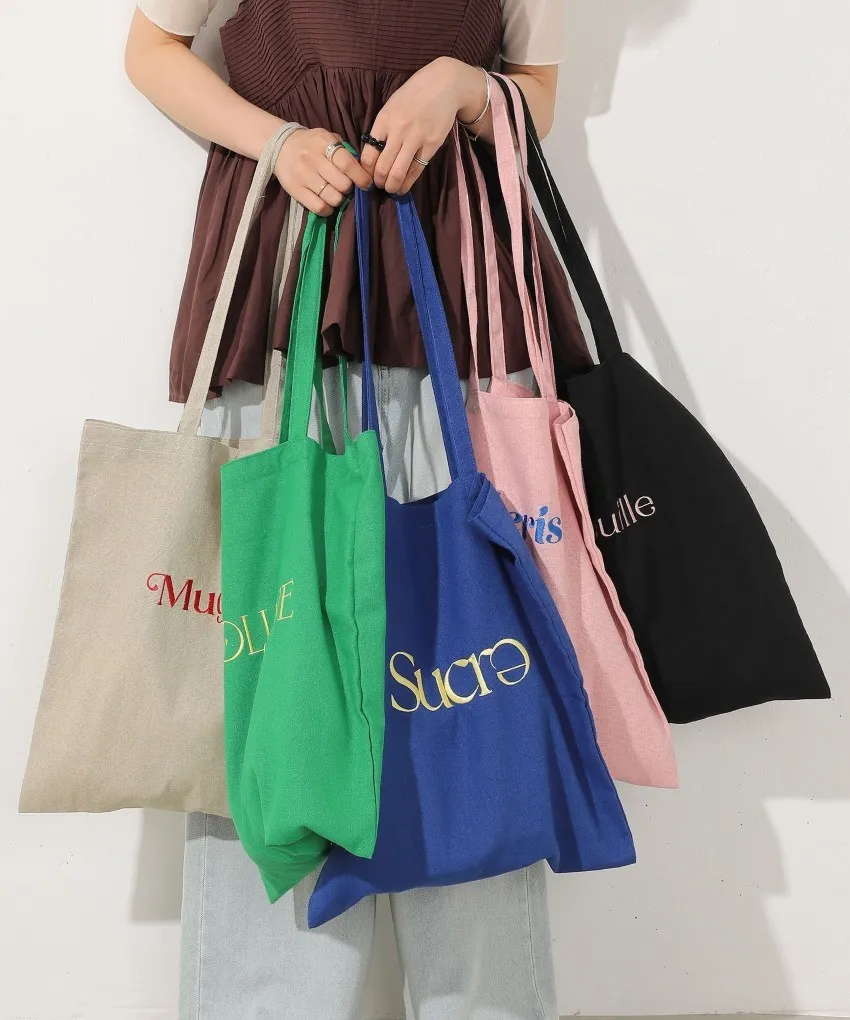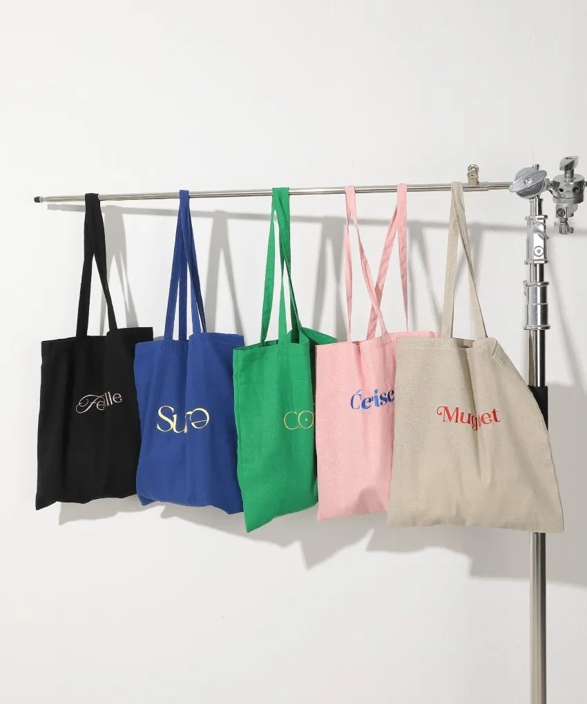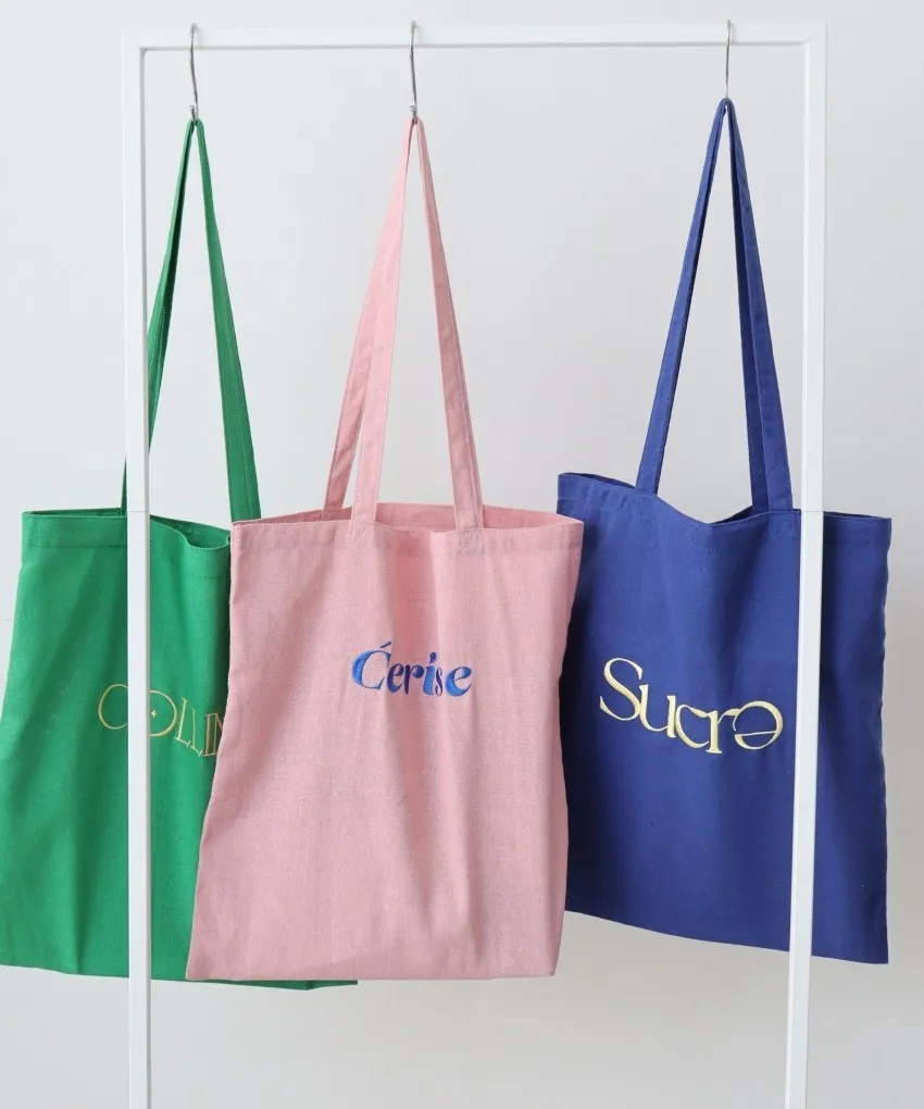 色彩刺繡字母棉布托特包