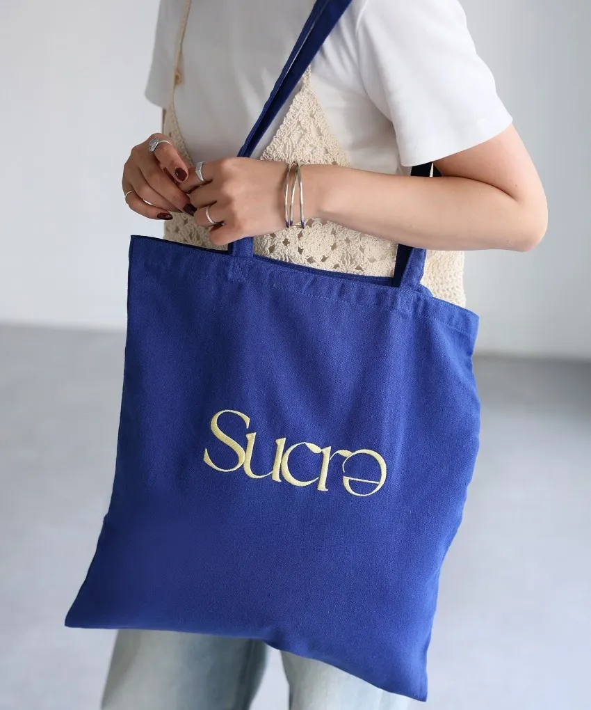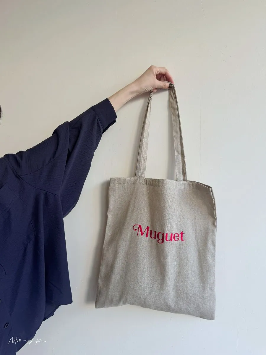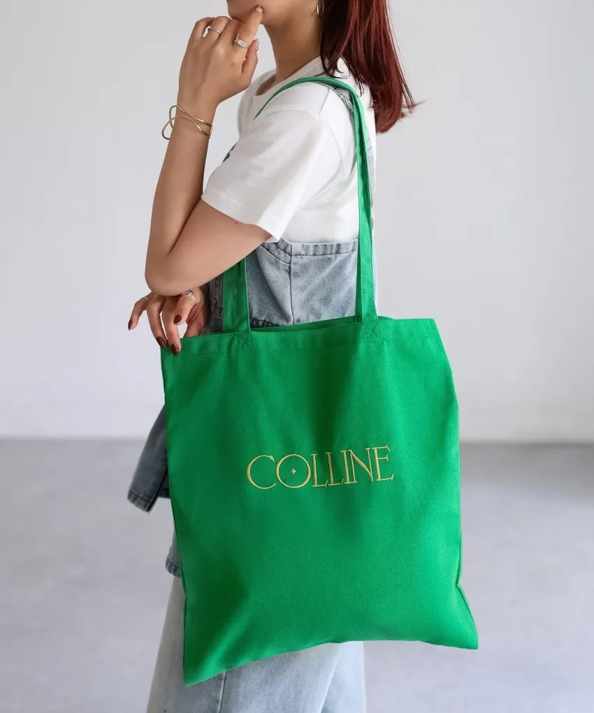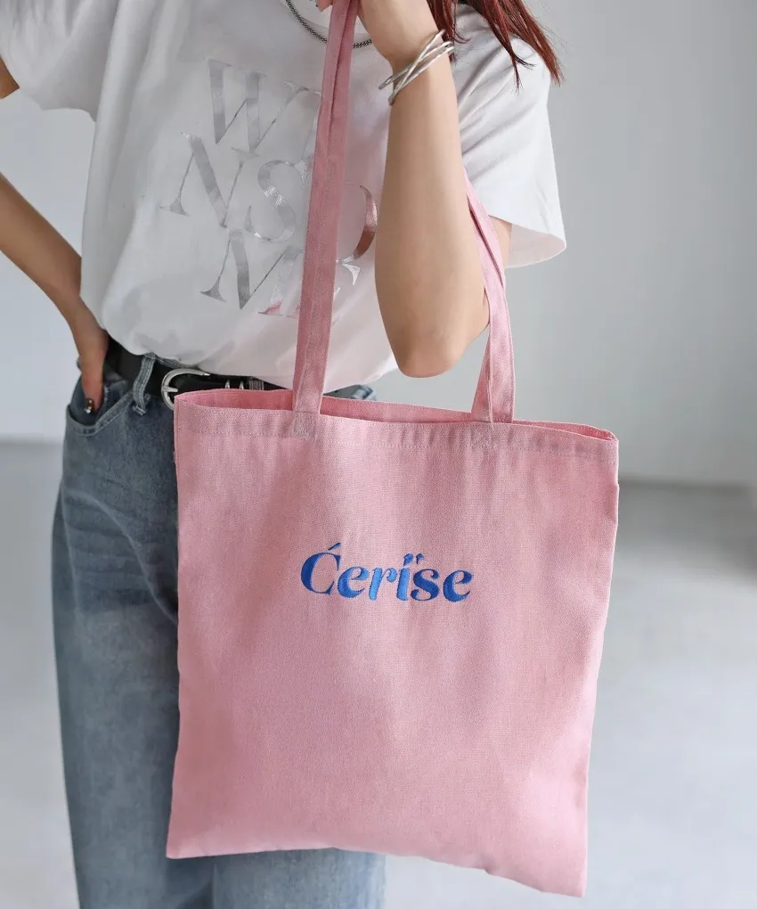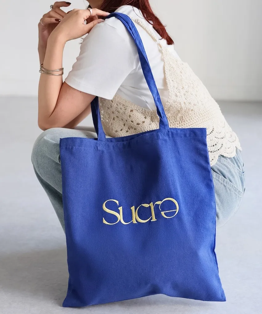 色彩刺繡字母棉布托特包