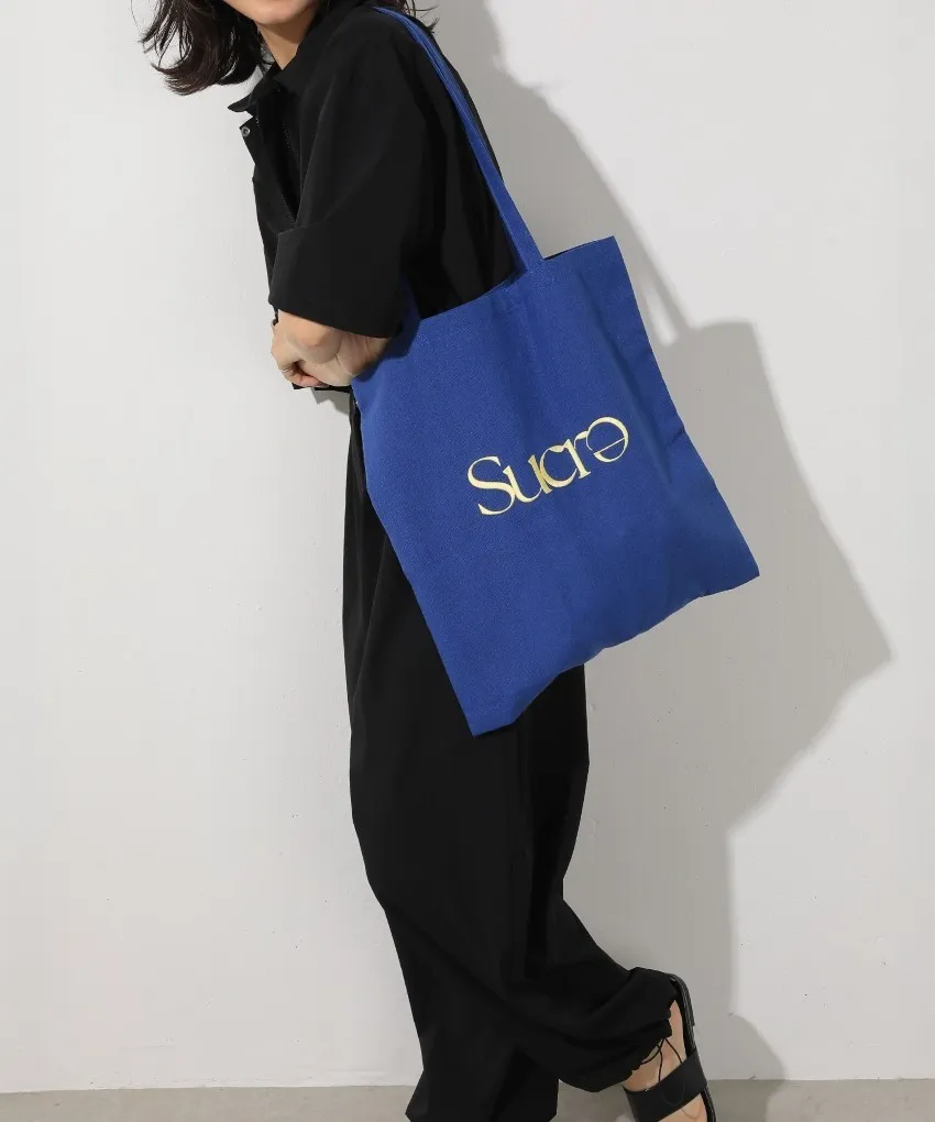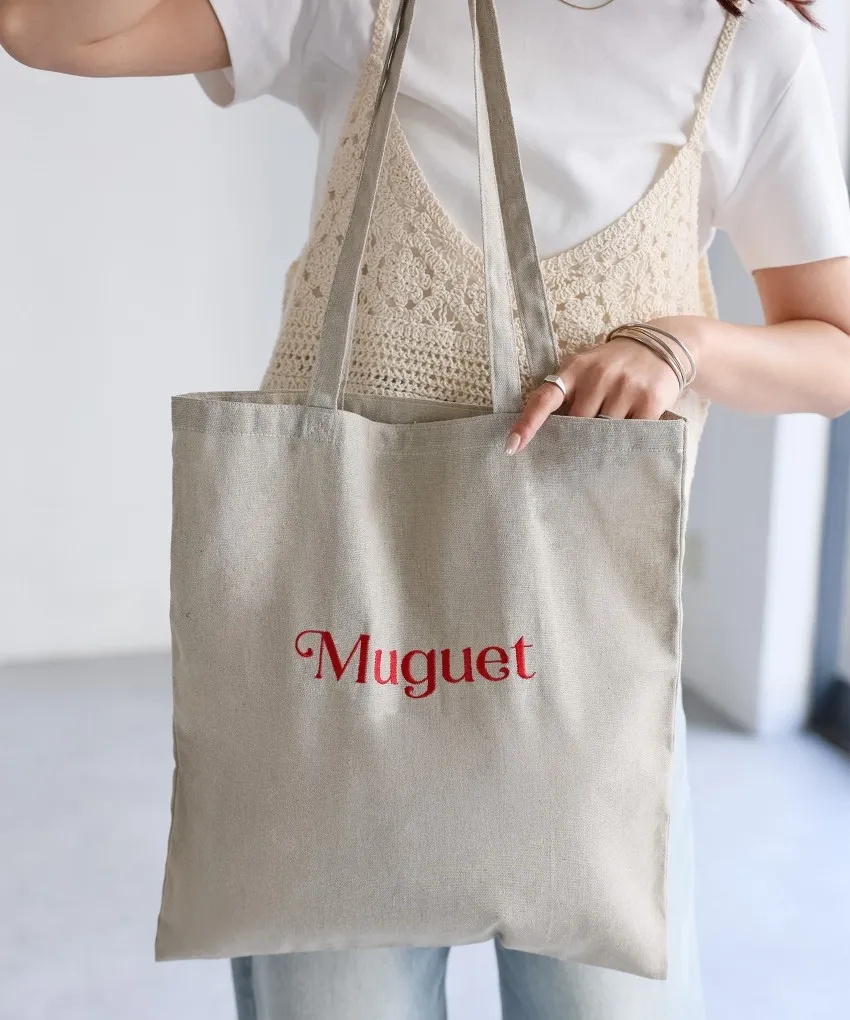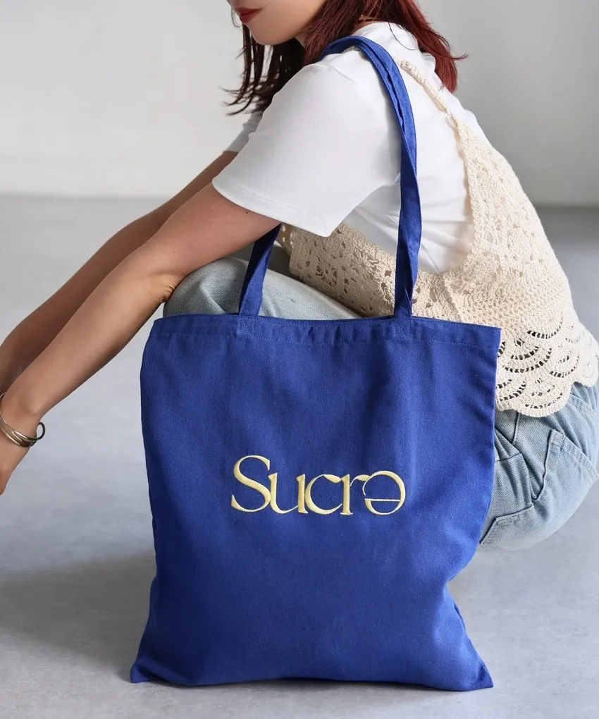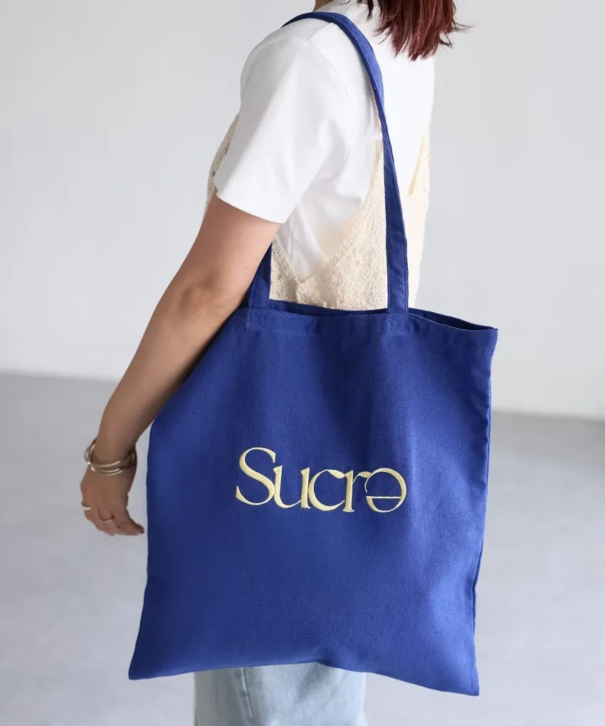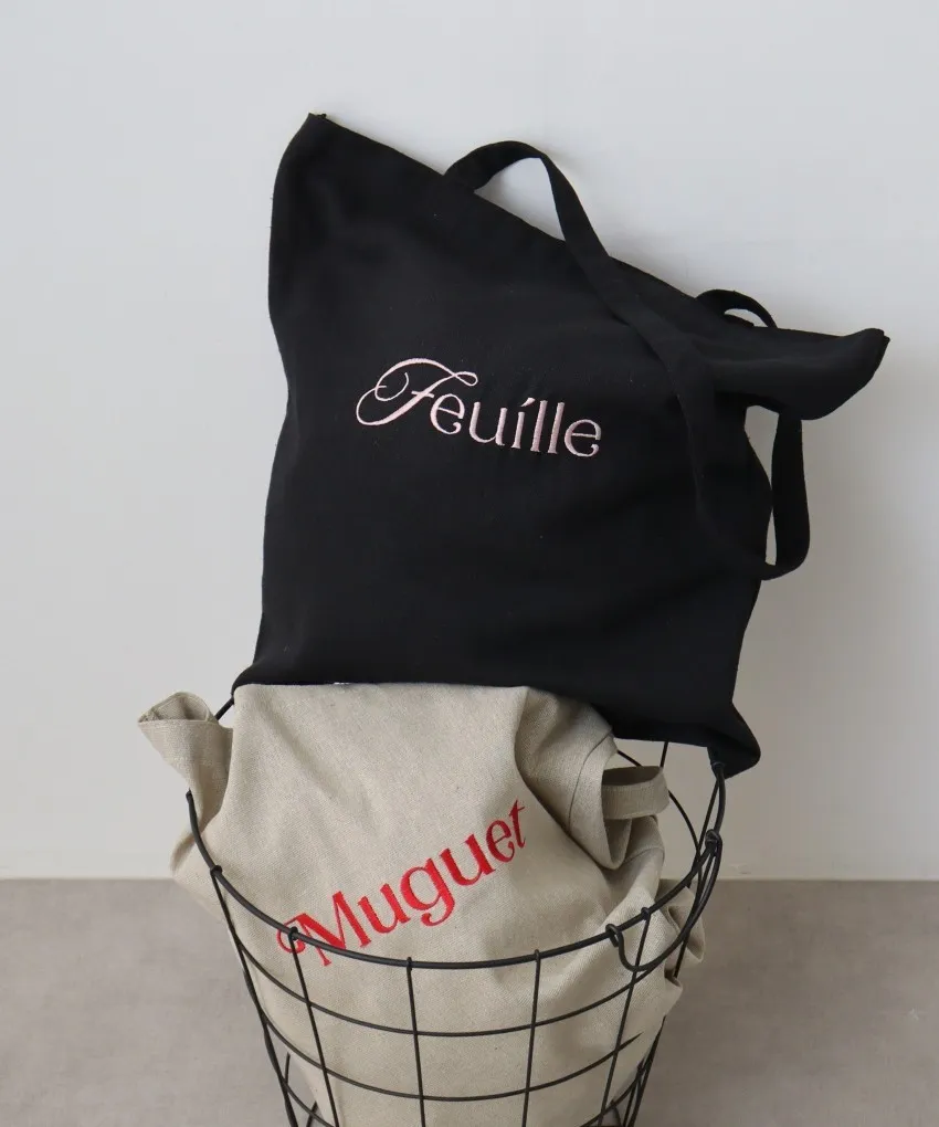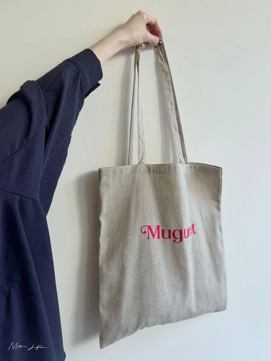 色彩刺繡字母棉布托特包