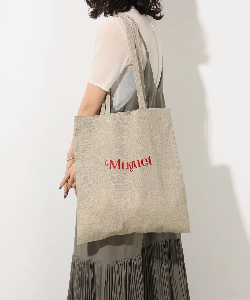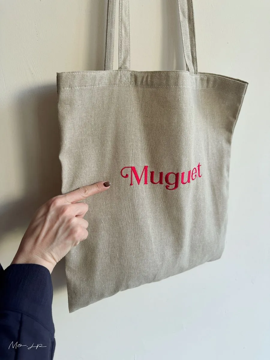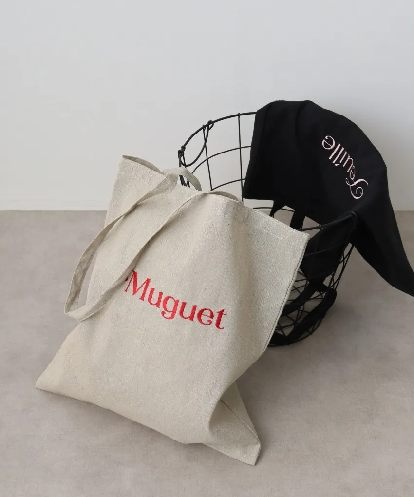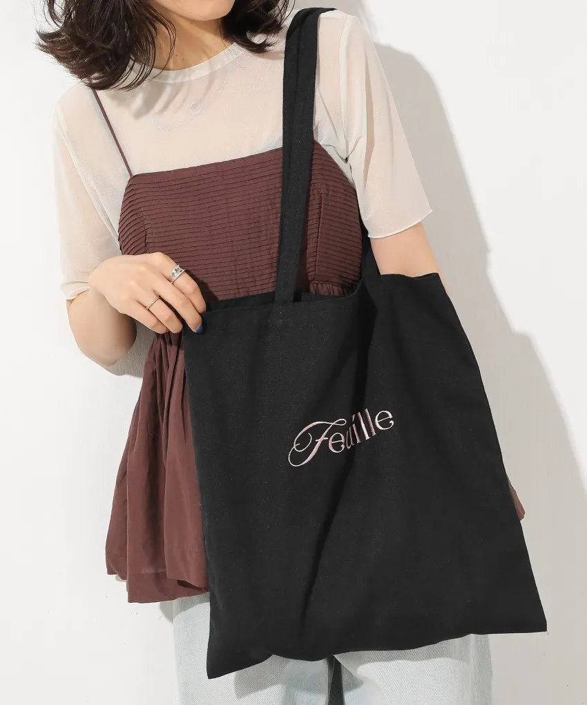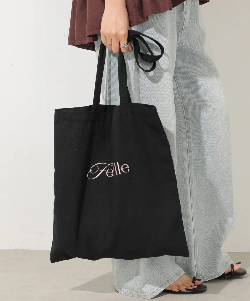 色彩刺繡字母棉布托特包