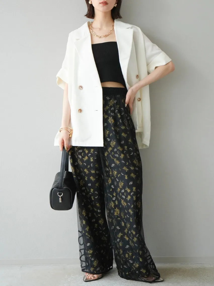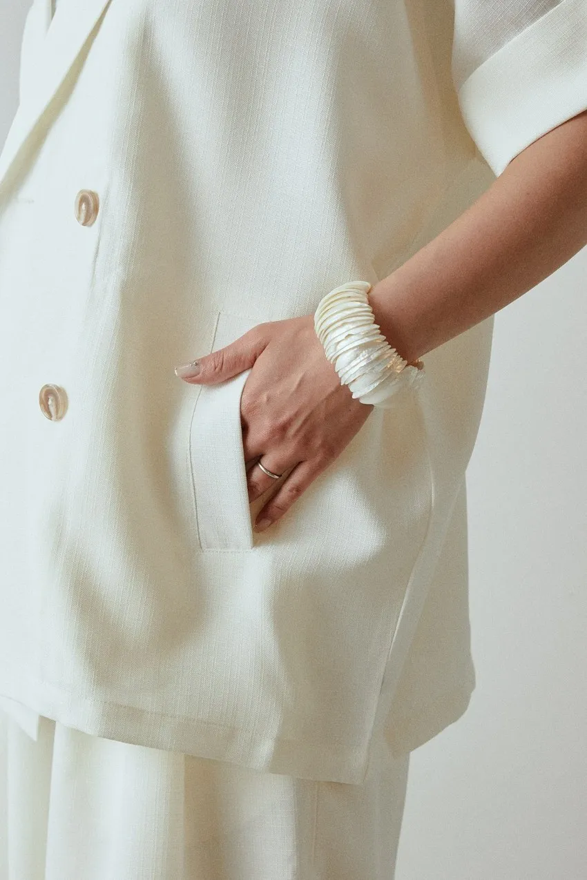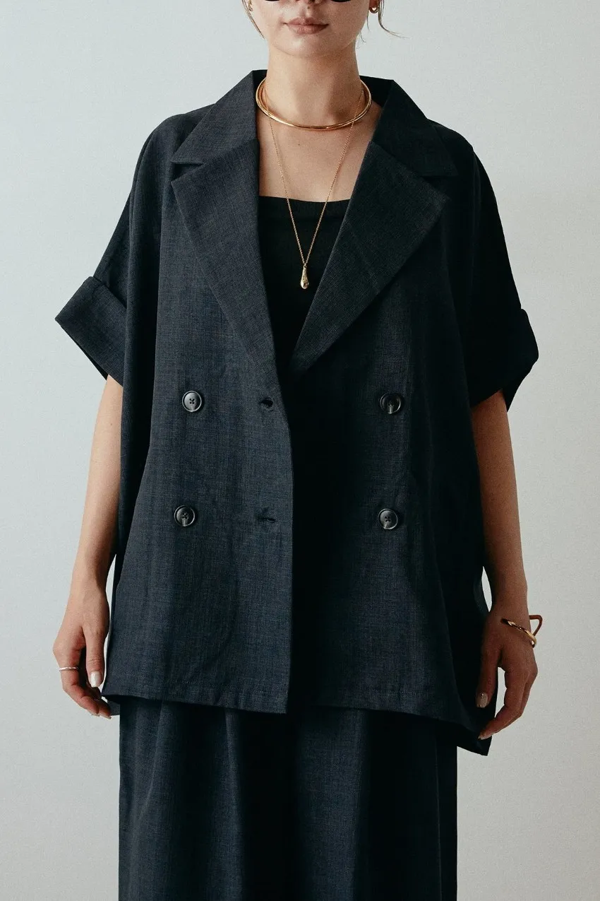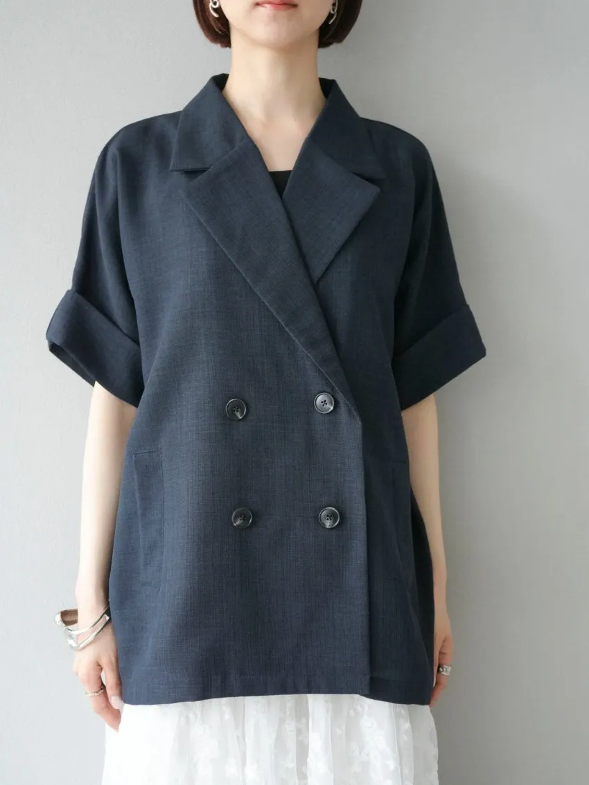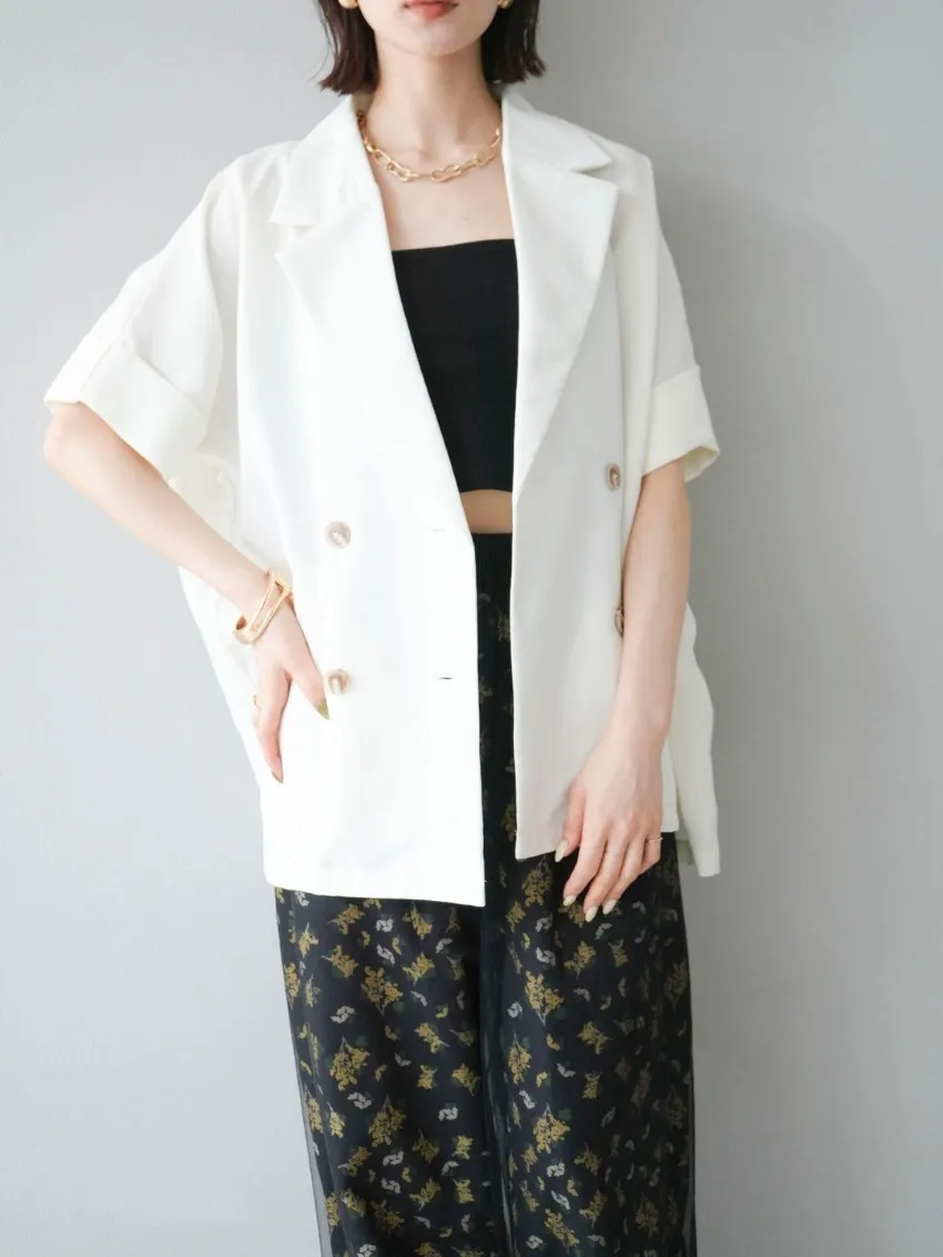 數量限定夏日大人氣的半袖西裝外套x西裝寬褲 這一款的表面有仿麻料自然線條紋路感設計順肩線短袖設計袖口反褶造型雙排釦寬鬆舒適感質感又帶有休閒感的西裝外套可以搭配正式風格穿搭或是日常休閒風格混搭這一款都很適合腰際打摺剪裁垂墜寬褲可以搭成套2色