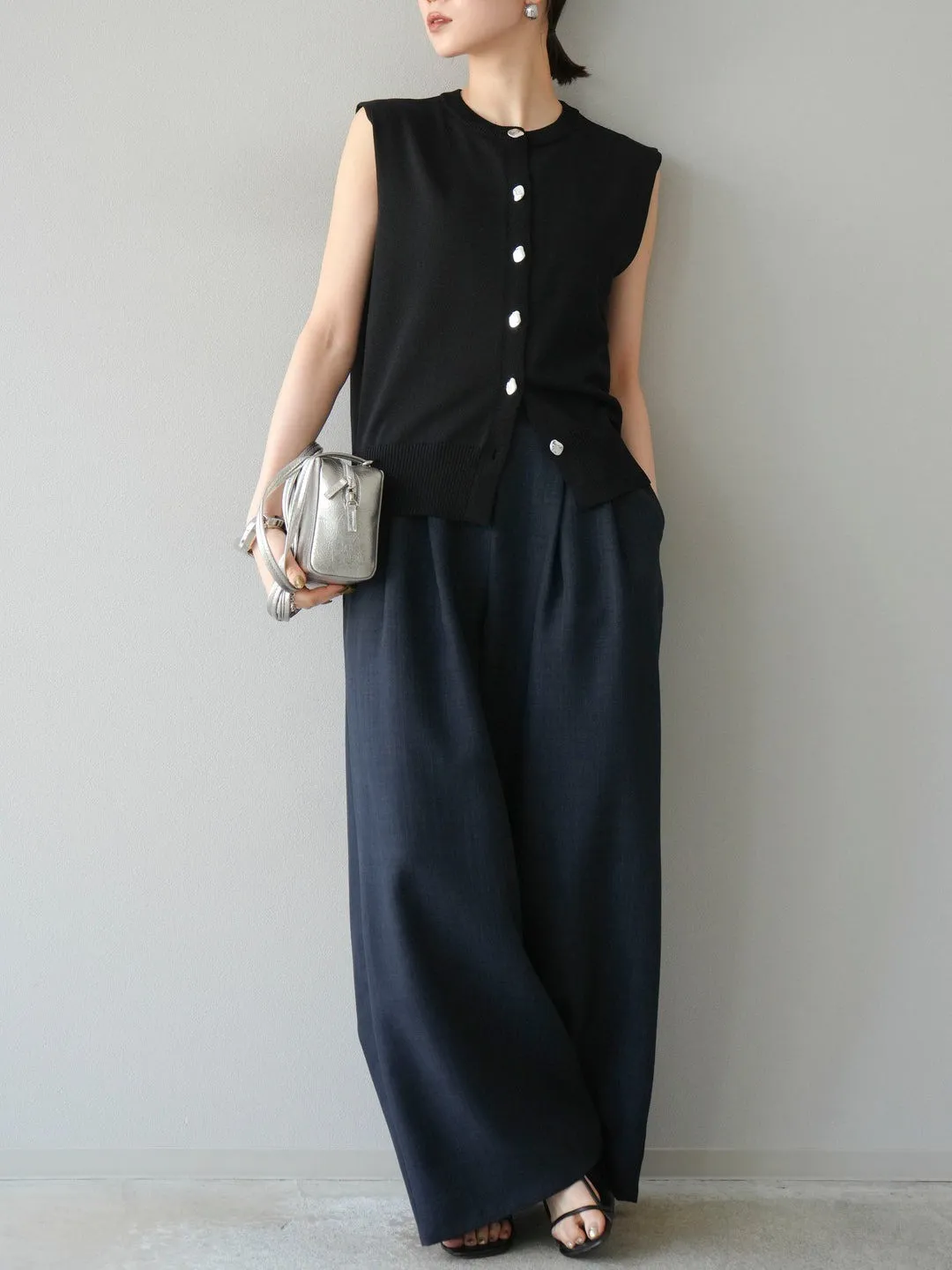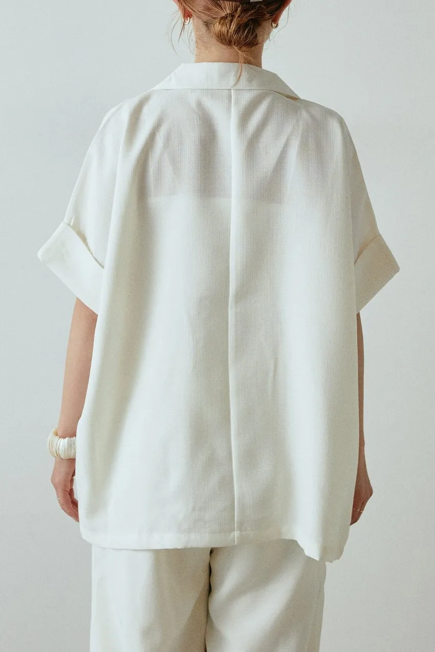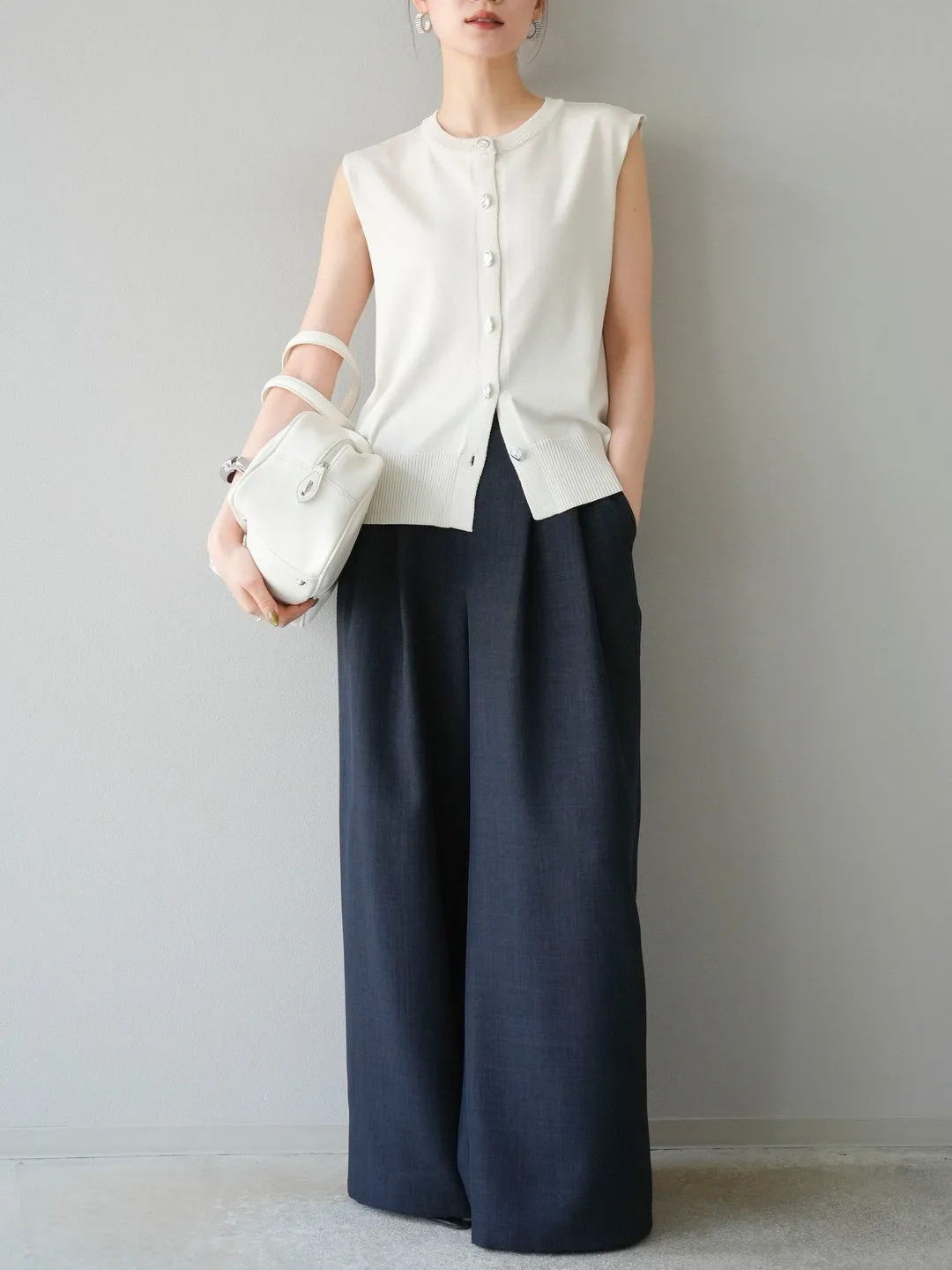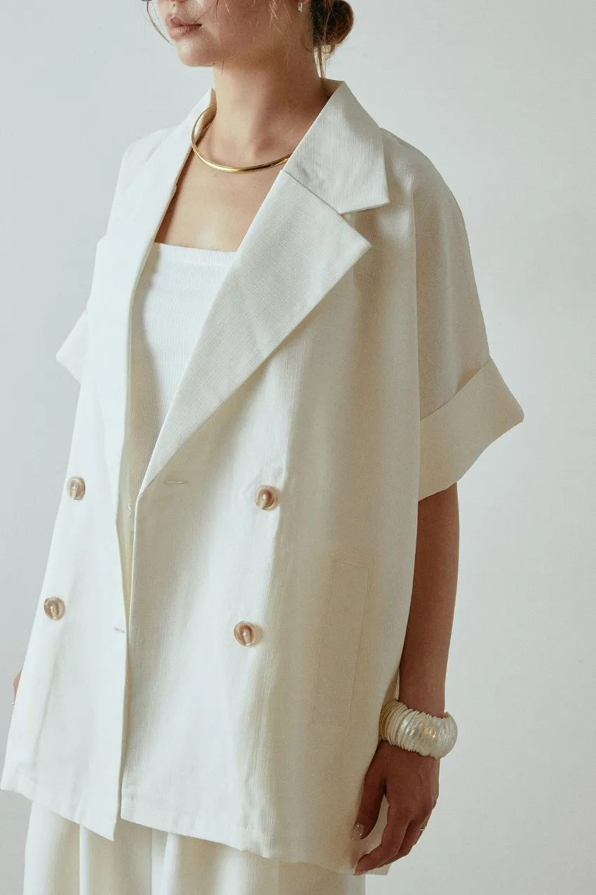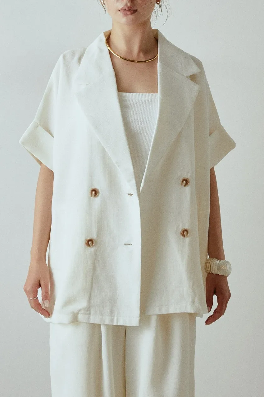 數量限定夏日大人氣的半袖西裝外套x西裝寬褲 這一款的表面有仿麻料自然線條紋路感設計順肩線短袖設計袖口反褶造型雙排釦寬鬆舒適感質感又帶有休閒感的西裝外套可以搭配正式風格穿搭或是日常休閒風格混搭這一款都很適合腰際打摺剪裁垂墜寬褲可以搭成套2色