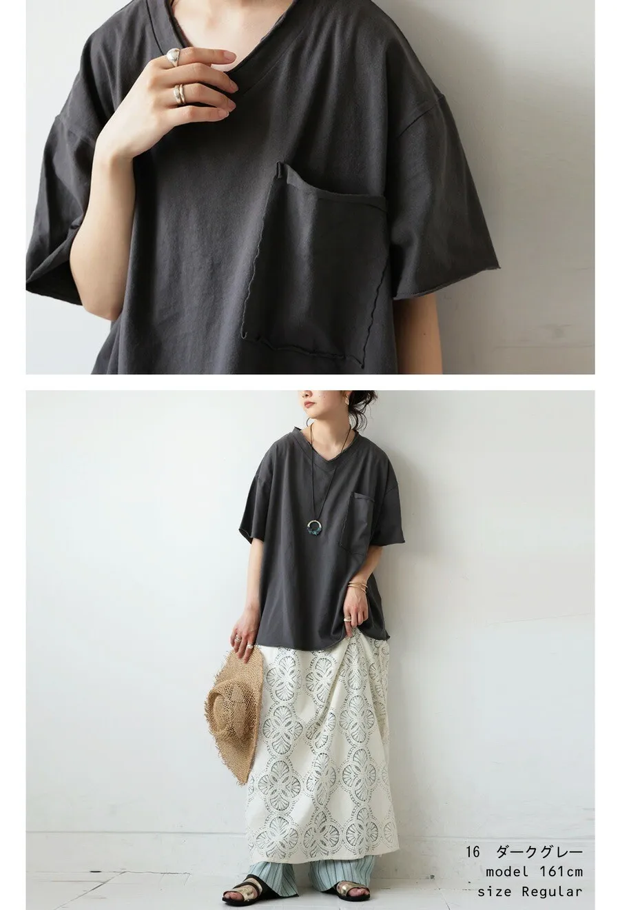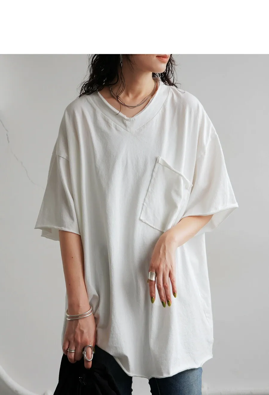 數量限定 VINTAGE感簡單口袋造型棉T領口袖口下擺捲捲滾邊設計100%純棉材質V領寬鬆長版剪裁胸前大口袋設計有正常版&加長加寬版正常版本身就是寬鬆長版囉如果喜歡再OVERSIZE一點就選加長加寬版品牌換季剩下少量可以追加喜歡簡單又帶點個性的素棉T這款可以購入唷~