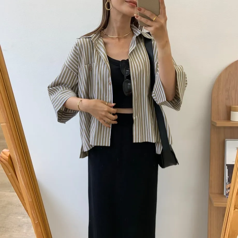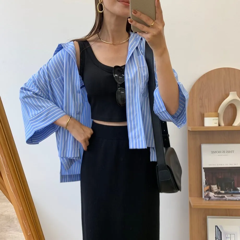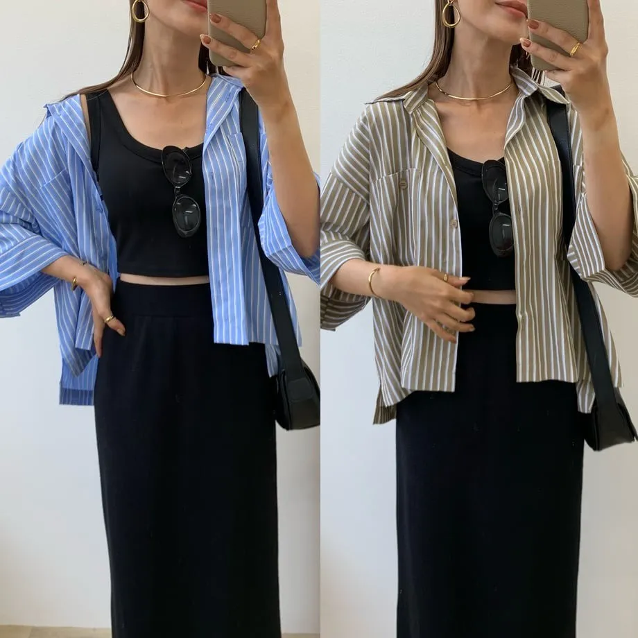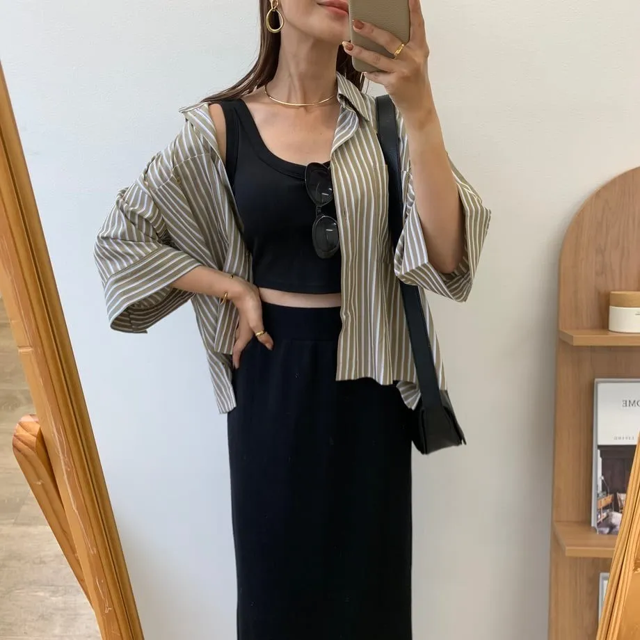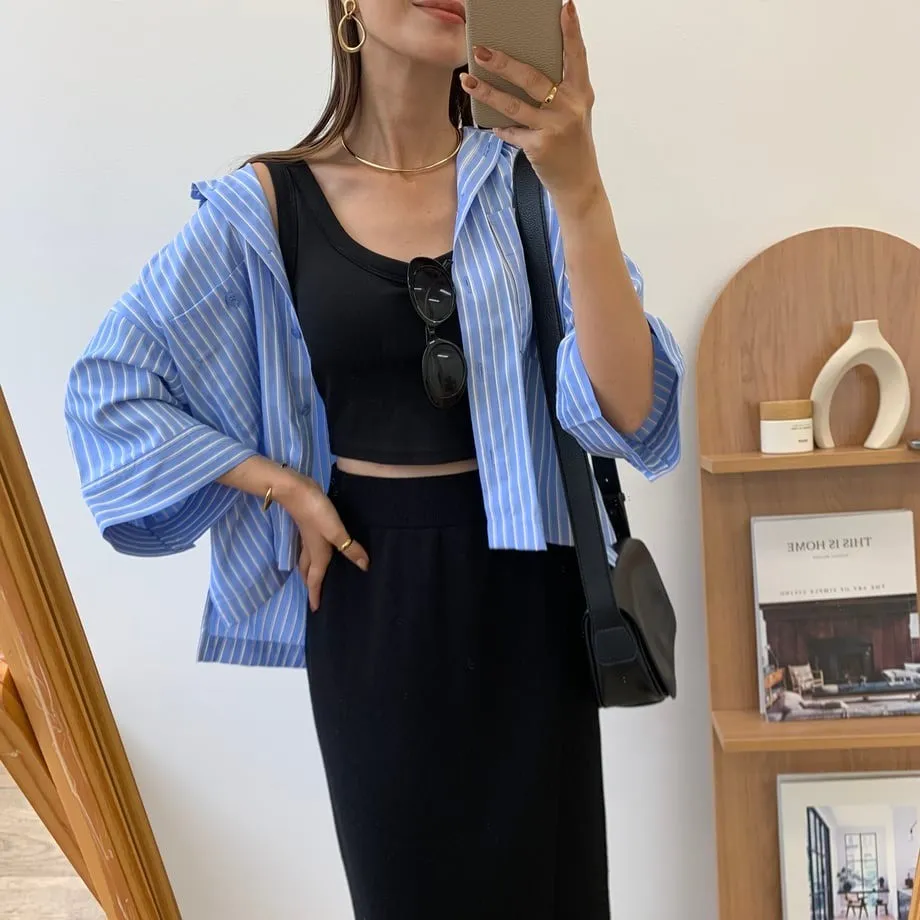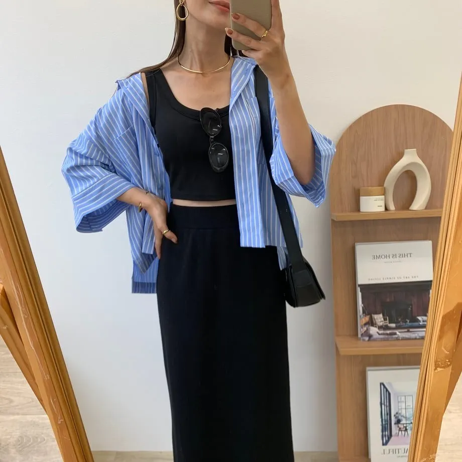 搭配個小背心+西褲.窄裙就可以時髦出門喔