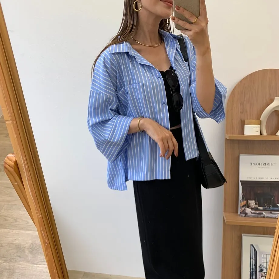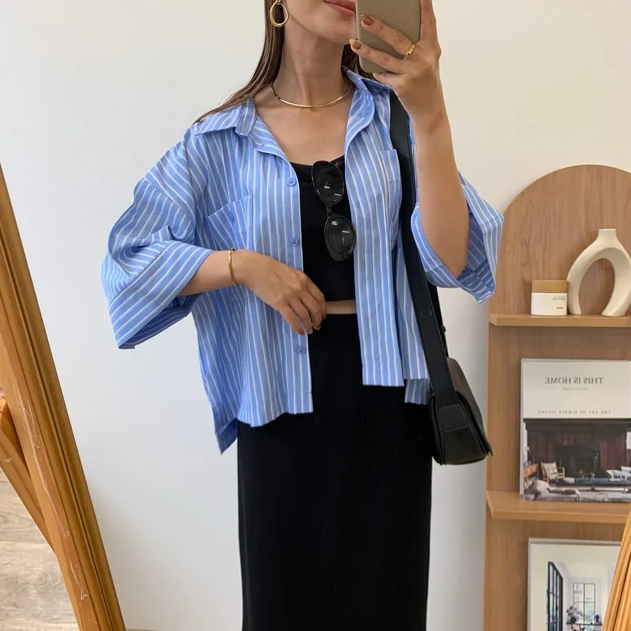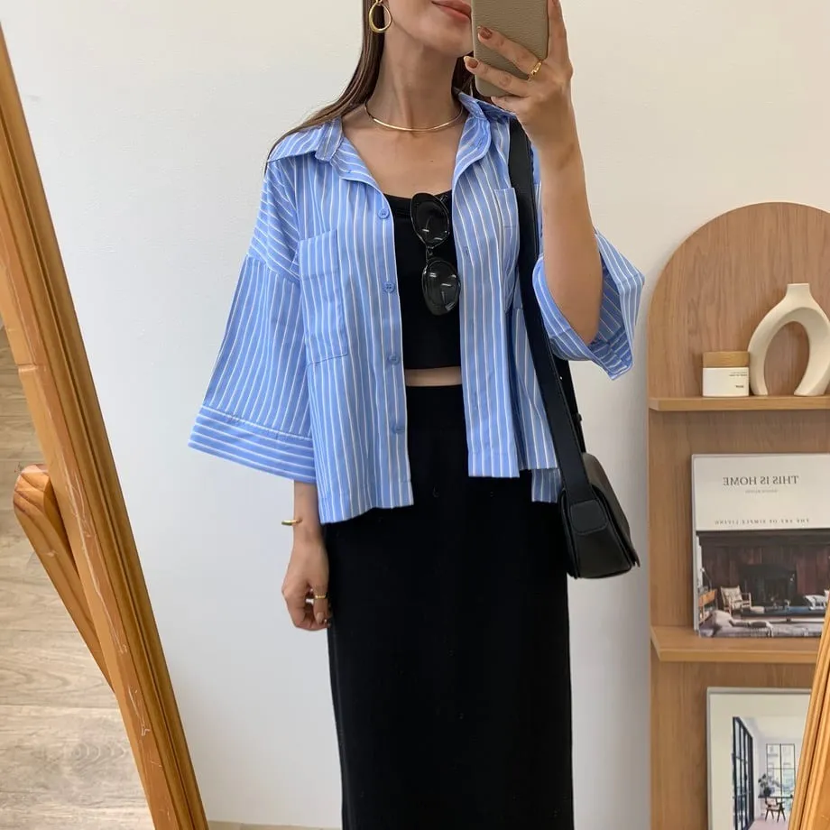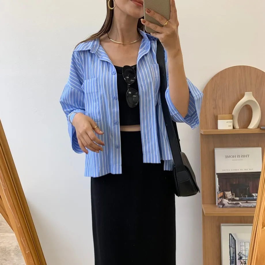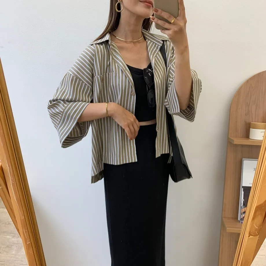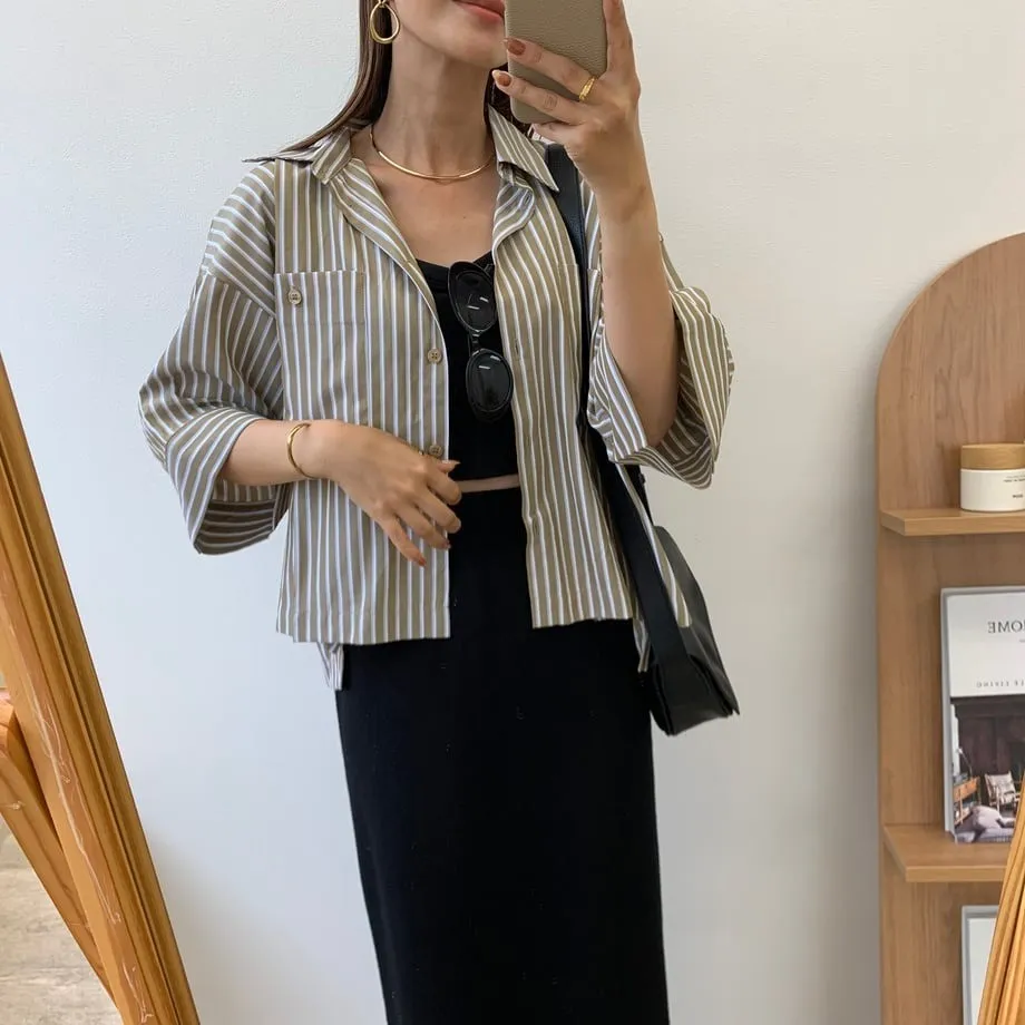 搭配個小背心+西褲.窄裙就可以時髦出門喔