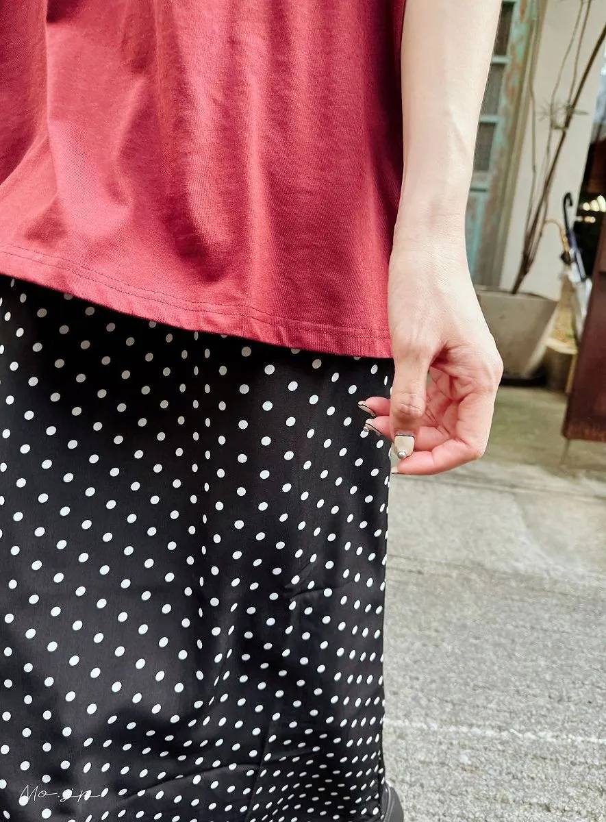 久違了~小白點點瘦瘦裙這款超超多人詢問喔微微的瘦瘦裙版~重點尾巴有一點點小魚尾感~真的一點點面料很舒服清新可愛~重點面料微微緞面感~有一點點小華麗小白點點柄~非常喜歡真的很美絲緞雪紡材質裙擺搖曳裙襬 腰部鬆緊舒服~重點前面腹部很修飾喔2色~都好看<同面料有上衣可以搭配成套喔>