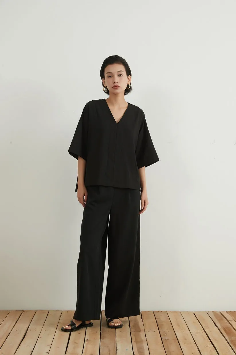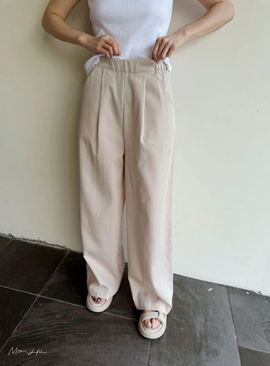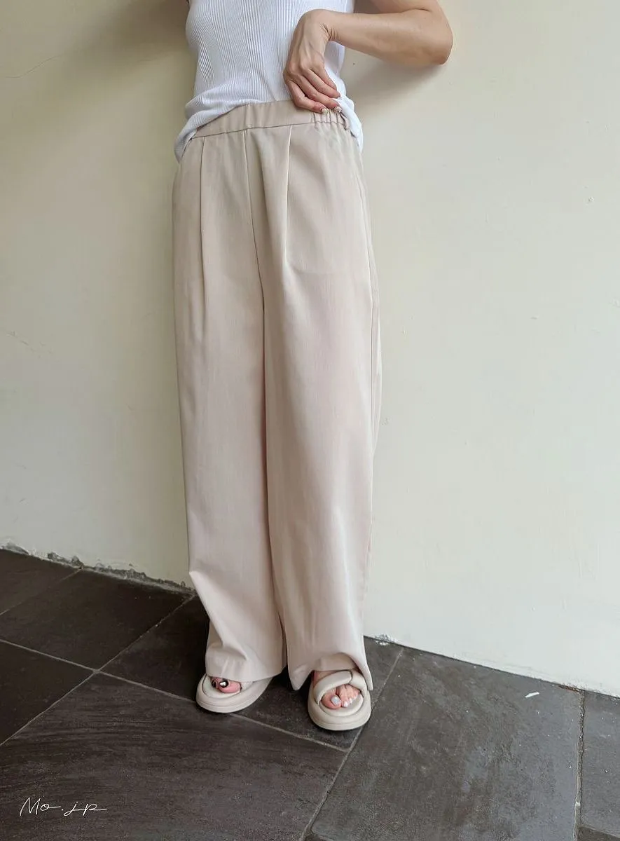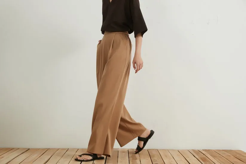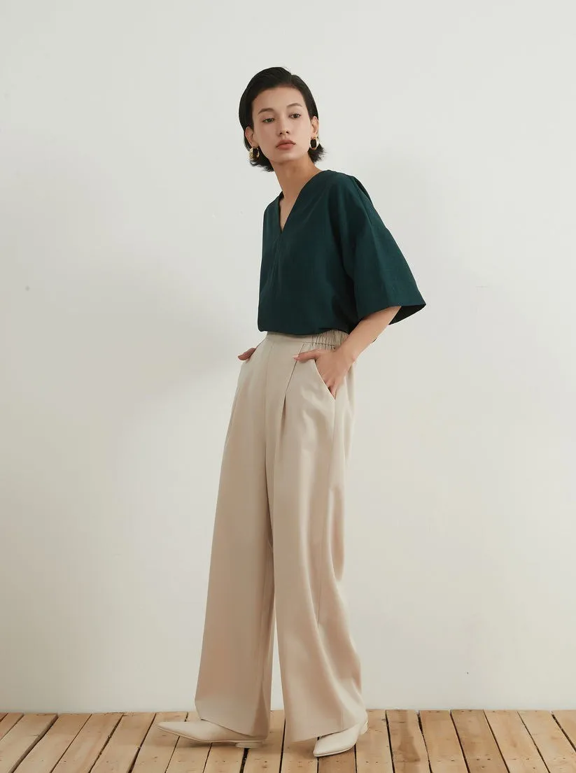 這款舒適的寬褲採用鬆緊腰帶和飄逸面料,可拉長腿部線條。四個口袋和寬版的腰部設計,舒適又不失休閒感。這款夏季褲子可輕鬆搭配日常穿搭或職場造型。