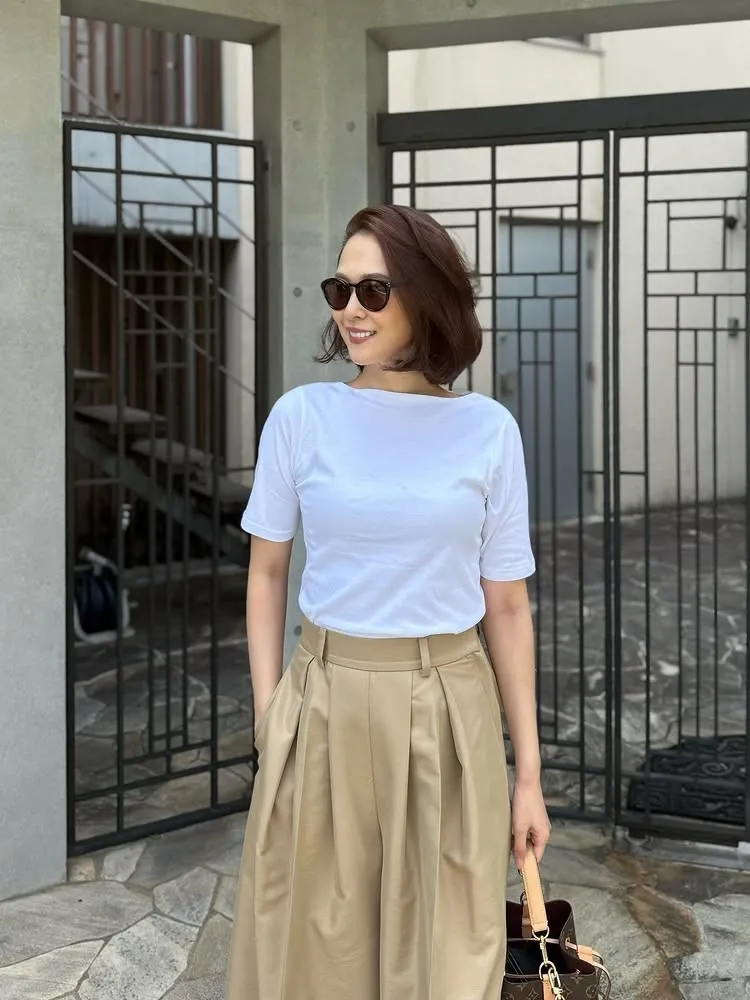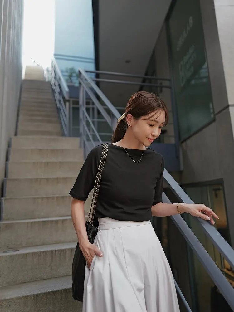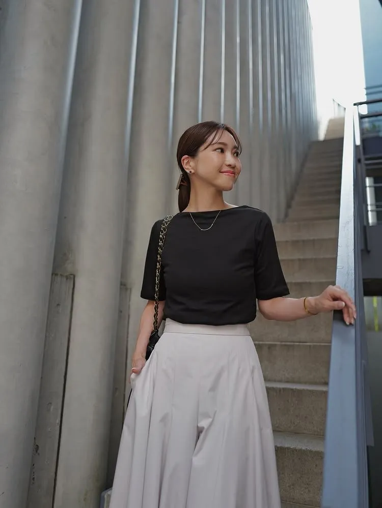 一字領設計凸顯肩頸曲線,並增添一絲輕鬆的貼合感。